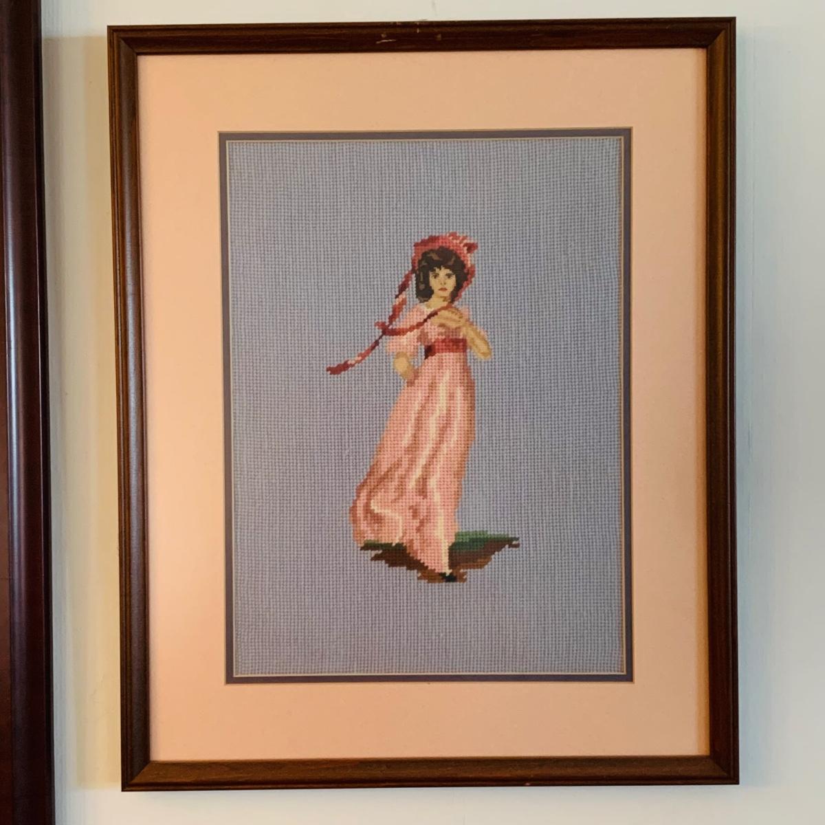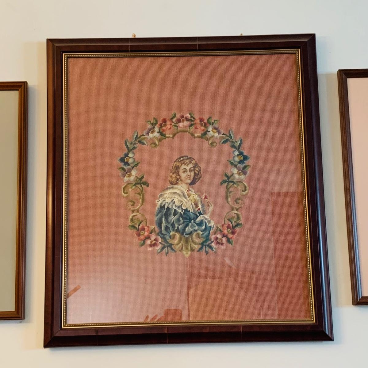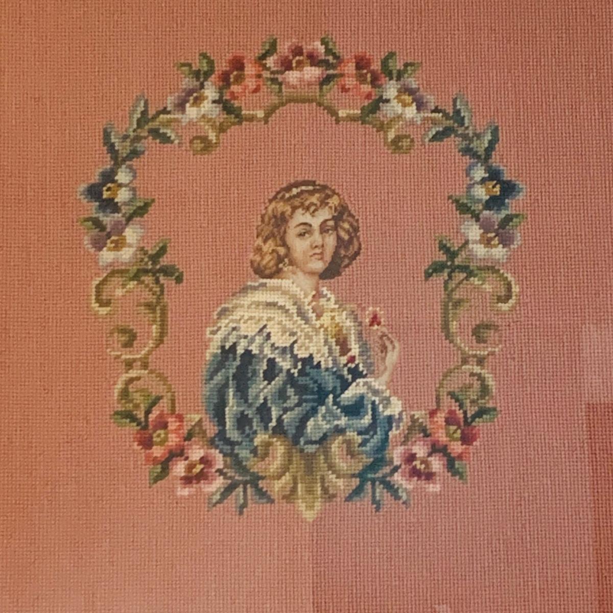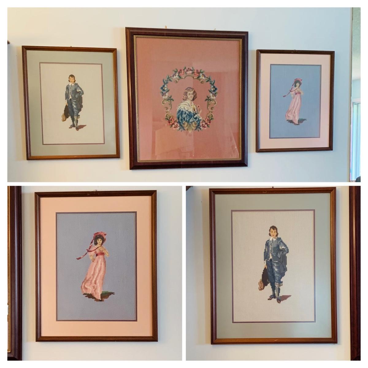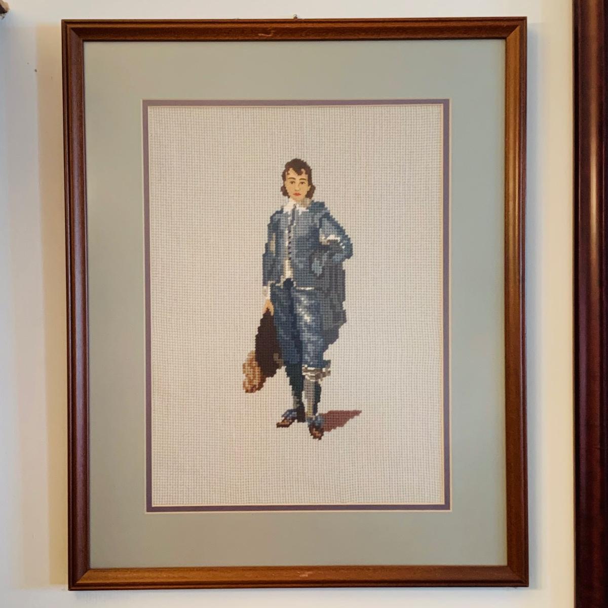 LOT 57R: Three Needpoint Framed Wall Art Including The Blue Boy and Pinkie.