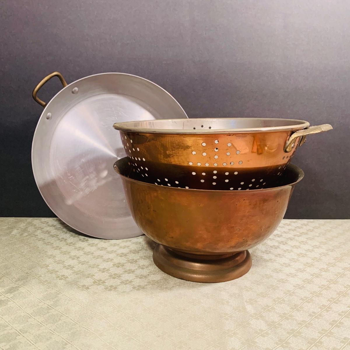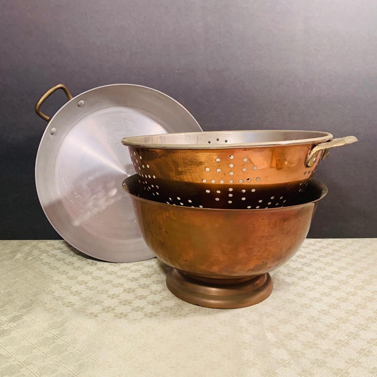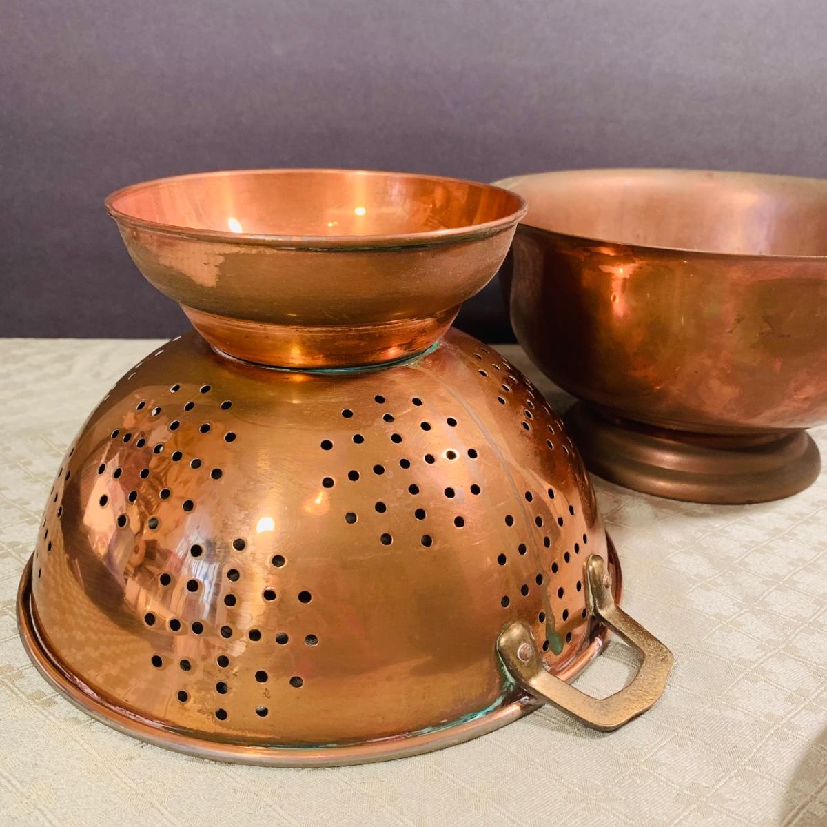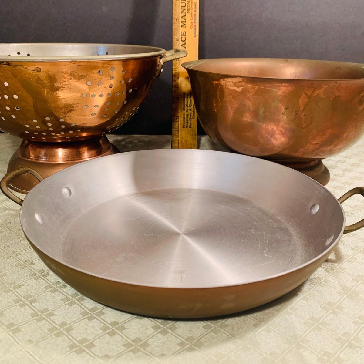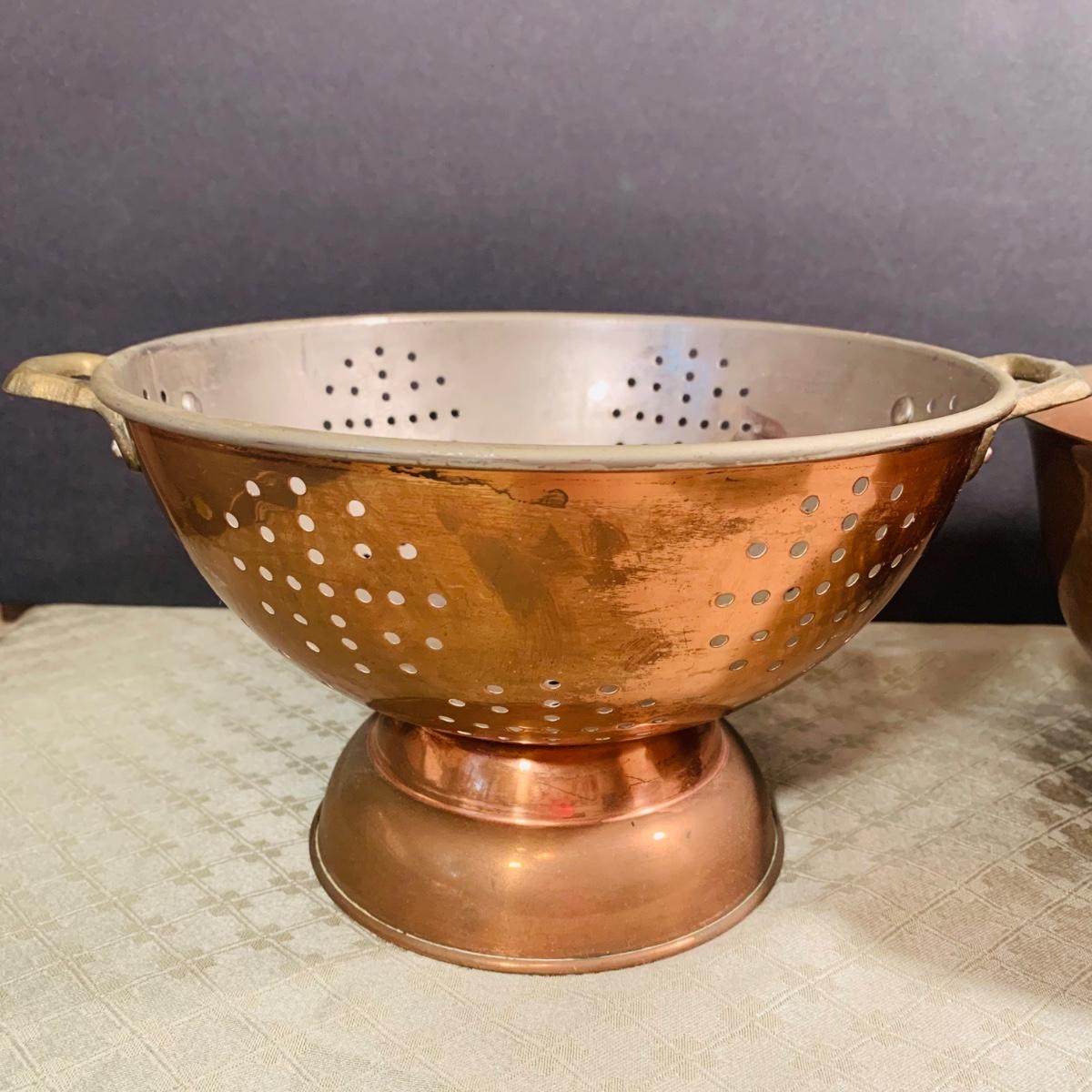 Copper Colander w/Brass Handle, Footed Bowl & Fry Pan. Please see all pictures as they are the best representation of the items. The pictures show condition, measurements if taken, and what is included in the lot. Due to the large amount that we photograph and the time frame, we are not always able to take measurements. All items unless noted, are pre-owned and have been used. If you purchased furniture, you must bring help. We do not allow one person to carry large furniture out on their own. Bring help, tools and a truck for the safety of our client’s homes, and your personal safety. Any damages that result to the property including walls, and floors due to moving of the furniture will be charged to the buyer. Company policy. Thank you.