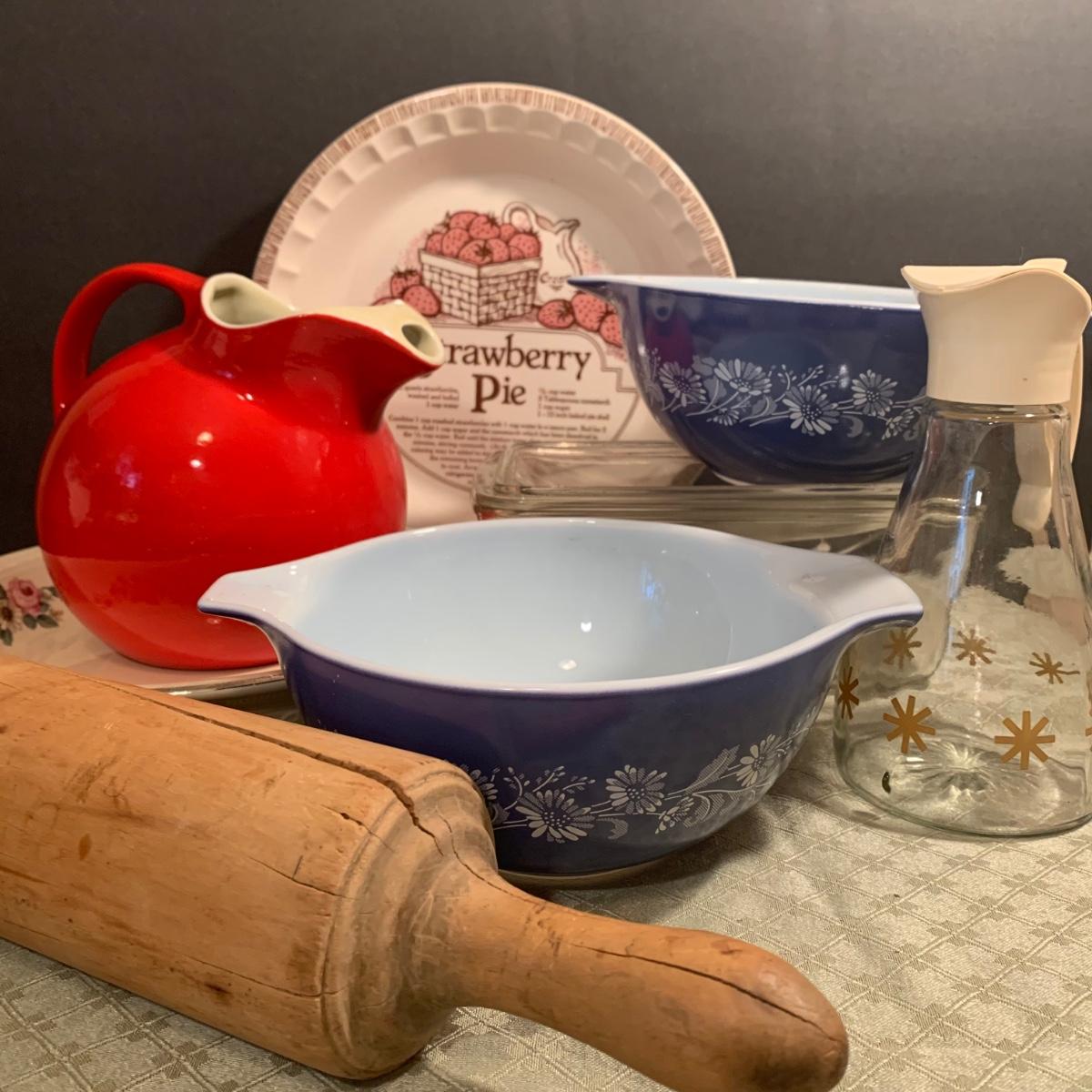 LOT 61R: Vintage Pyrex, Hall Pitcher, Rolling Pin and More
