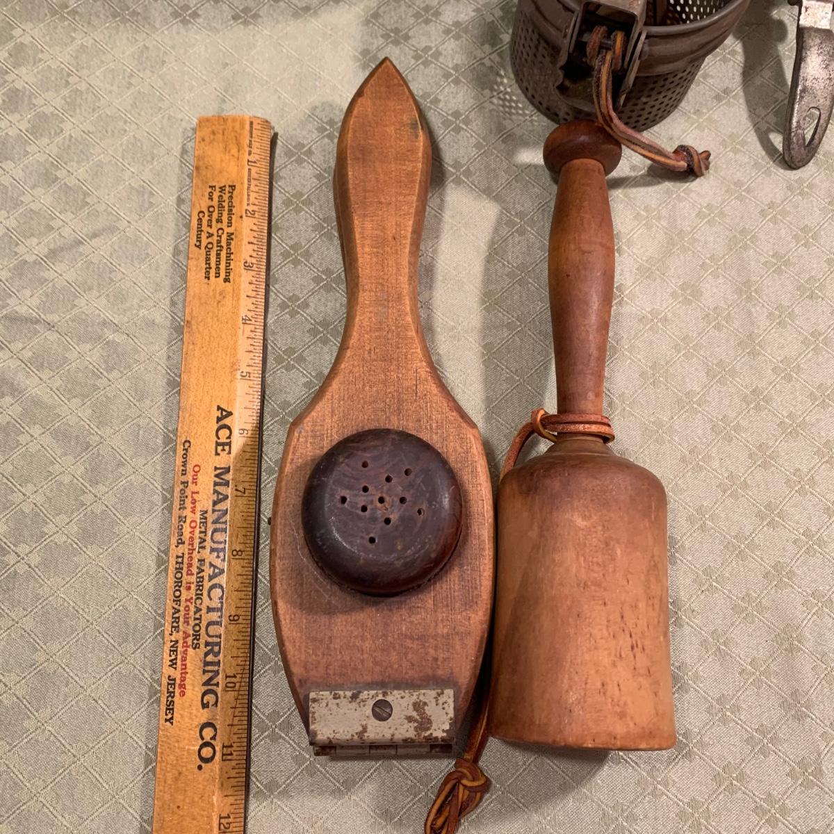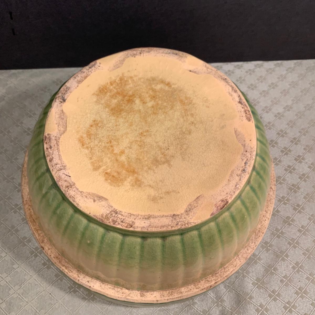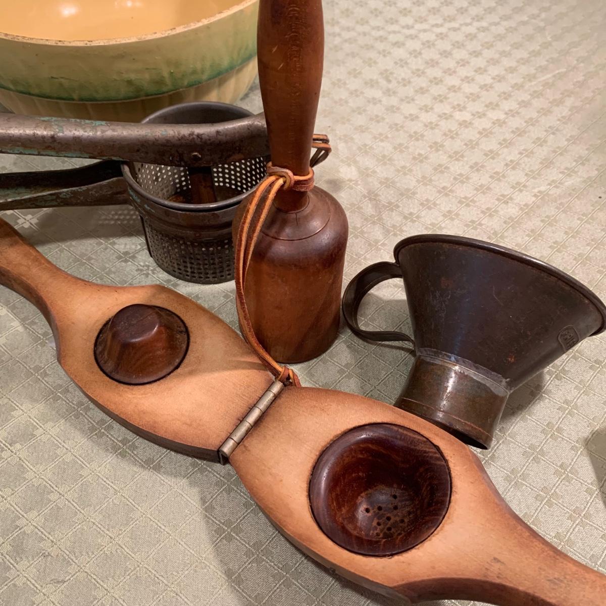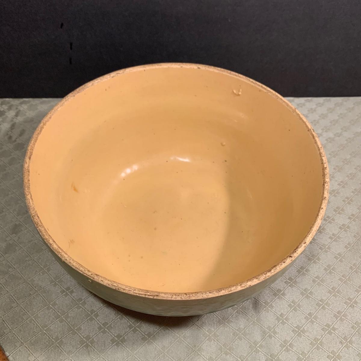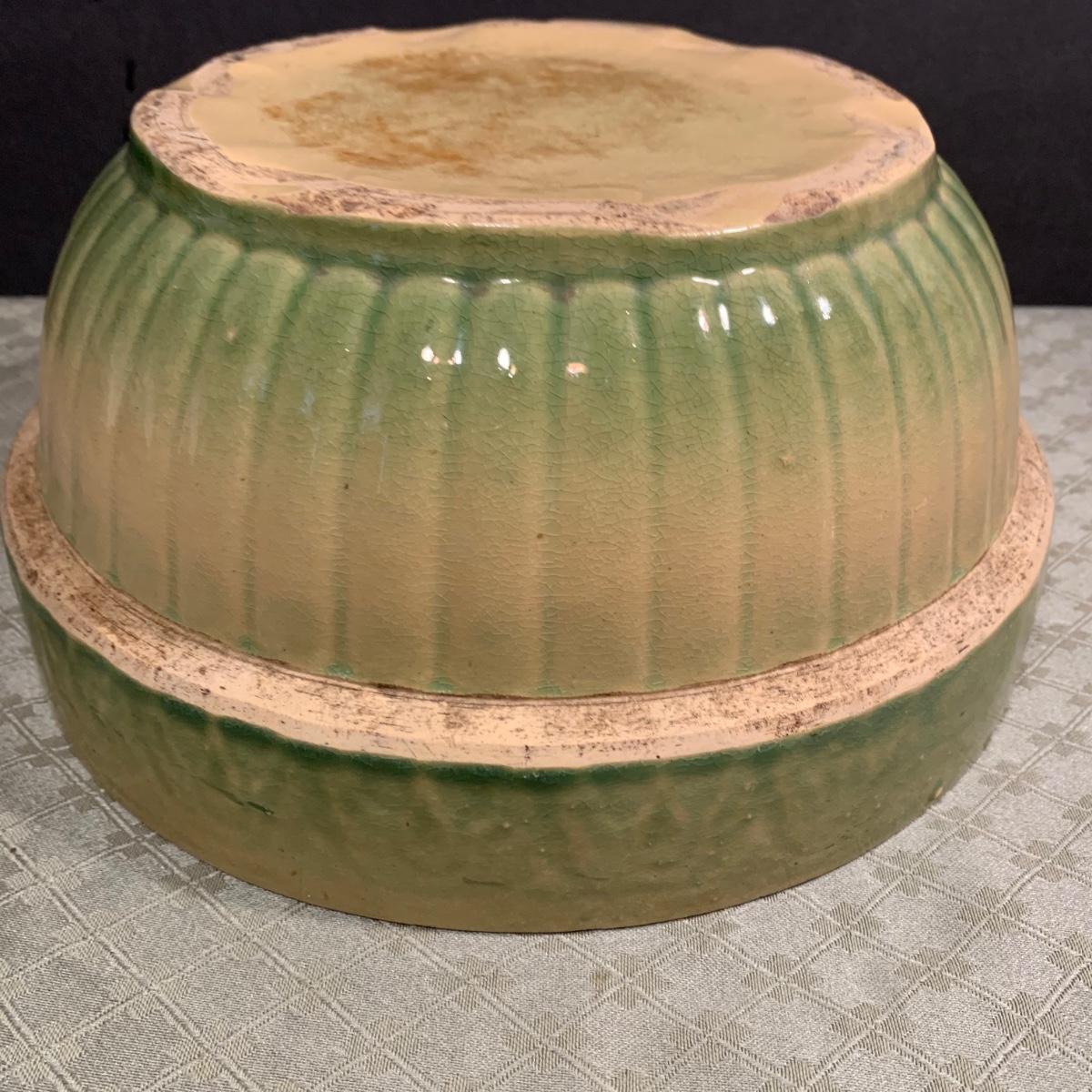 LOT 67R: Vintage Farm House Yellow & Green Stoneware Mixing Bowl & Vintage Kitchen Utensils