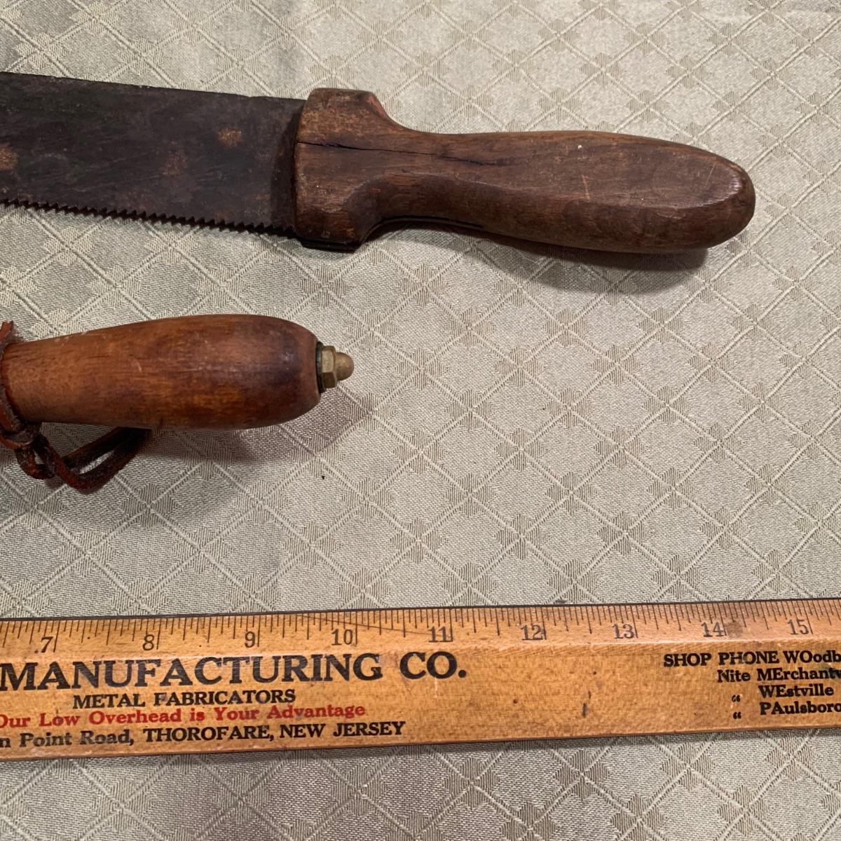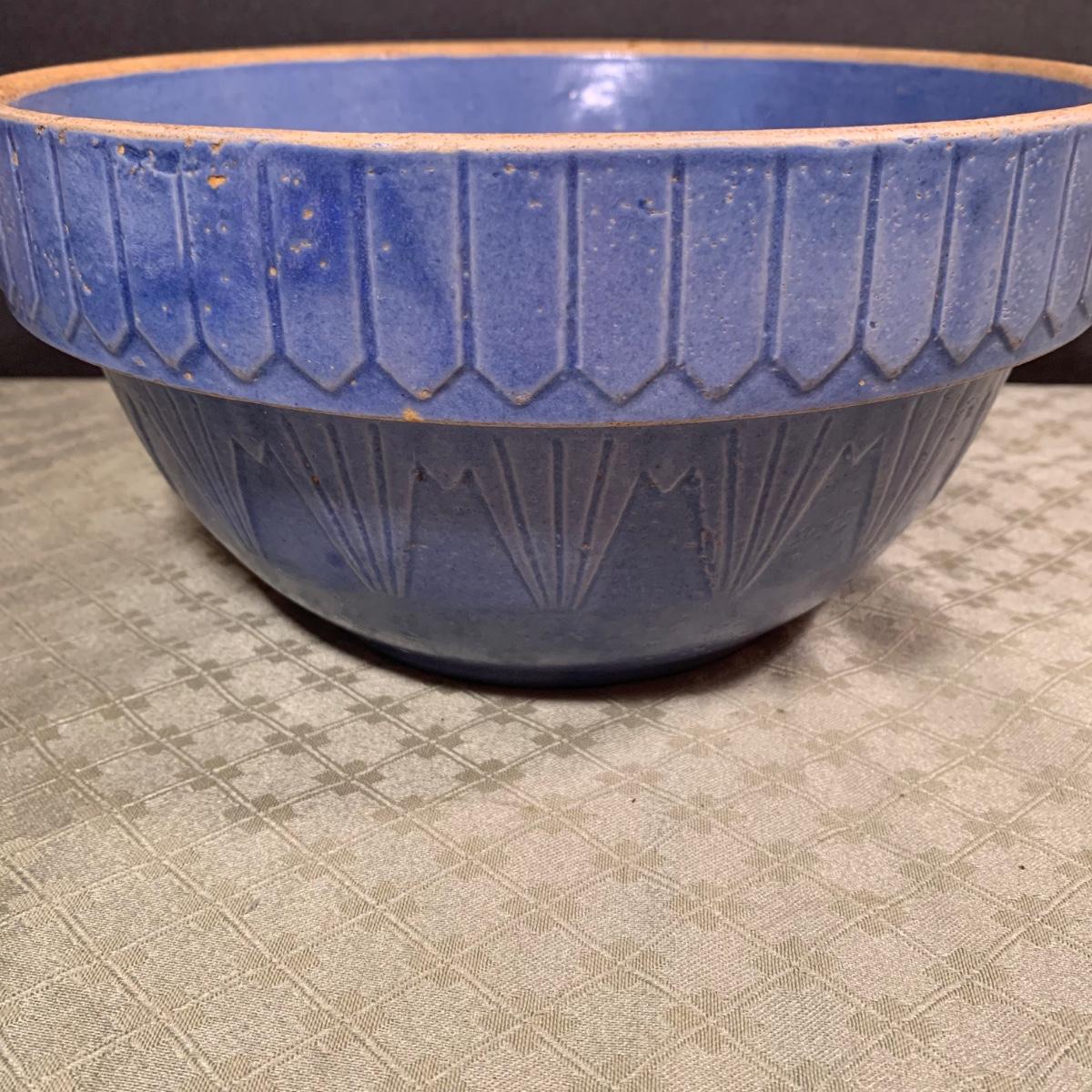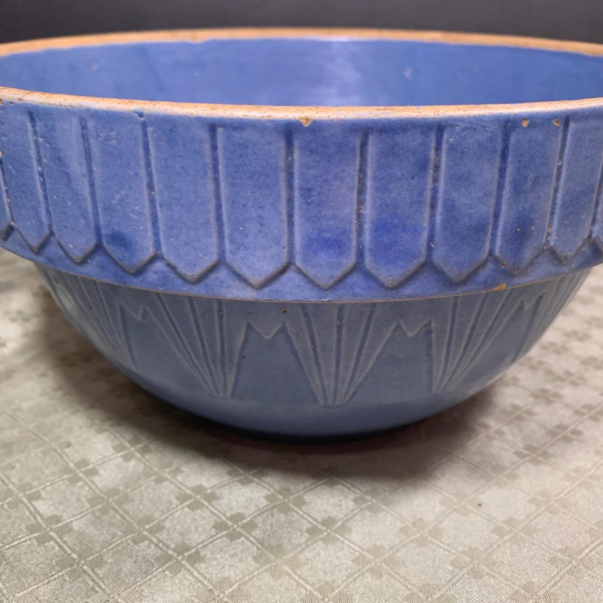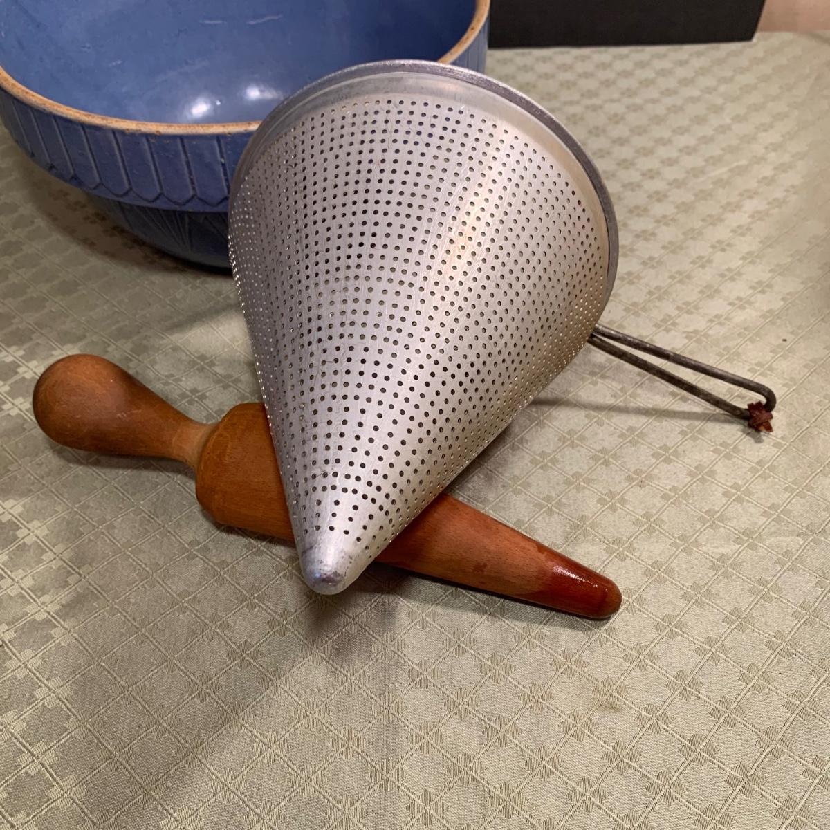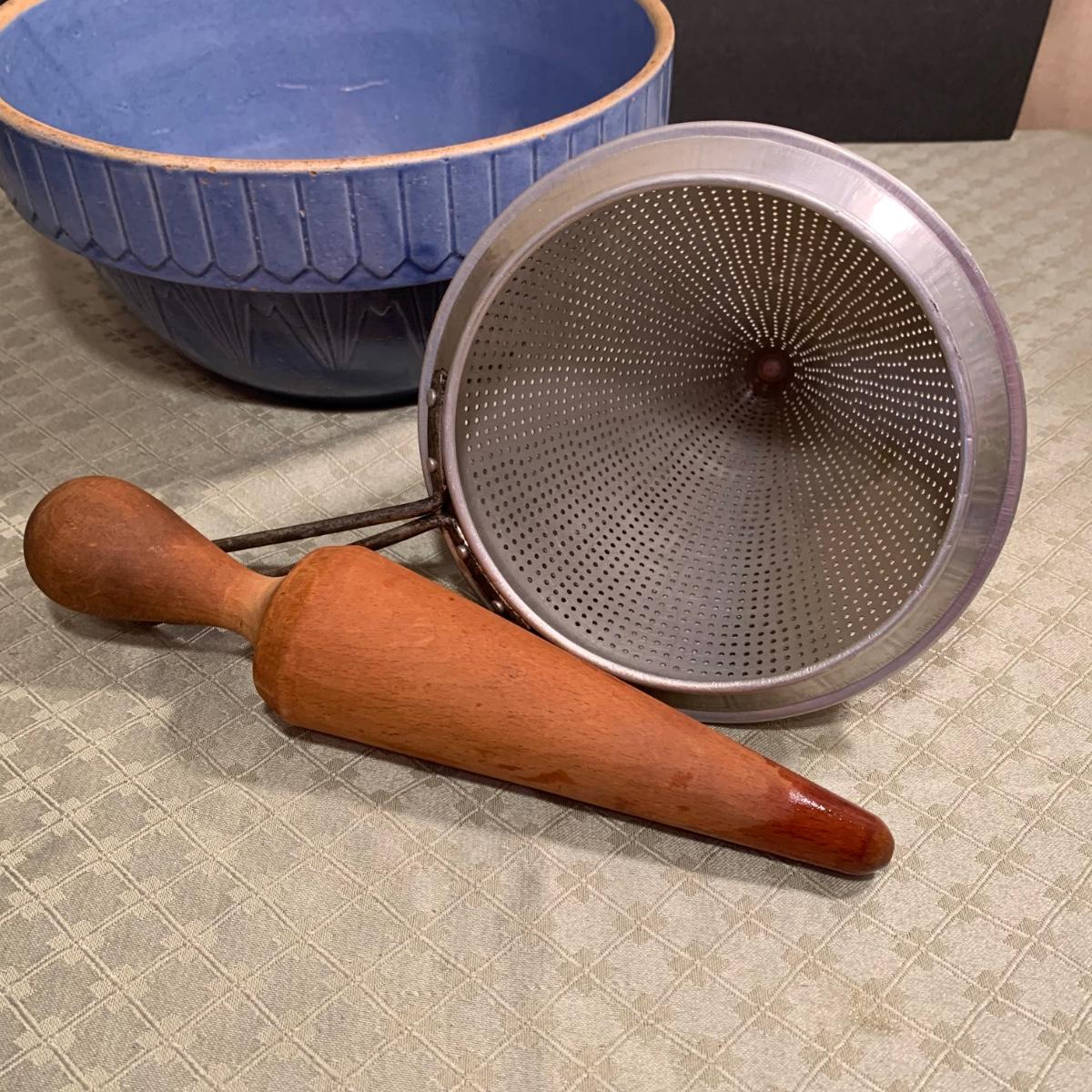 LOT 68R: Vintage Picket Fence Stoneware Mixing Bowl & Vintage Kitchen Utensils