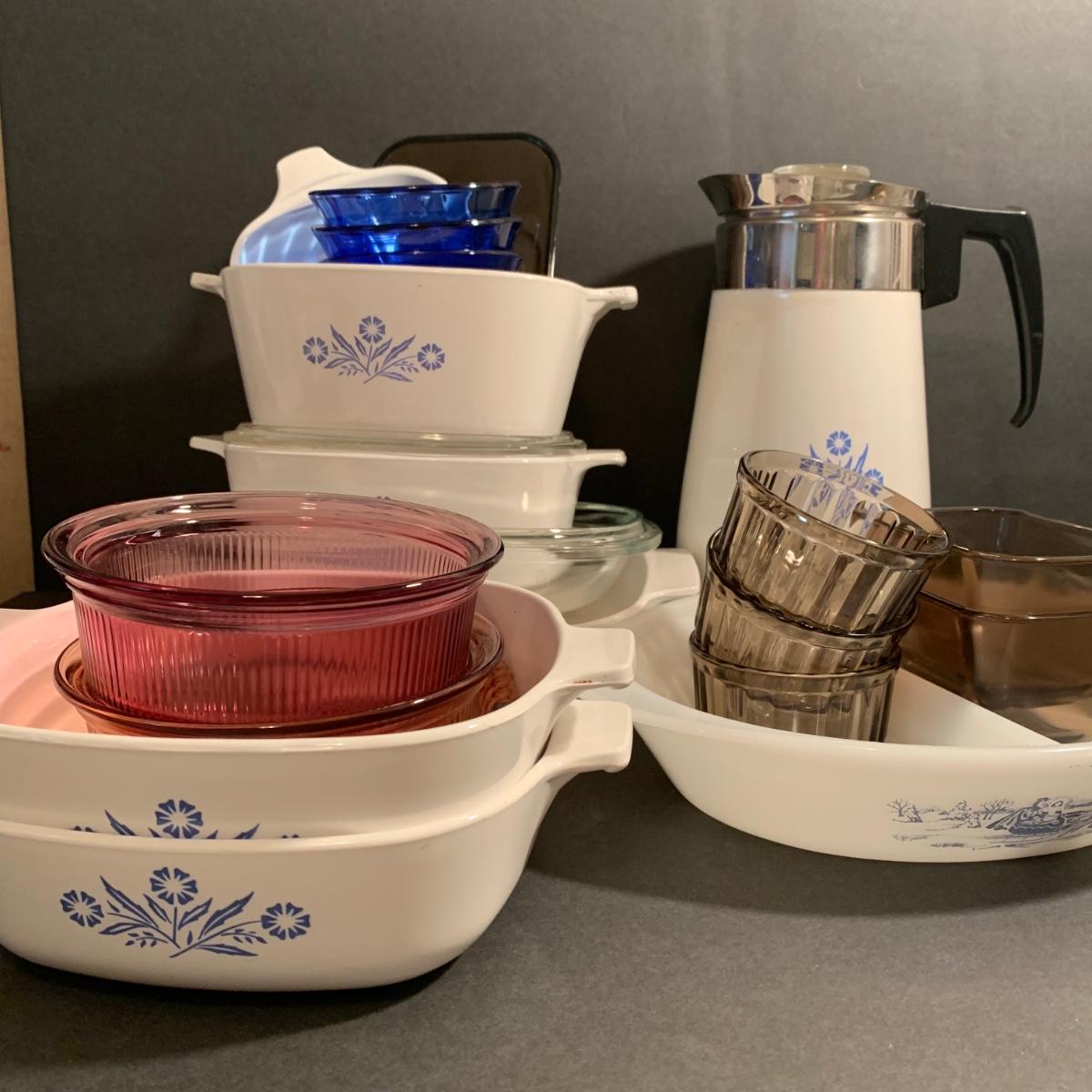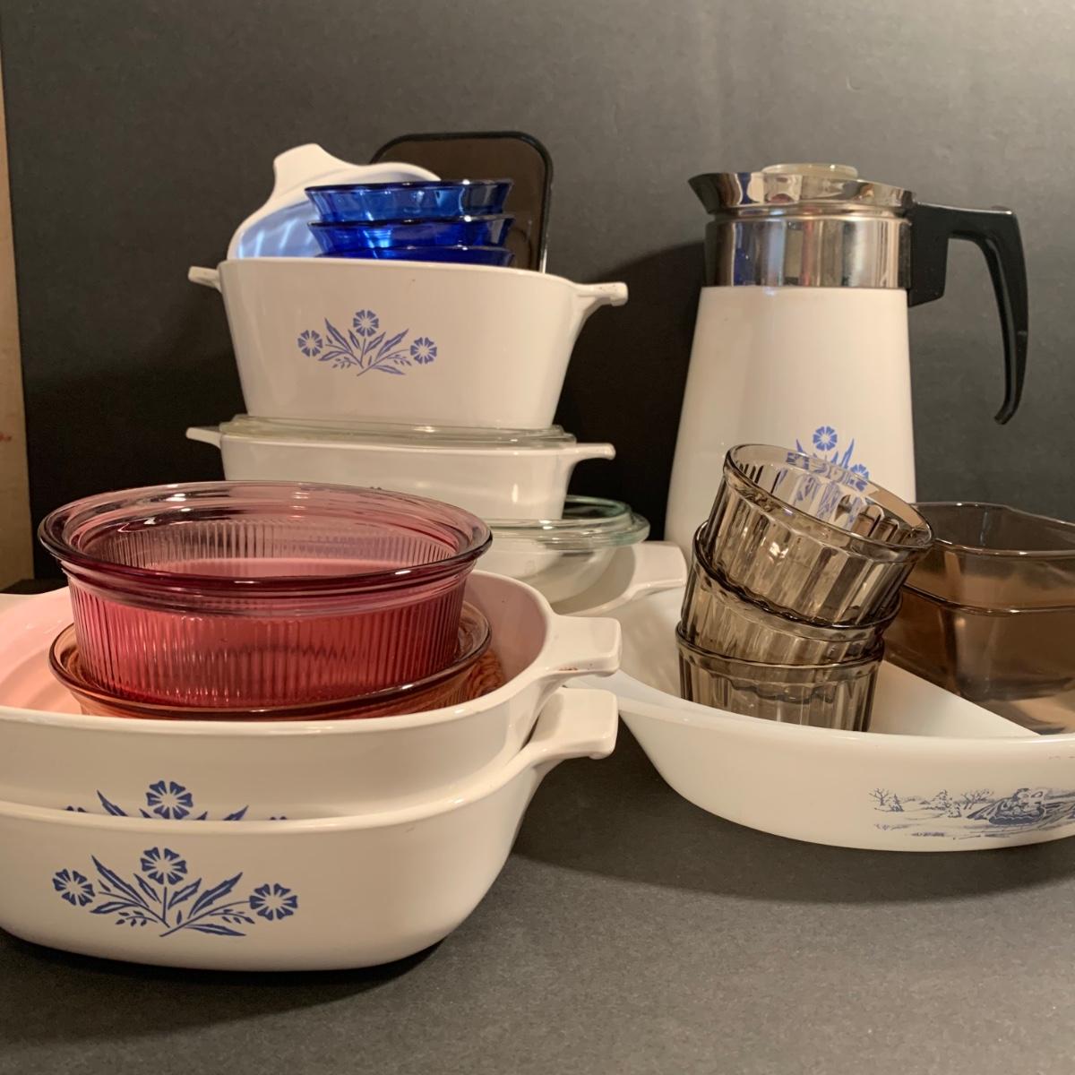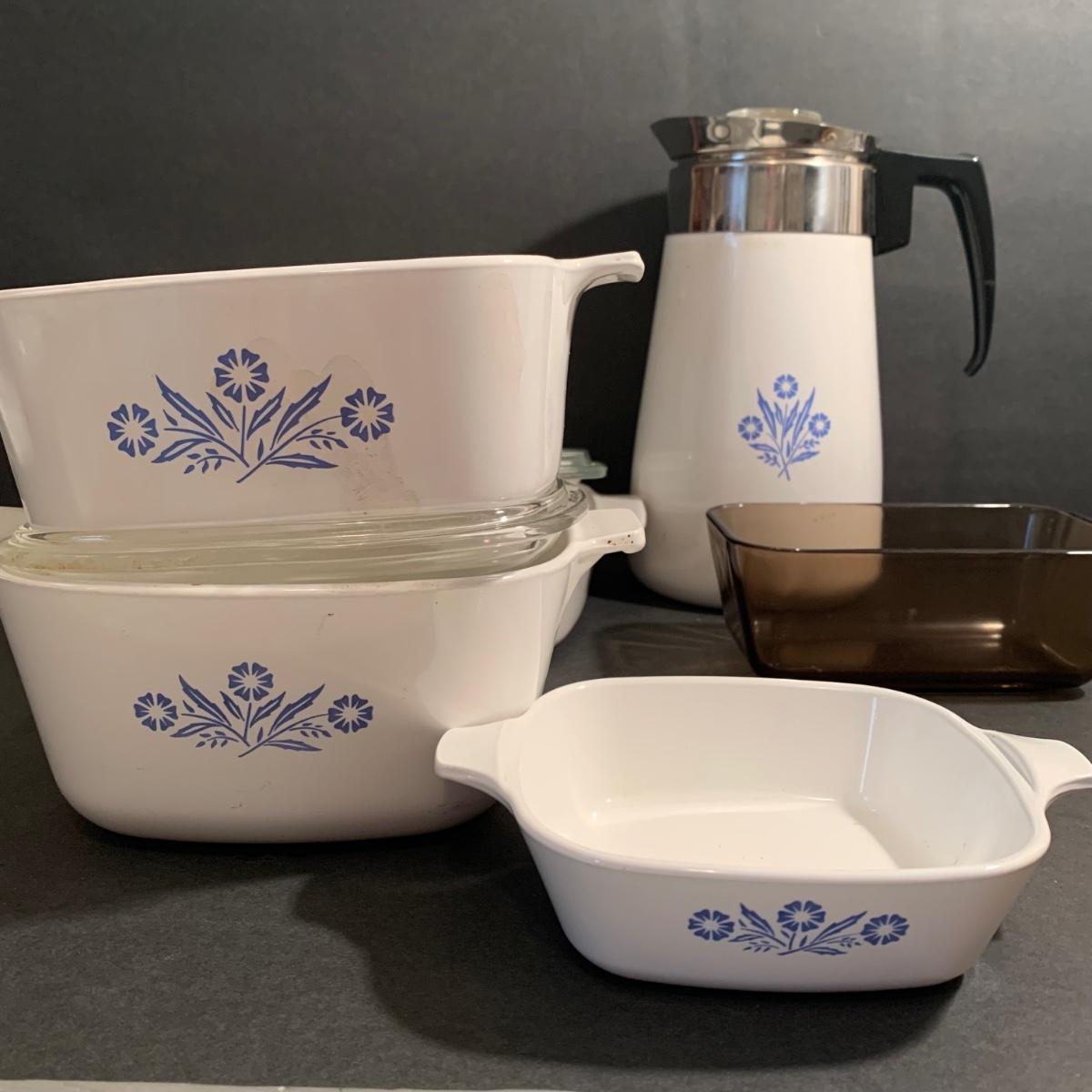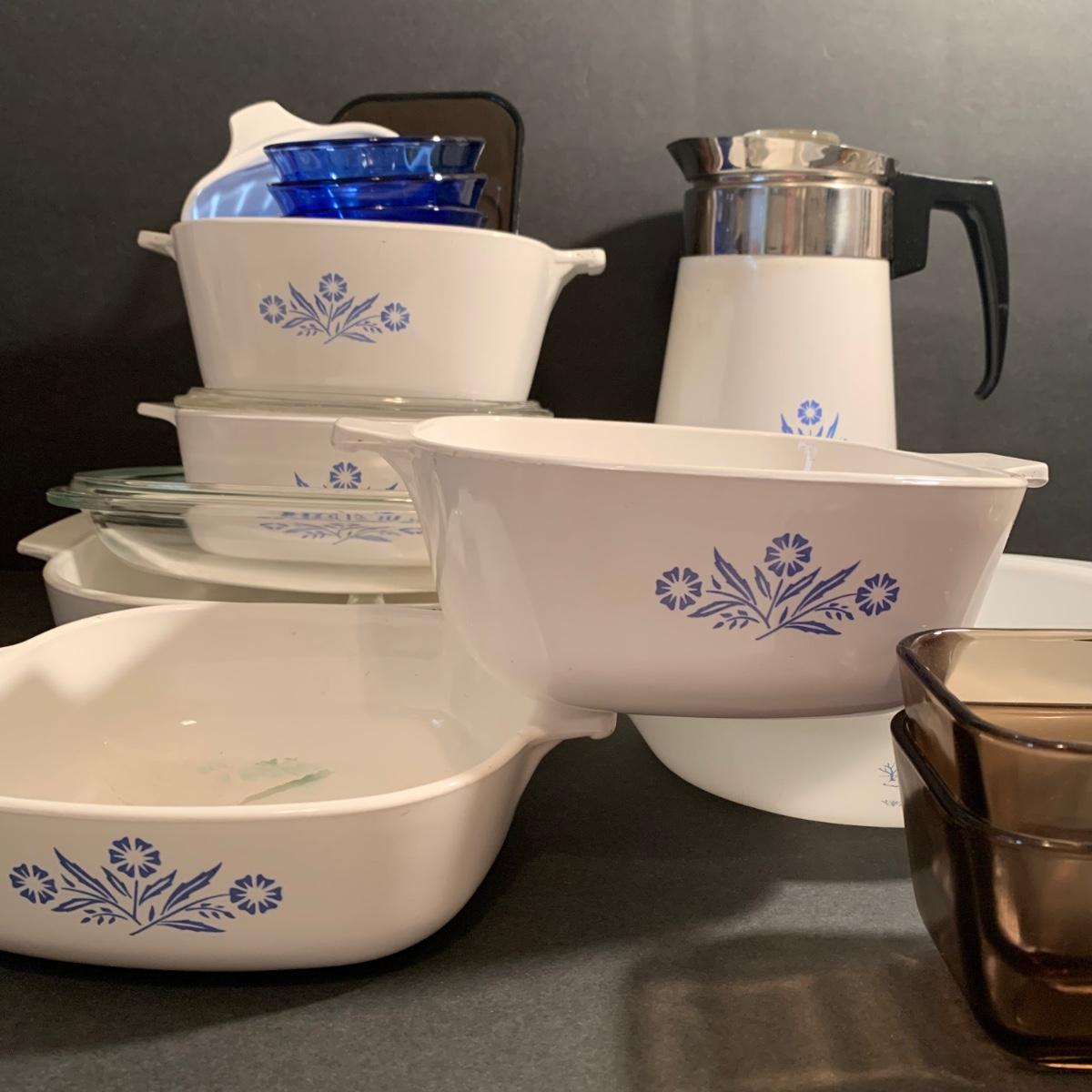 LOT 70R: Vintage Corn Flower Blue Corning Ware, Glassbake, Pyrex, and Arcopal