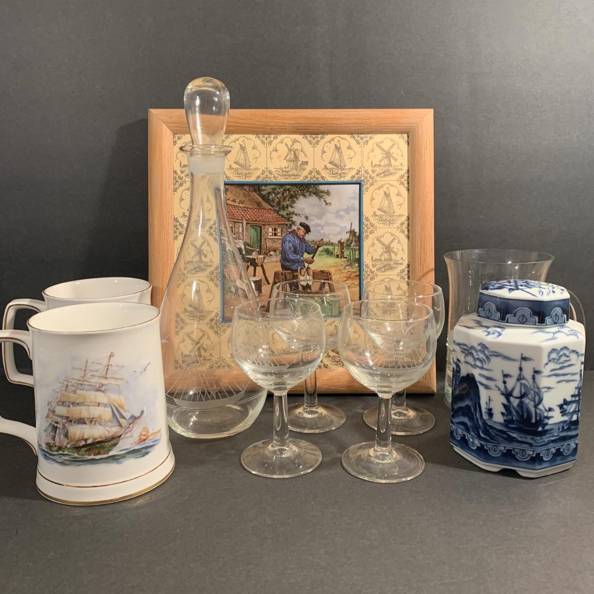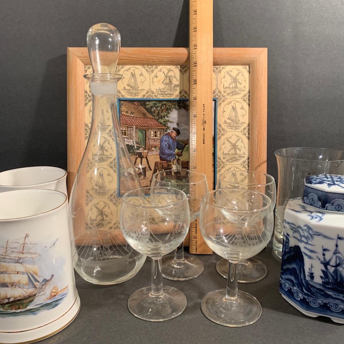 LOT 73R: Nautical: Ships Decanter w/Matching Stemware, Tile Artwork, Ships Mugs and More