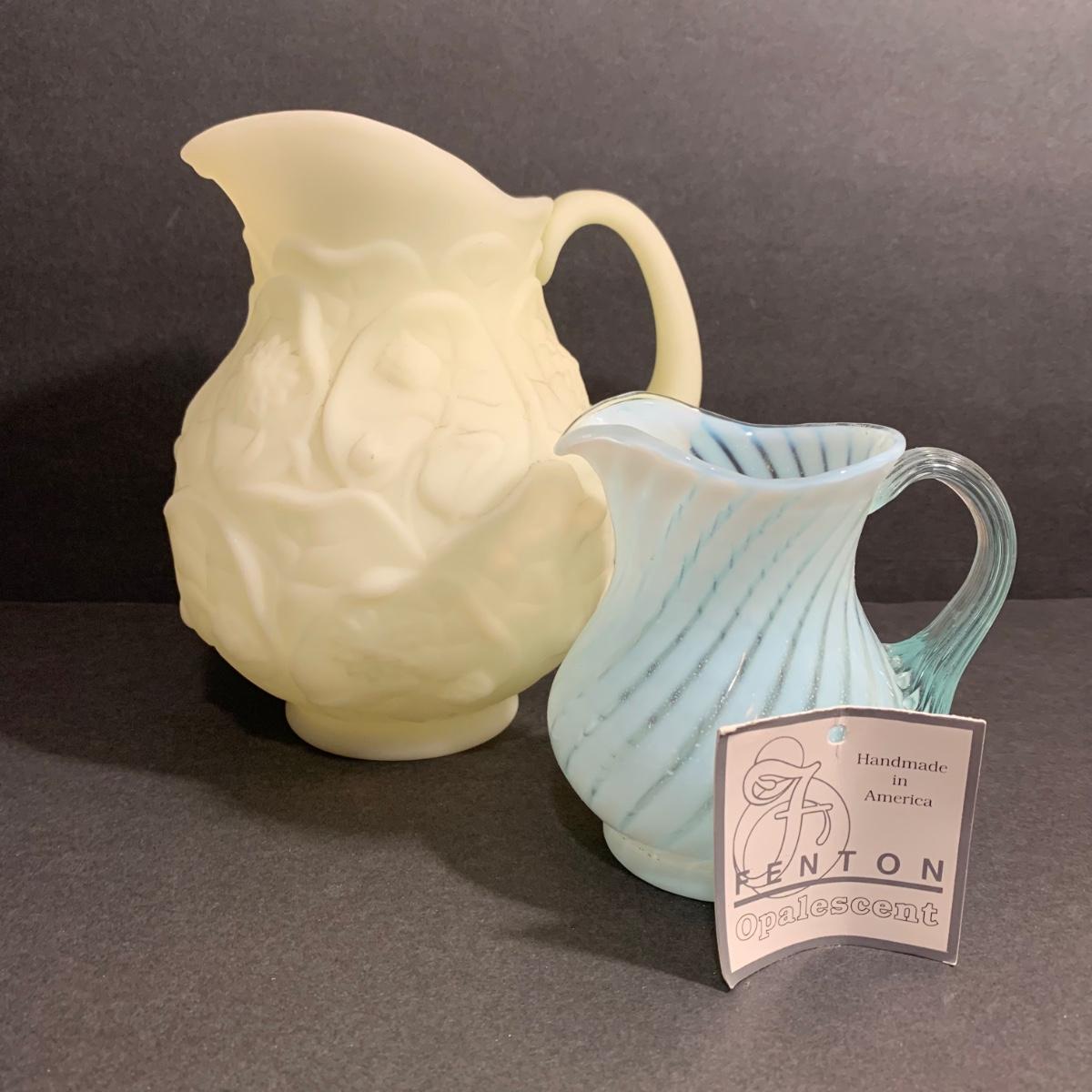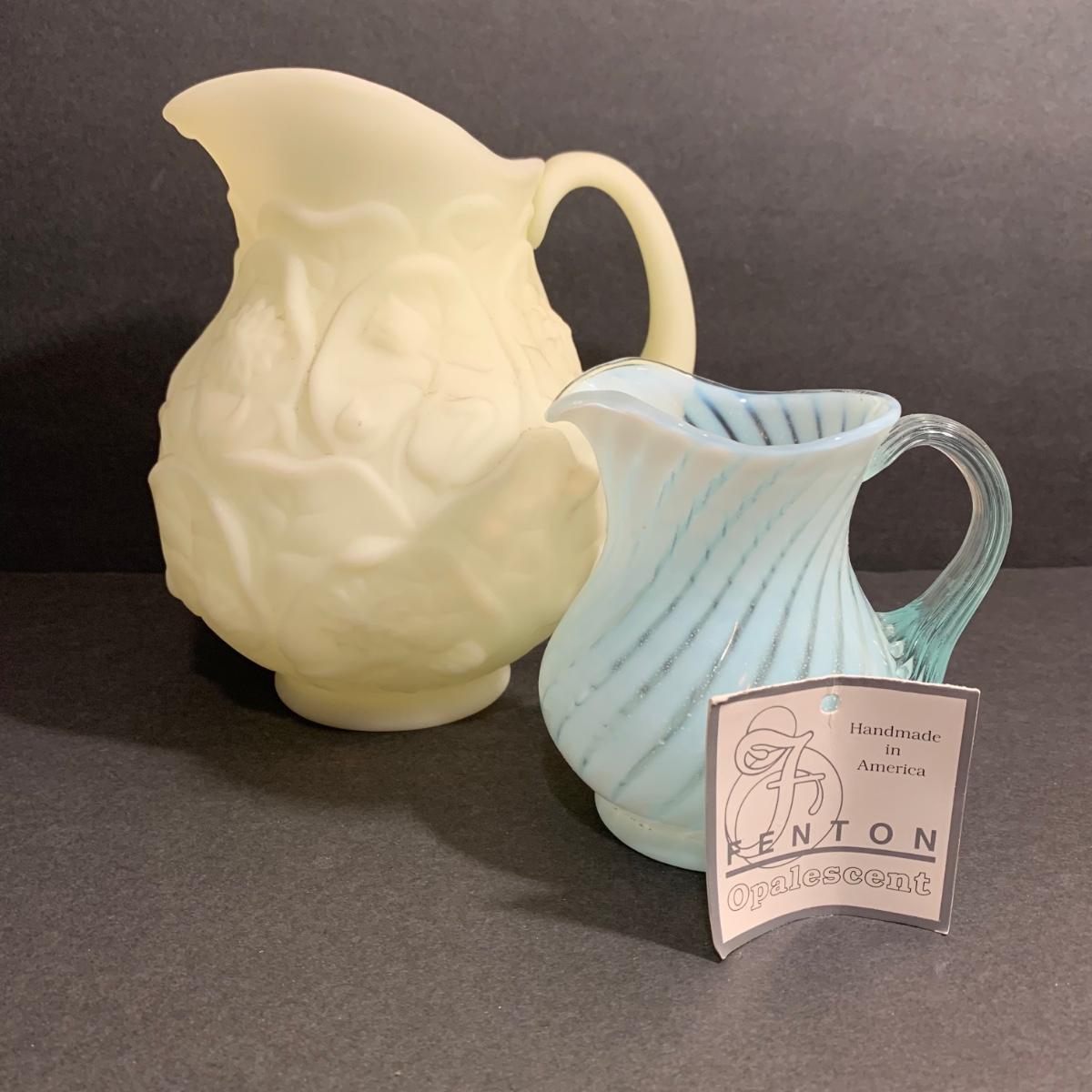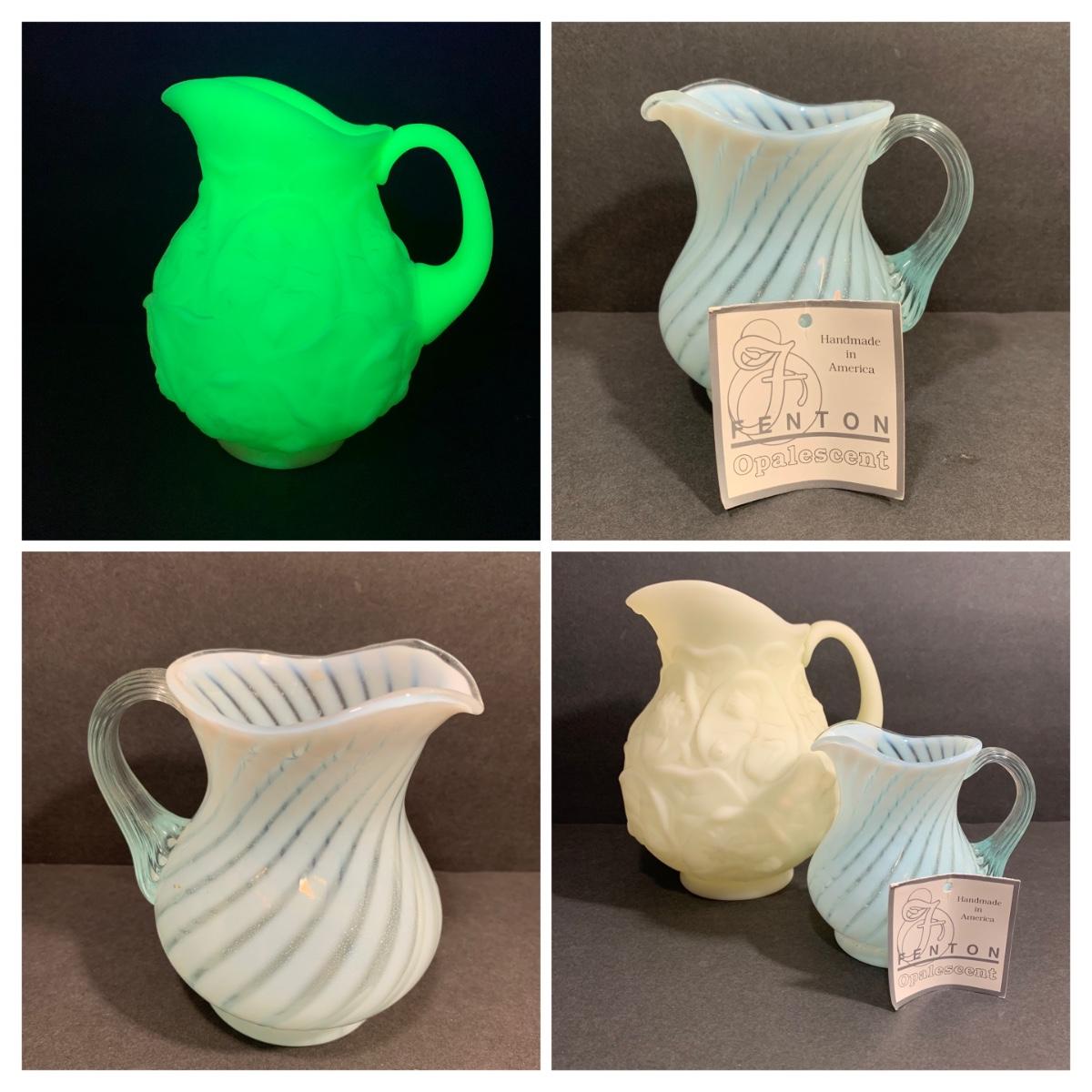 LOT 77R: Vintage Opalescent Fenton Pitcher & Uranium Glass Pitcher