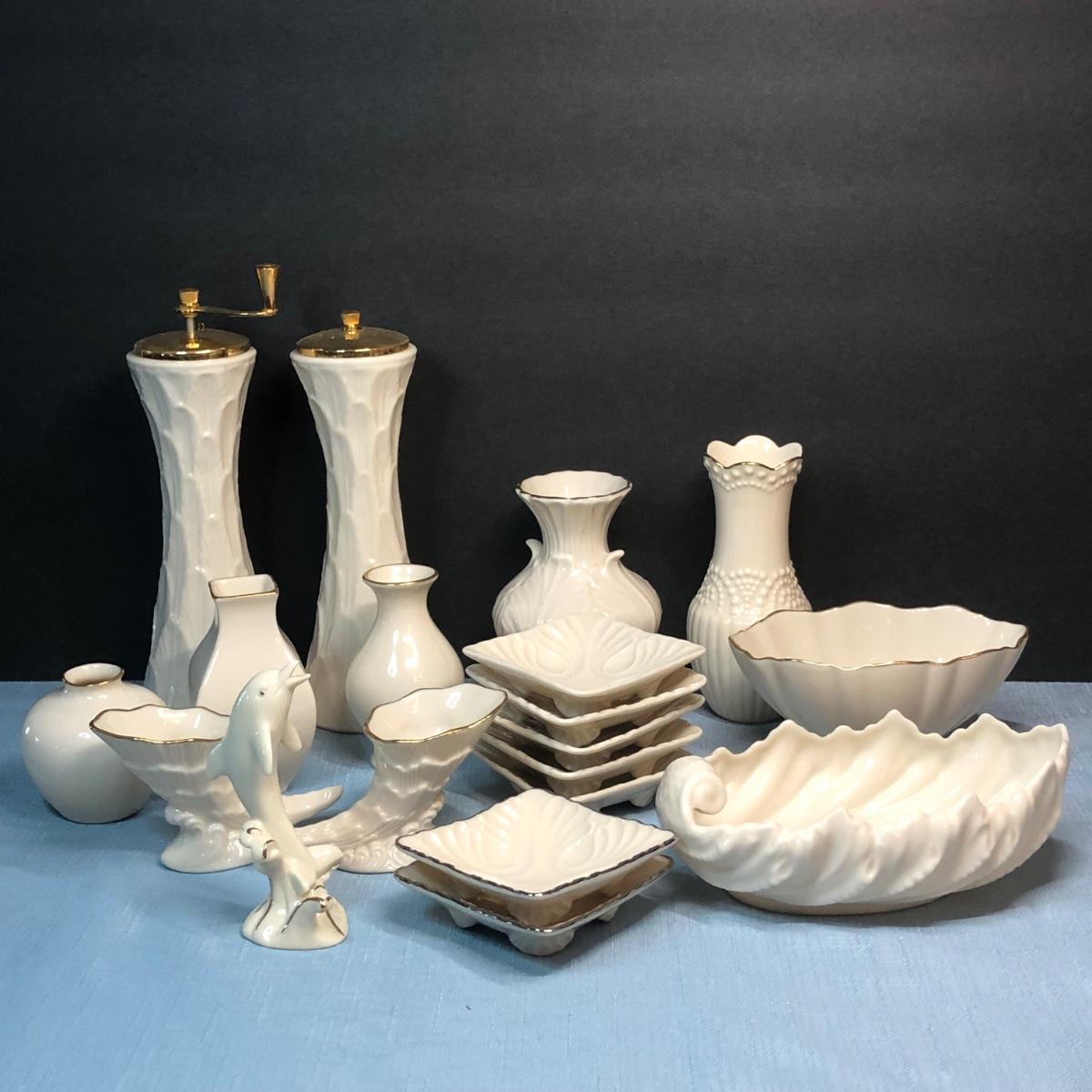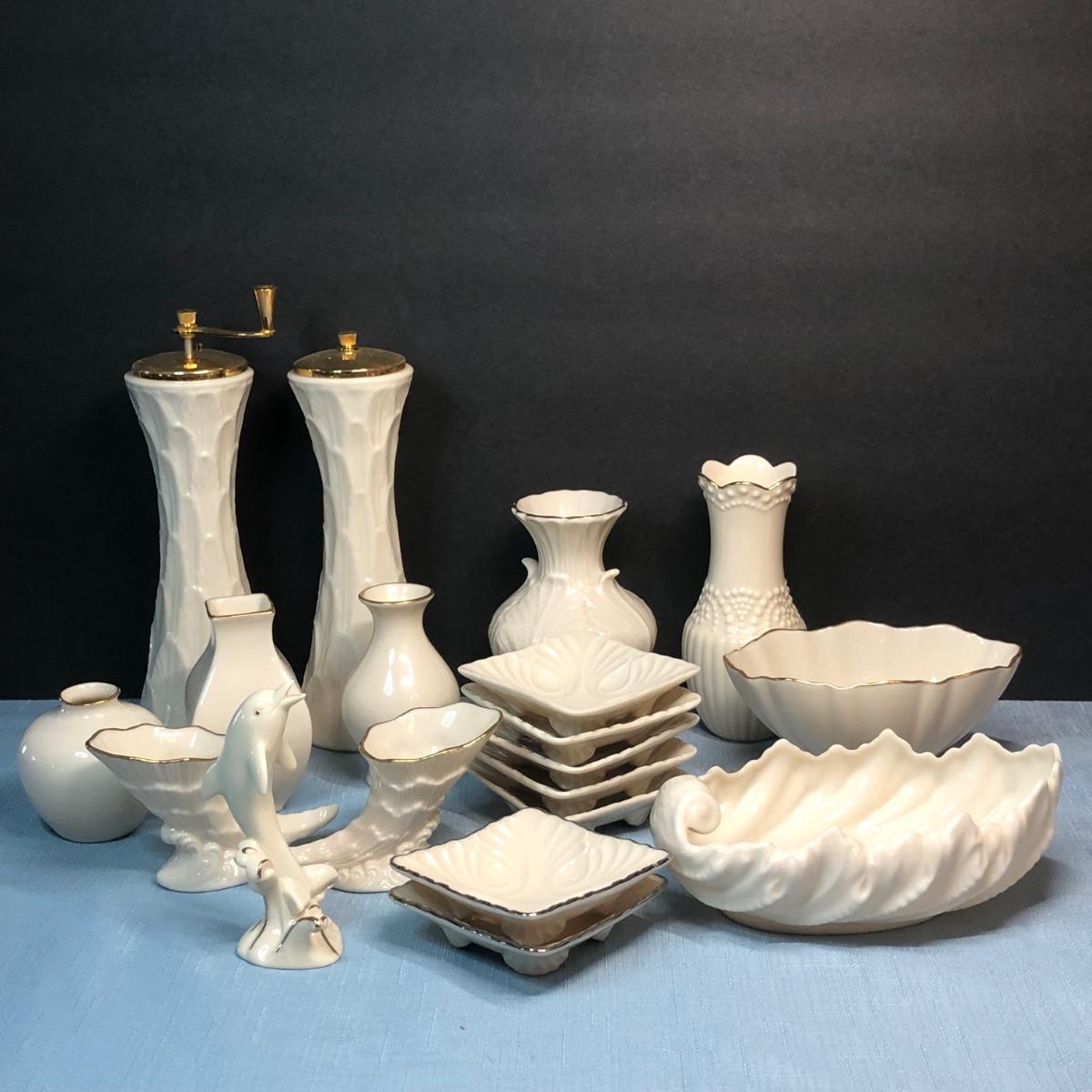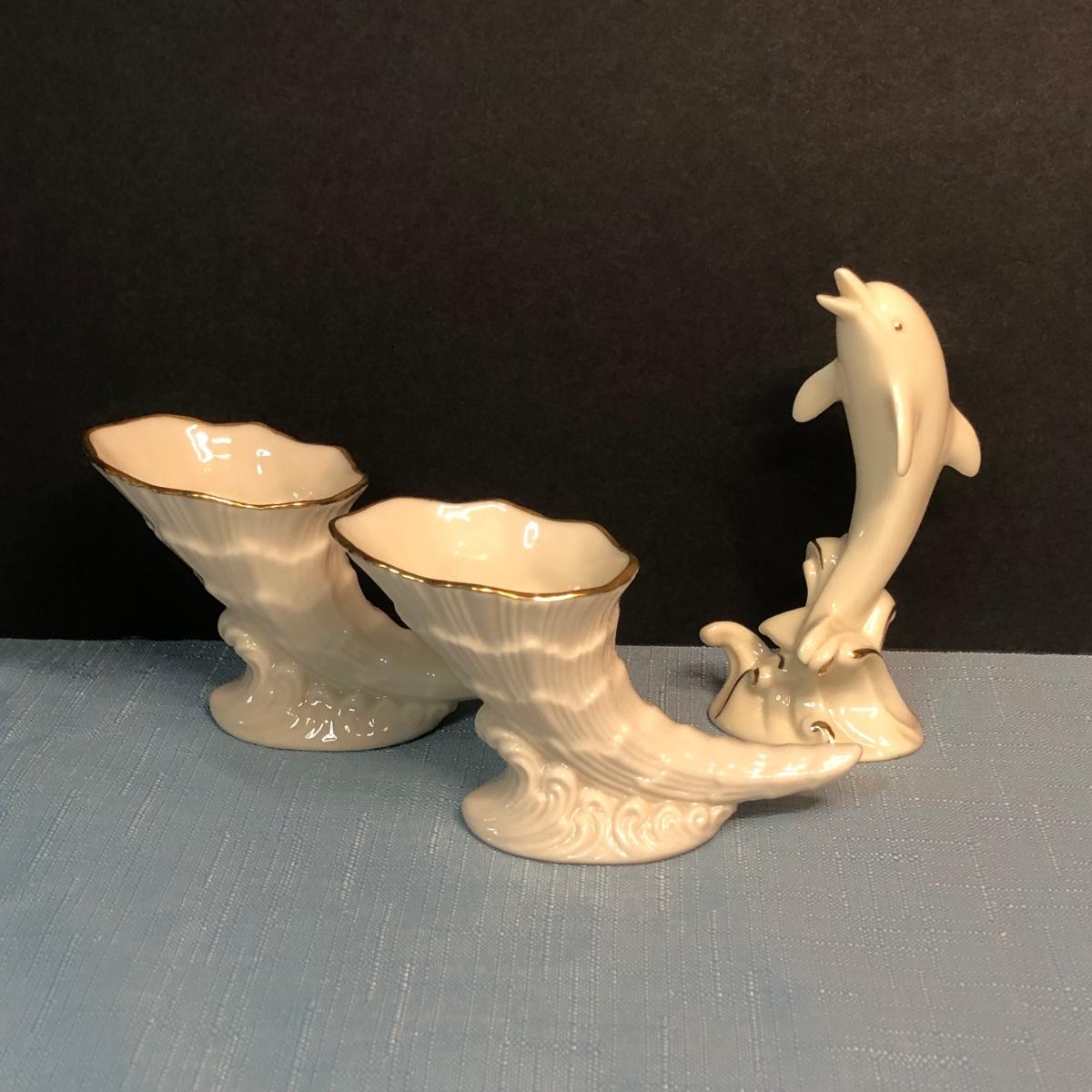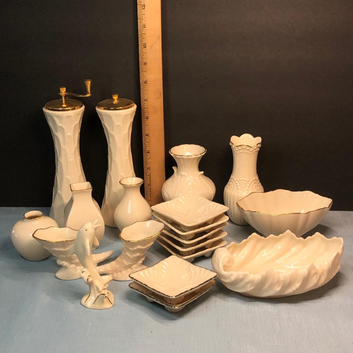 LOT 91M: Lenox Collection - Tall S&P Shakers, Miniature Vases, Dolphin & Small Dishes