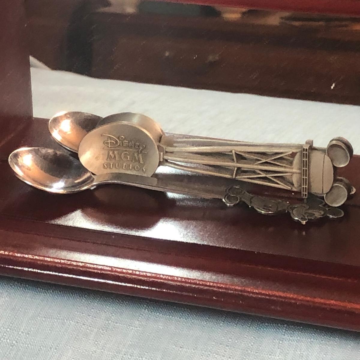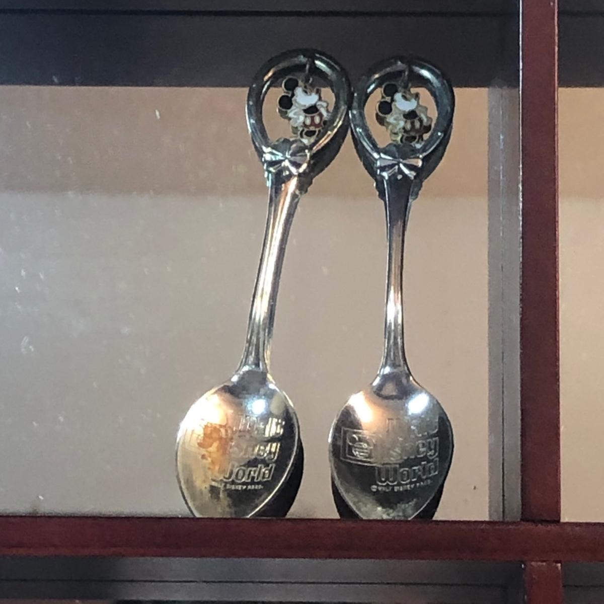 Includes a variety of miniature Disney figurines in different materials. Also includes souvenir spoons.