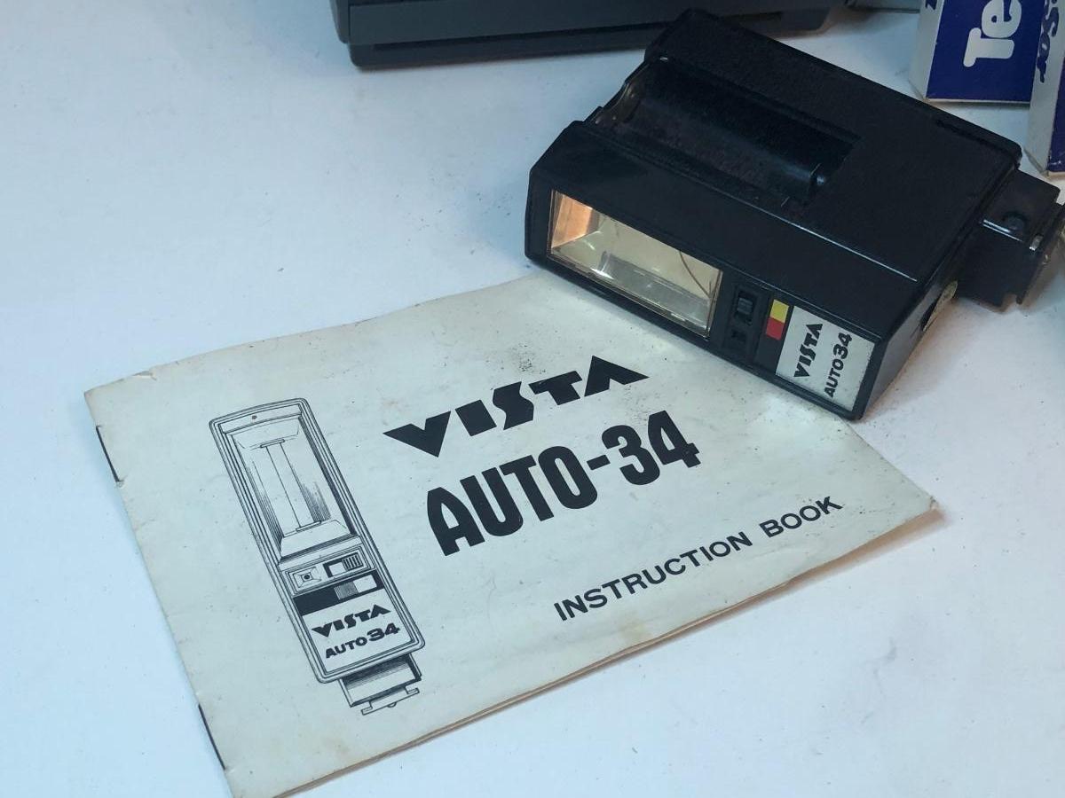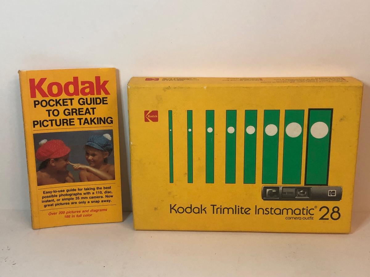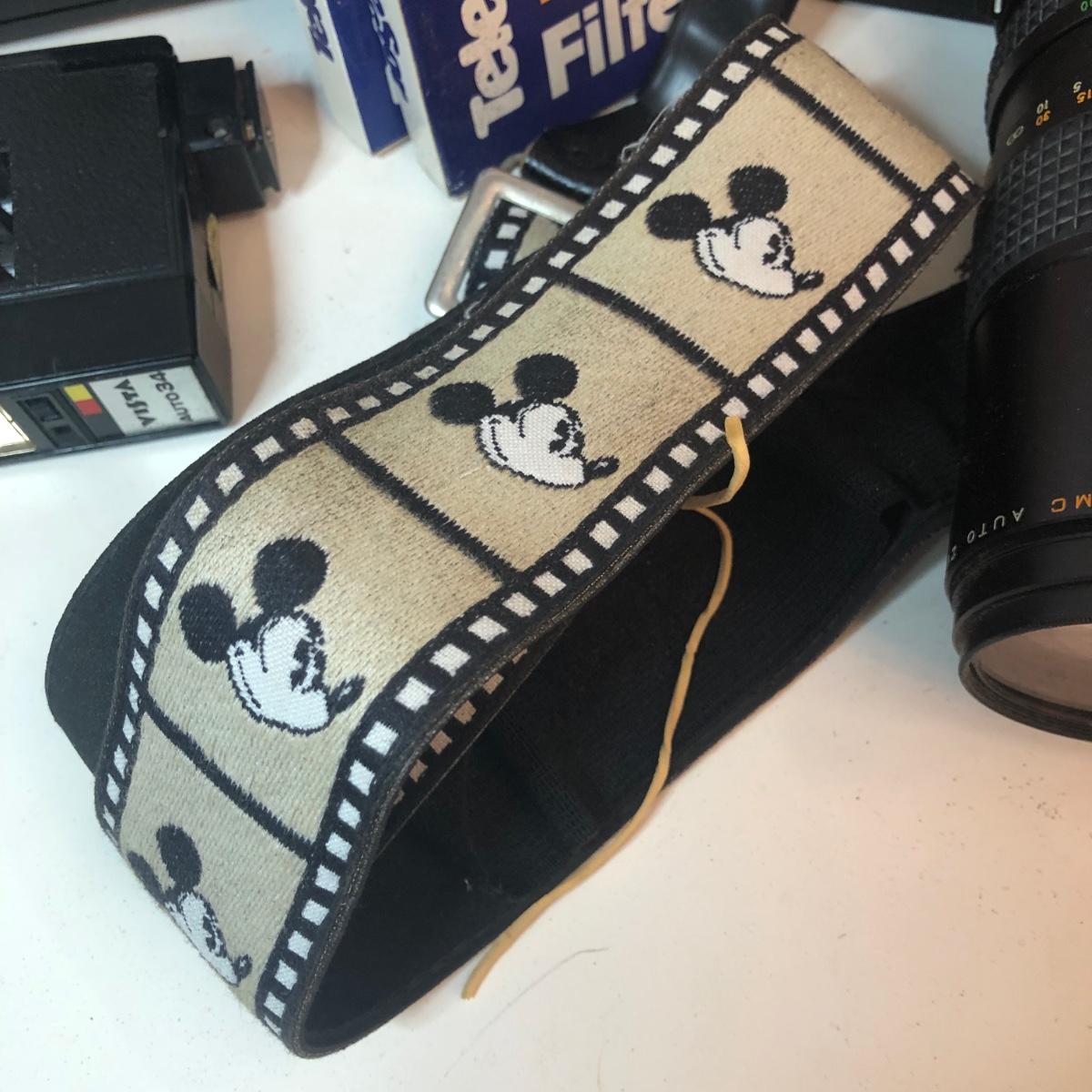 LOT 104M: Ricoh KR-10 Super 35mm Camera w/ Mickey Mouse Filmstrip Strap, Ricoh XR Winder-2, Kodak Trimlite Instamatic 28, Polaroid OneStep w/ Attachable Flash, Vista Auto-34 Flash & More
