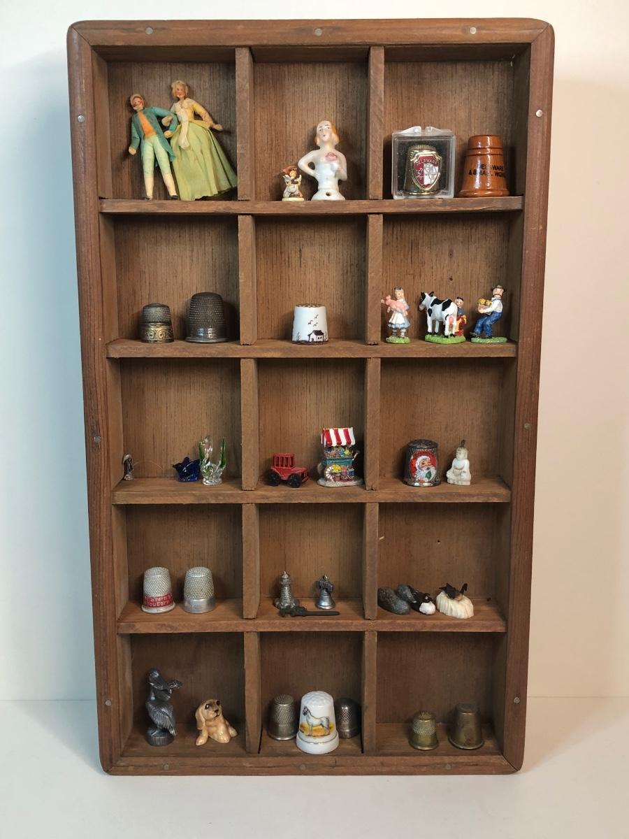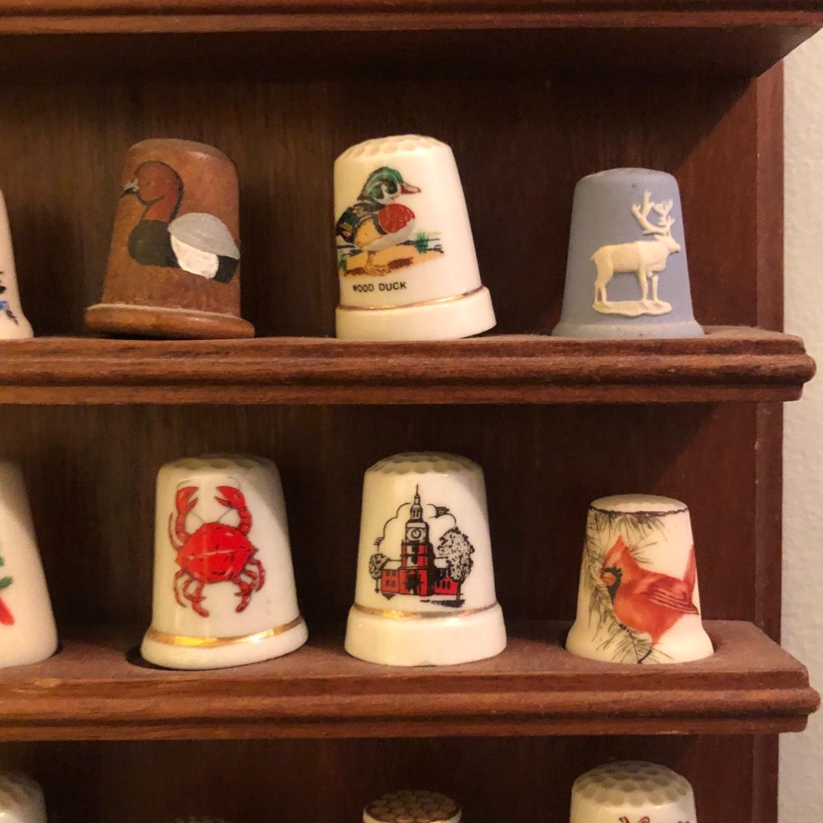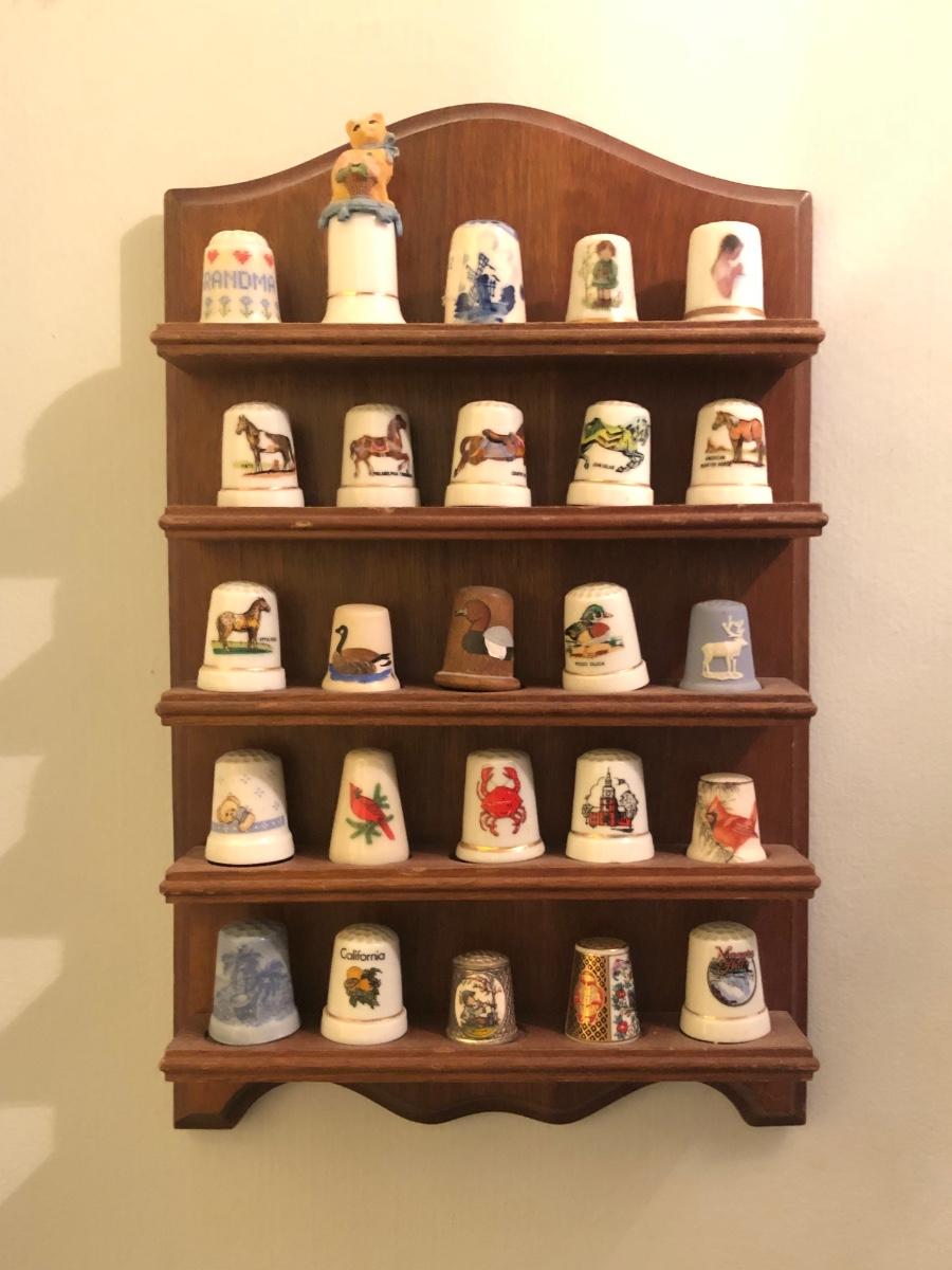 This collection includes a large number of thimbles and small miniatures. This collection contains a Lenox thimble, a Hummel thimble, painted wooden thimbles, and so much more.