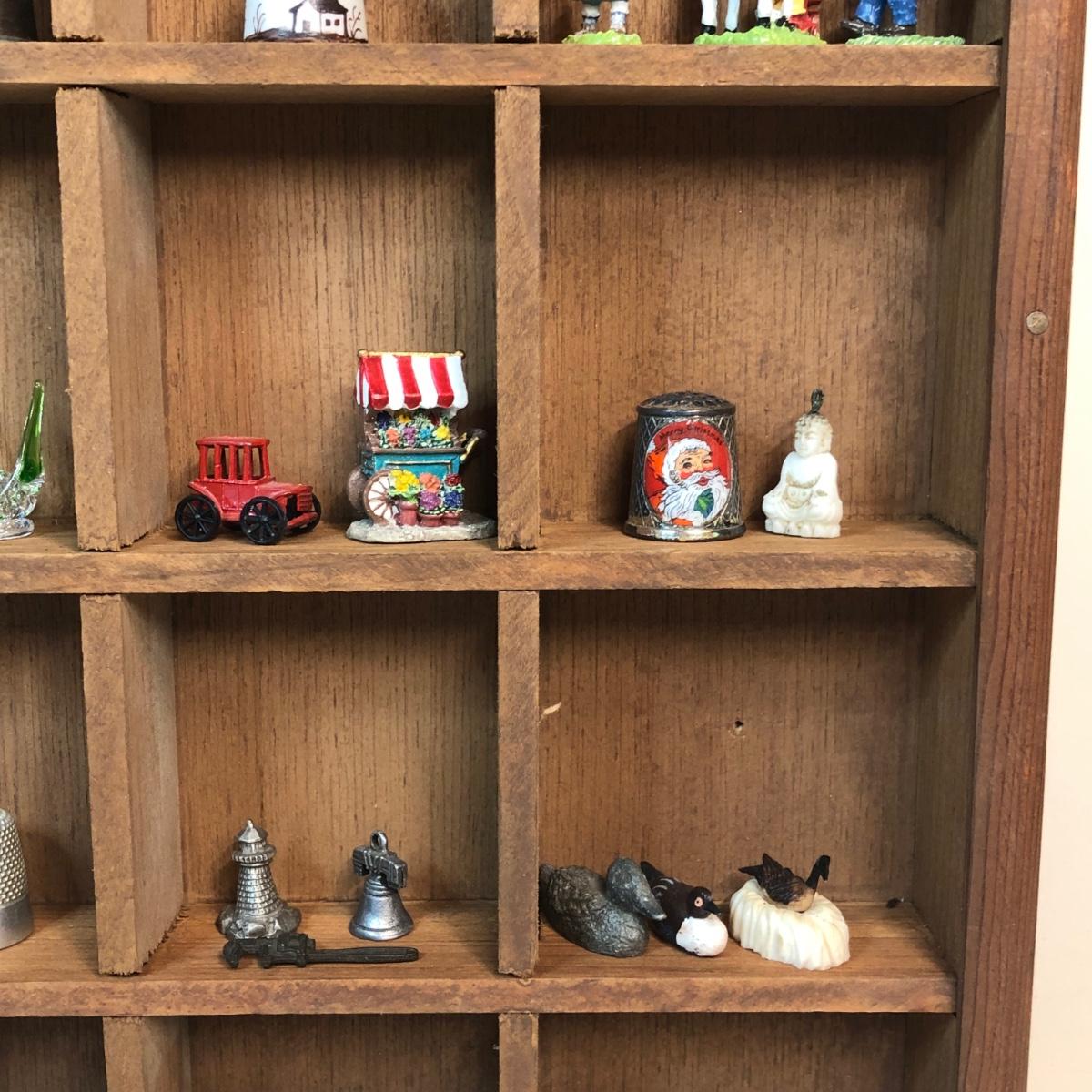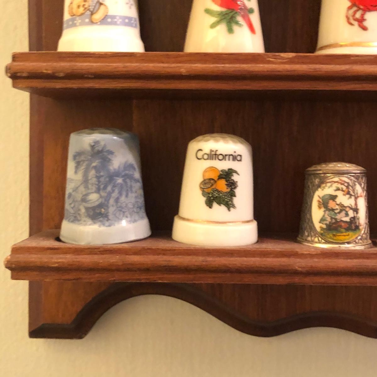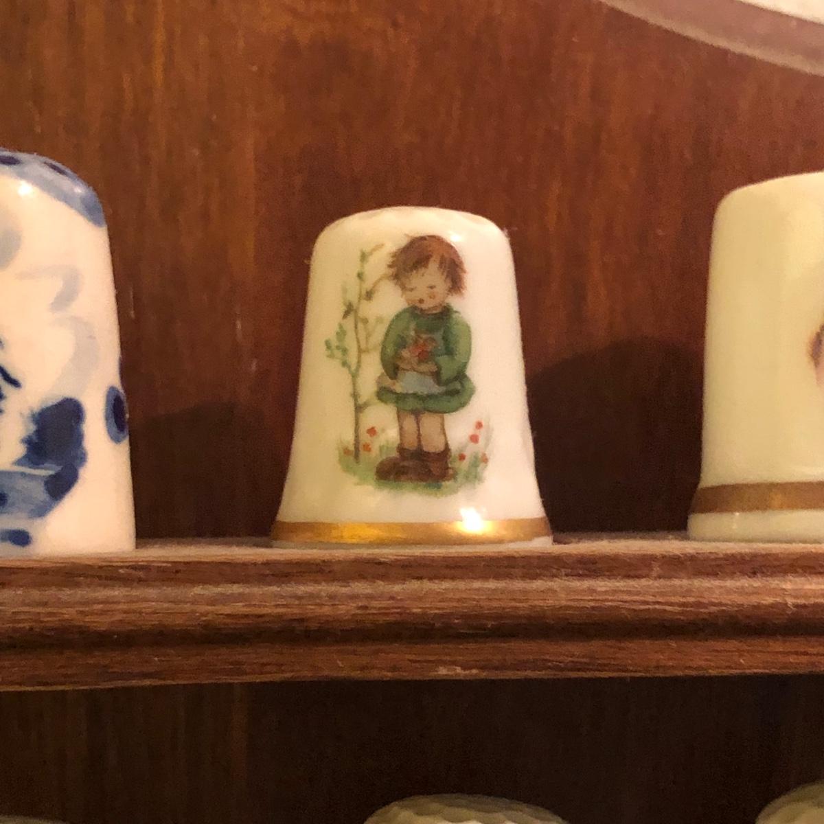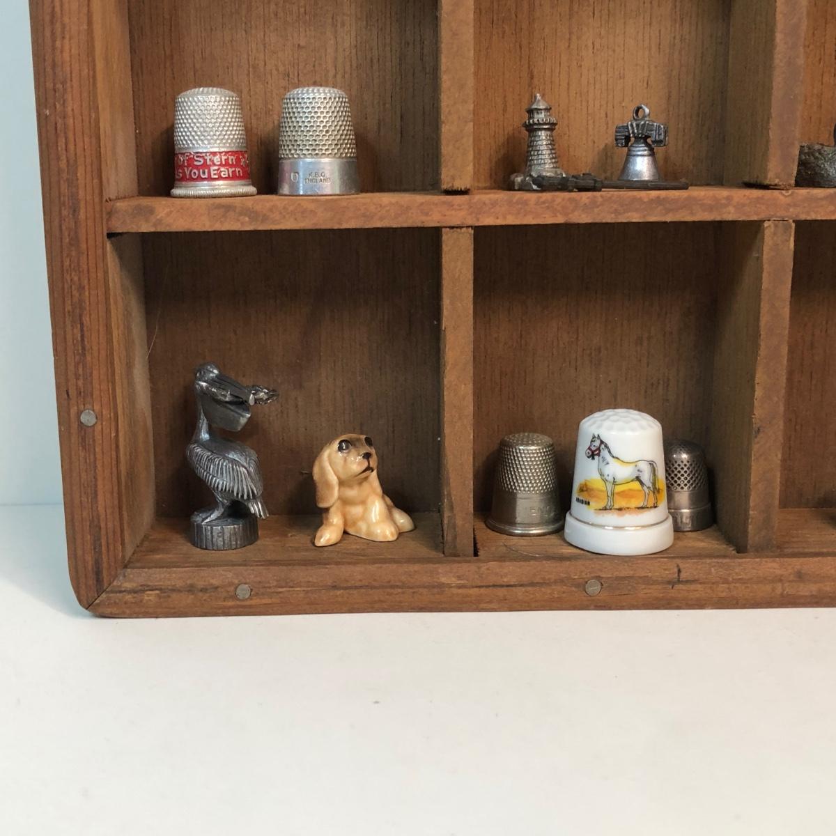 This collection includes a large number of thimbles and small miniatures. This collection contains a Lenox thimble, a Hummel thimble, painted wooden thimbles, and so much more.