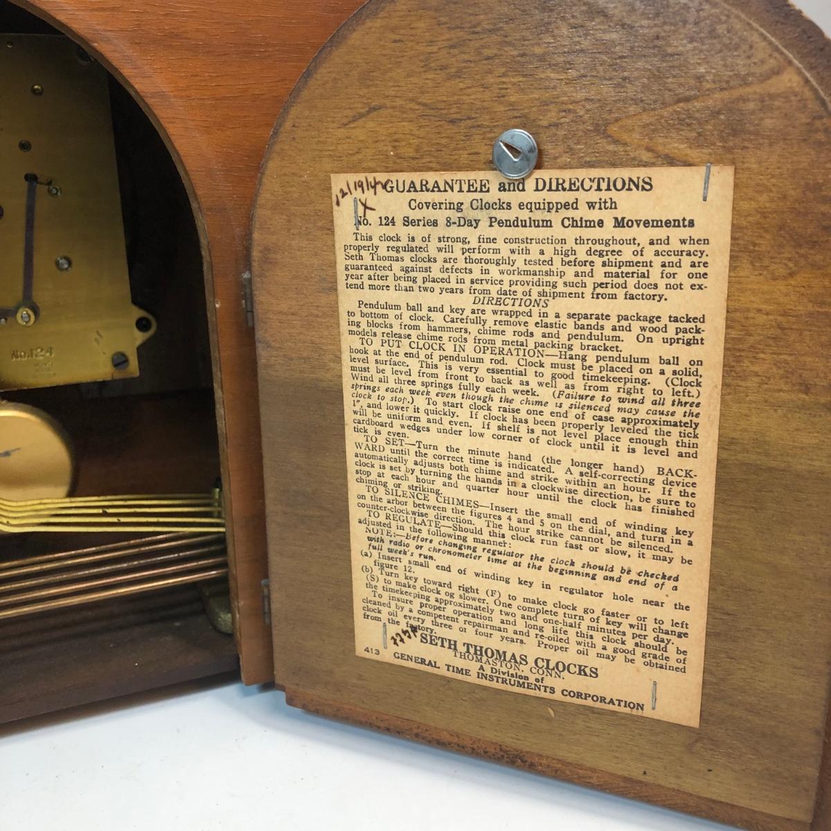 LOT 124M: Vintage Seth Thomas No. 124 Series 8-Day Pendulum Mantle Clock w/ Key