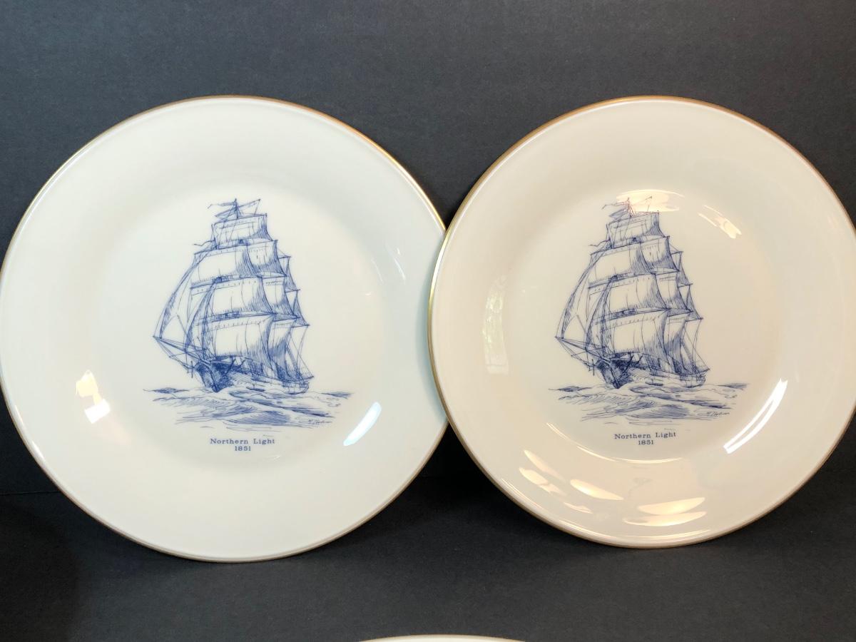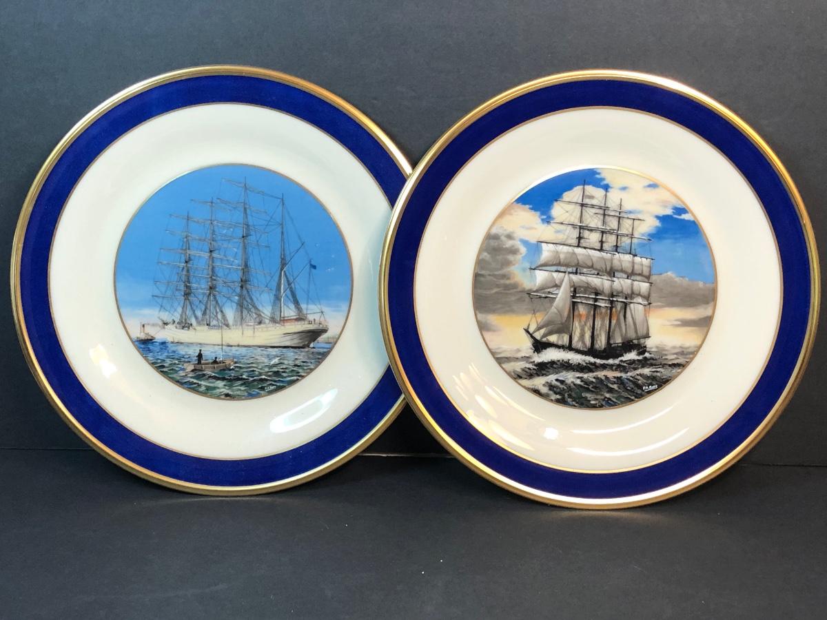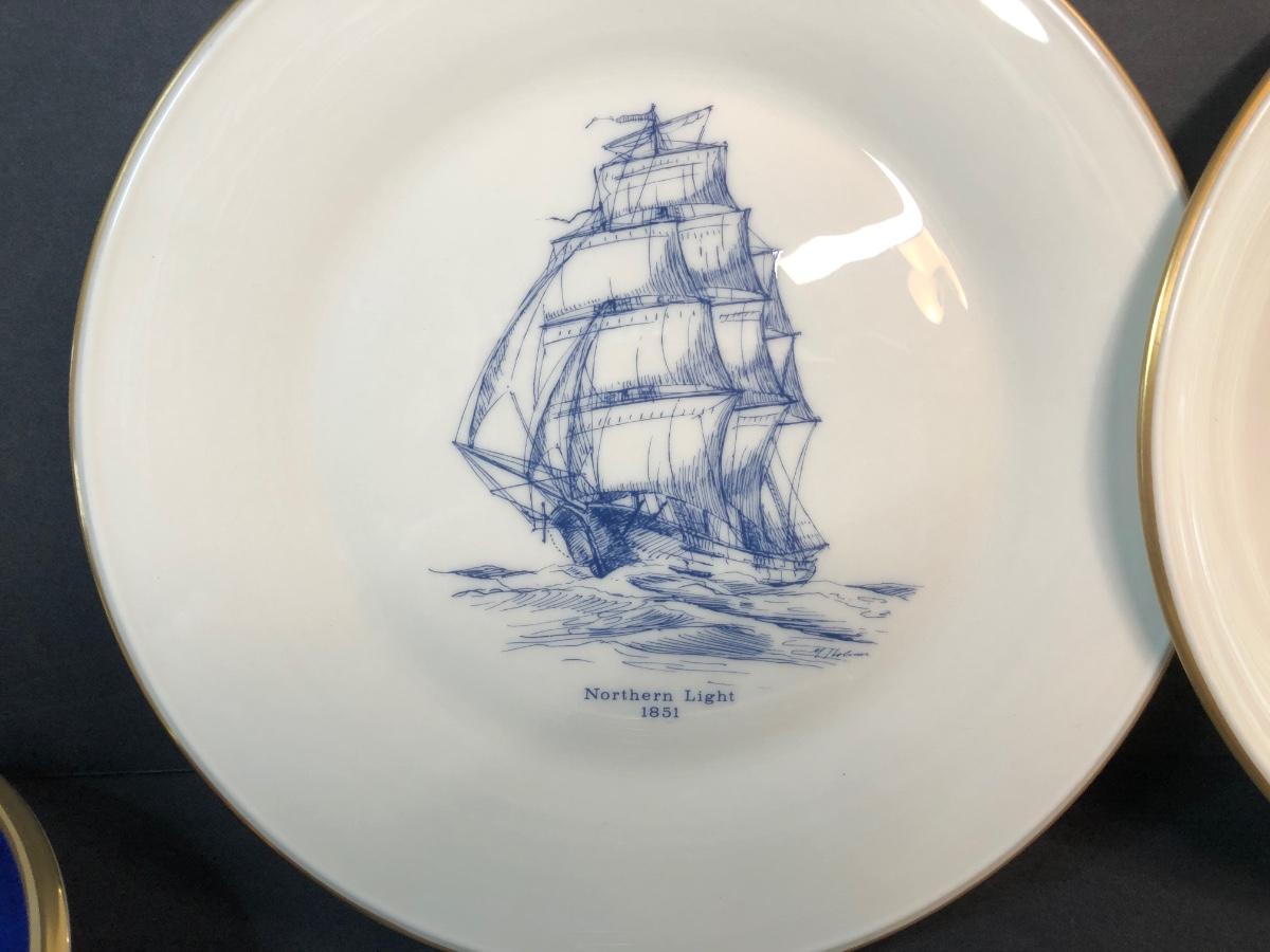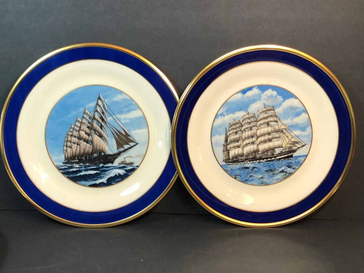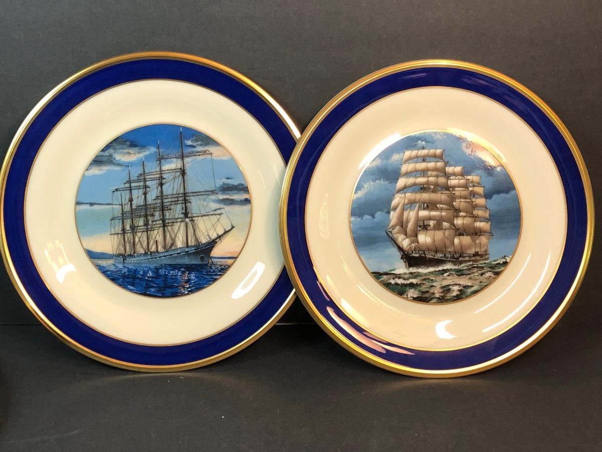 LOT 127M: Vintage Lenox Special Collector Plates, Tall Ship Cobalt Blue & Gold Trim &  Sailing Ships
