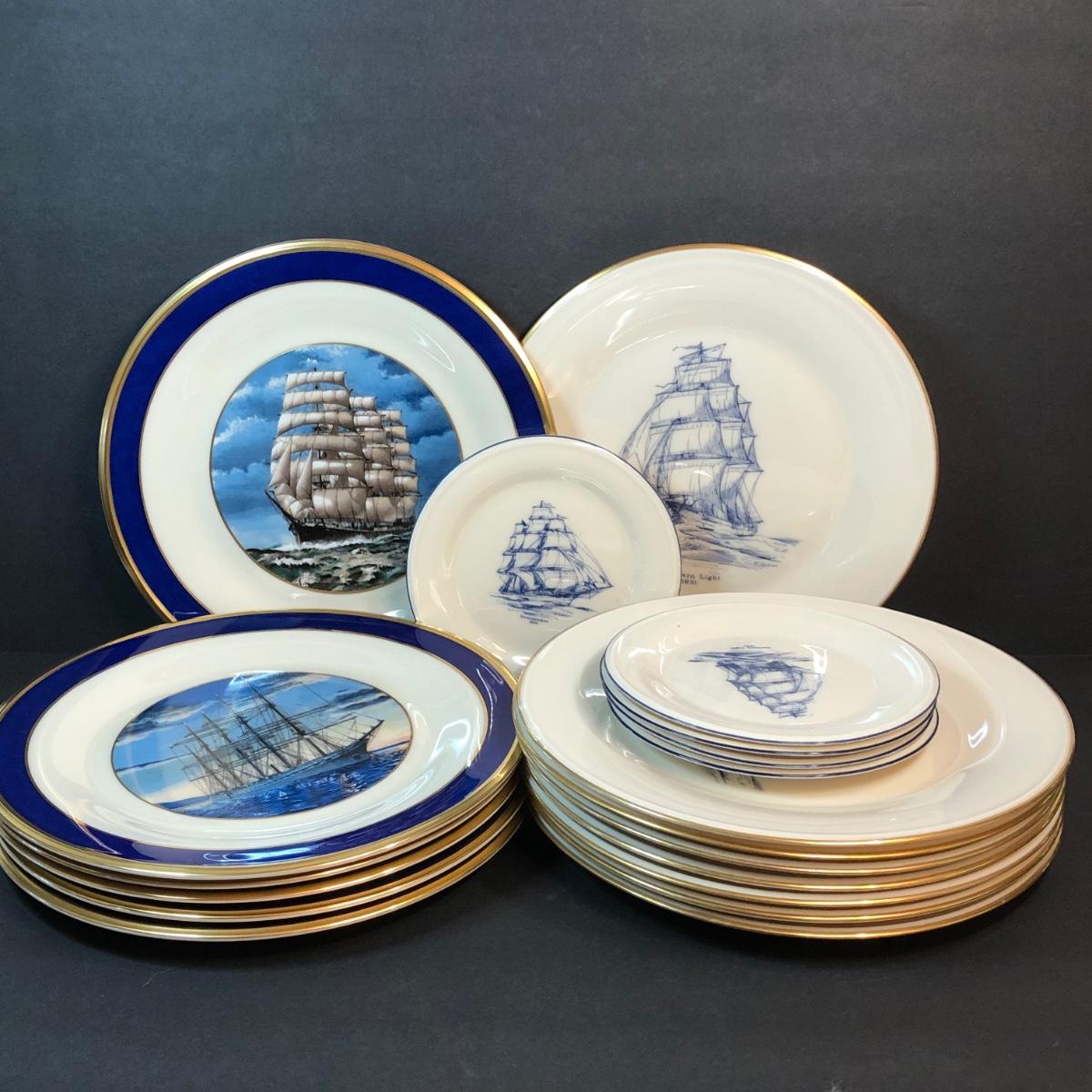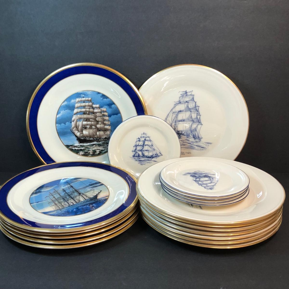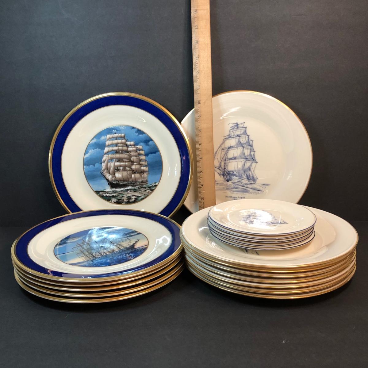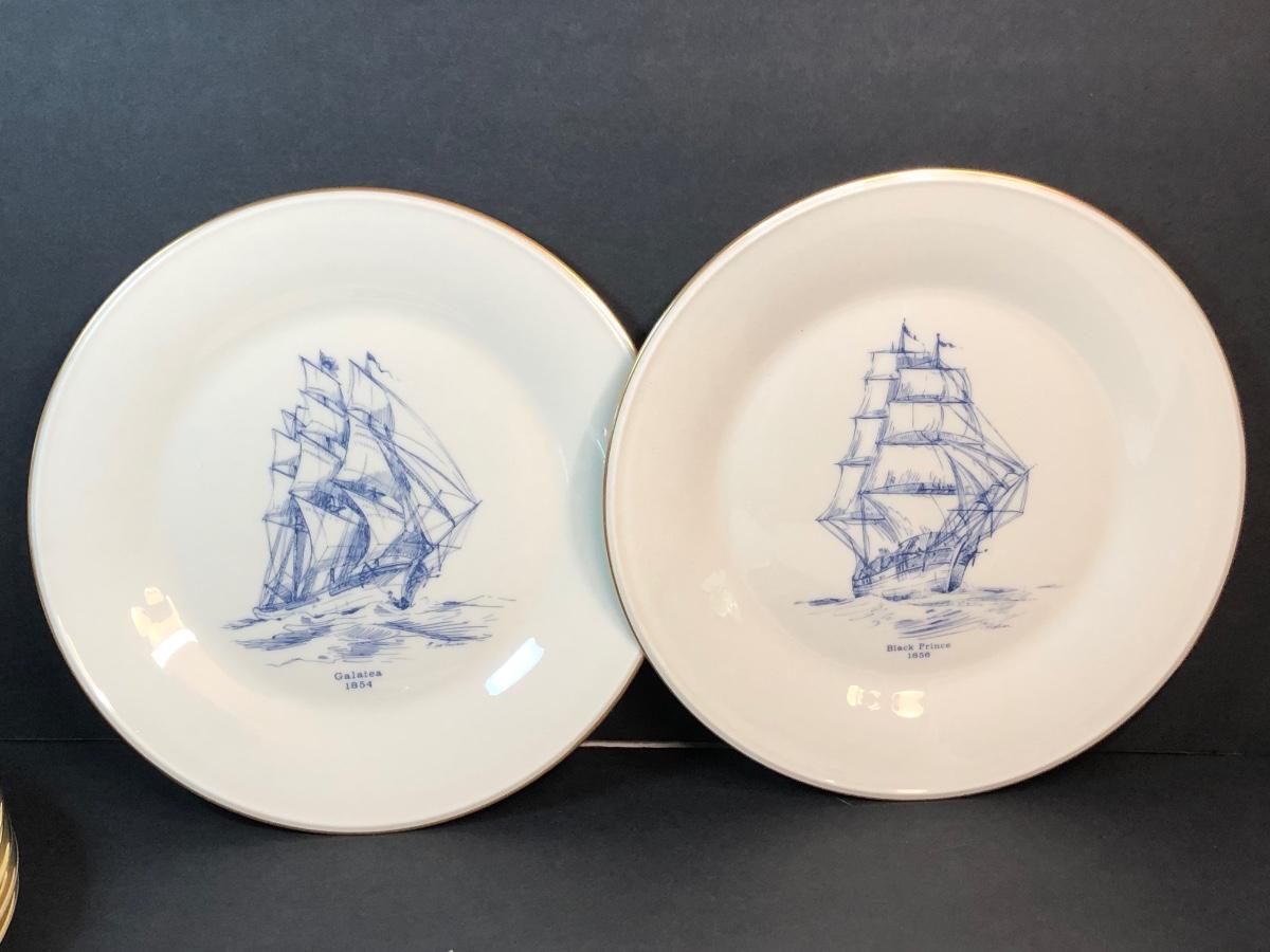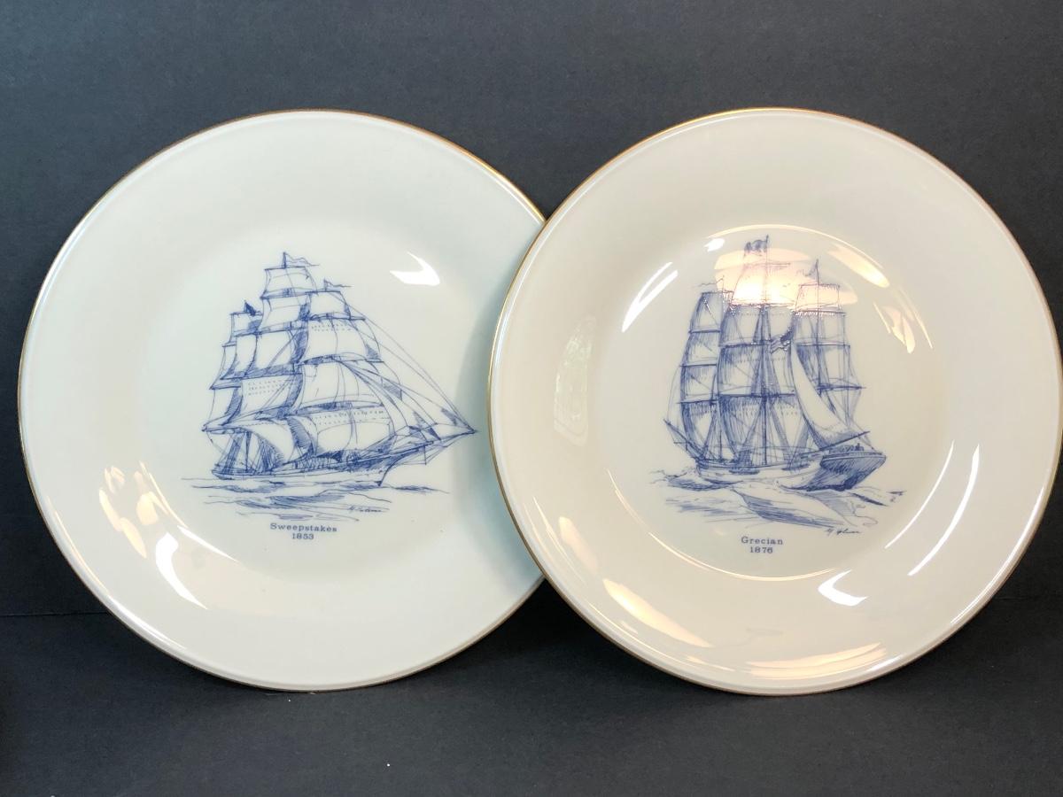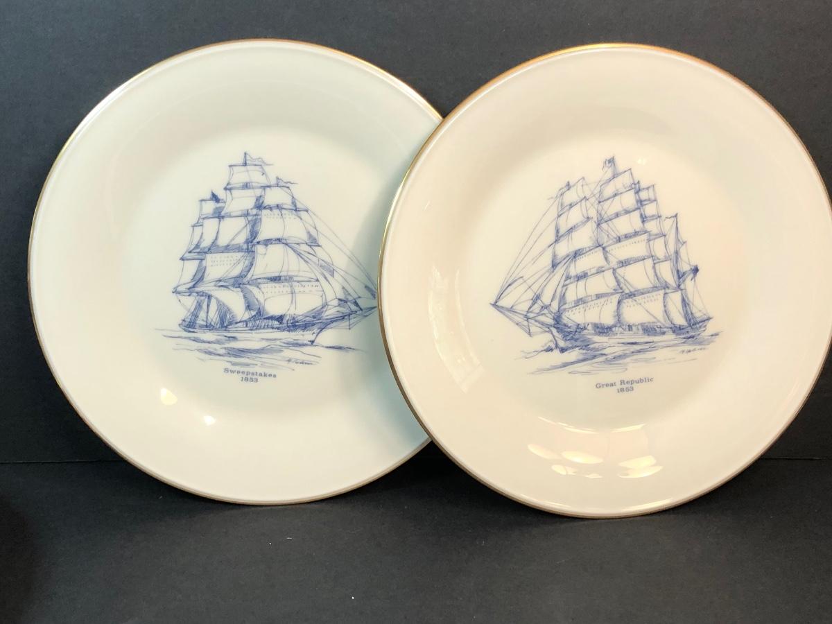 LOT 127M: Vintage Lenox Special Collector Plates, Tall Ship Cobalt Blue & Gold Trim &  Sailing Ships