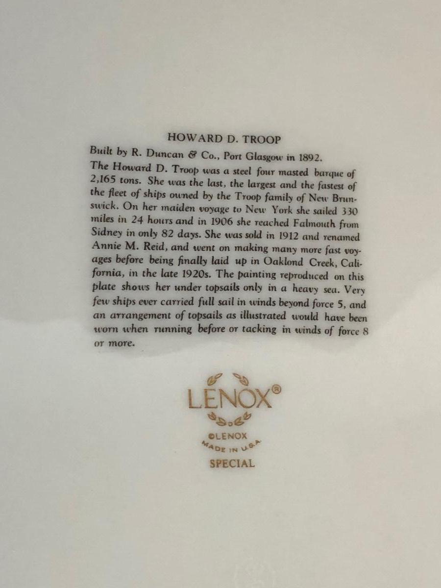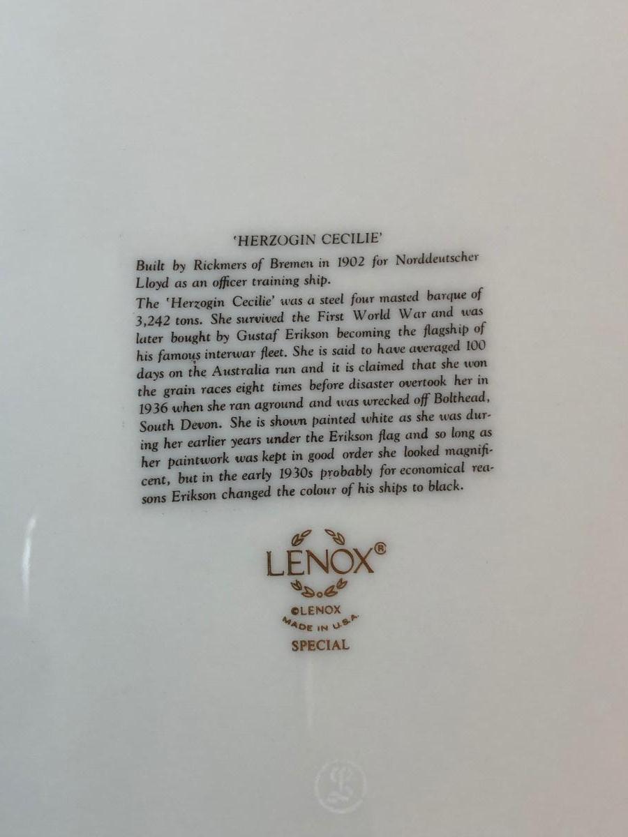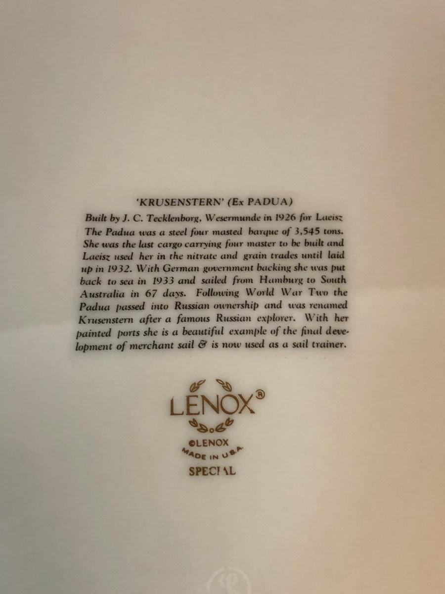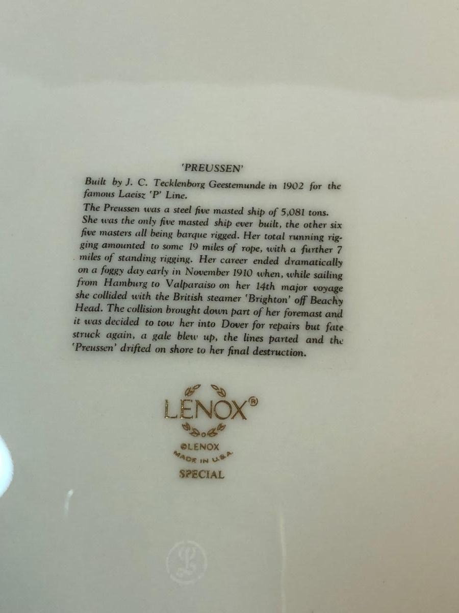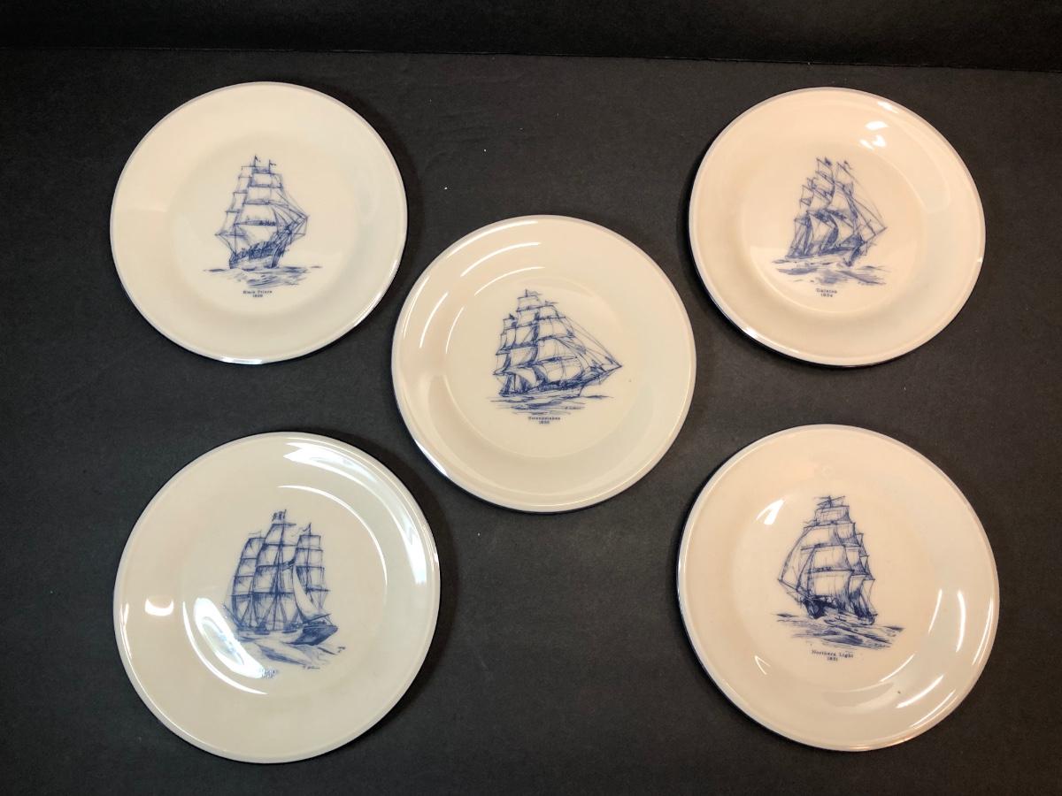 LOT 127M: Vintage Lenox Special Collector Plates, Tall Ship Cobalt Blue & Gold Trim &  Sailing Ships