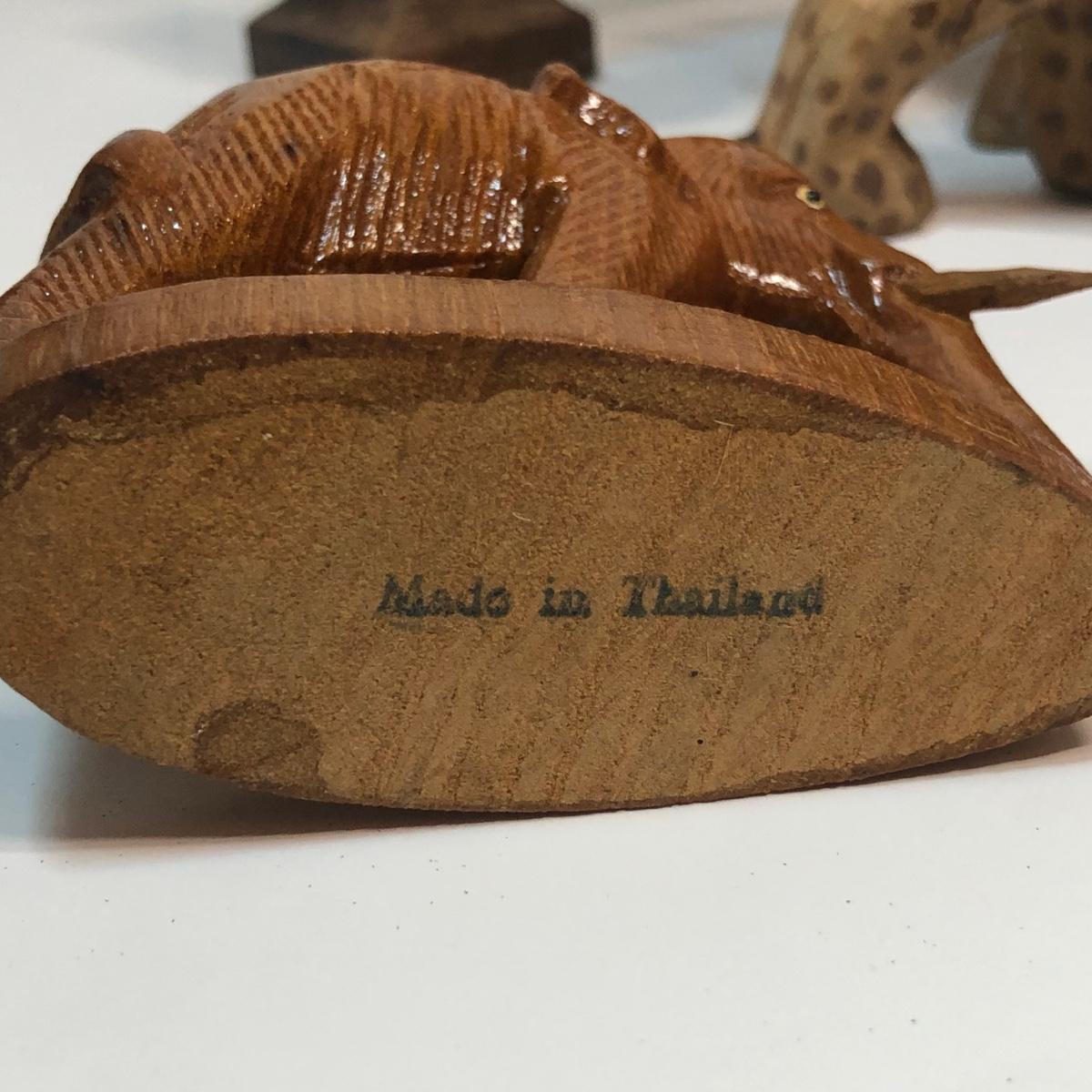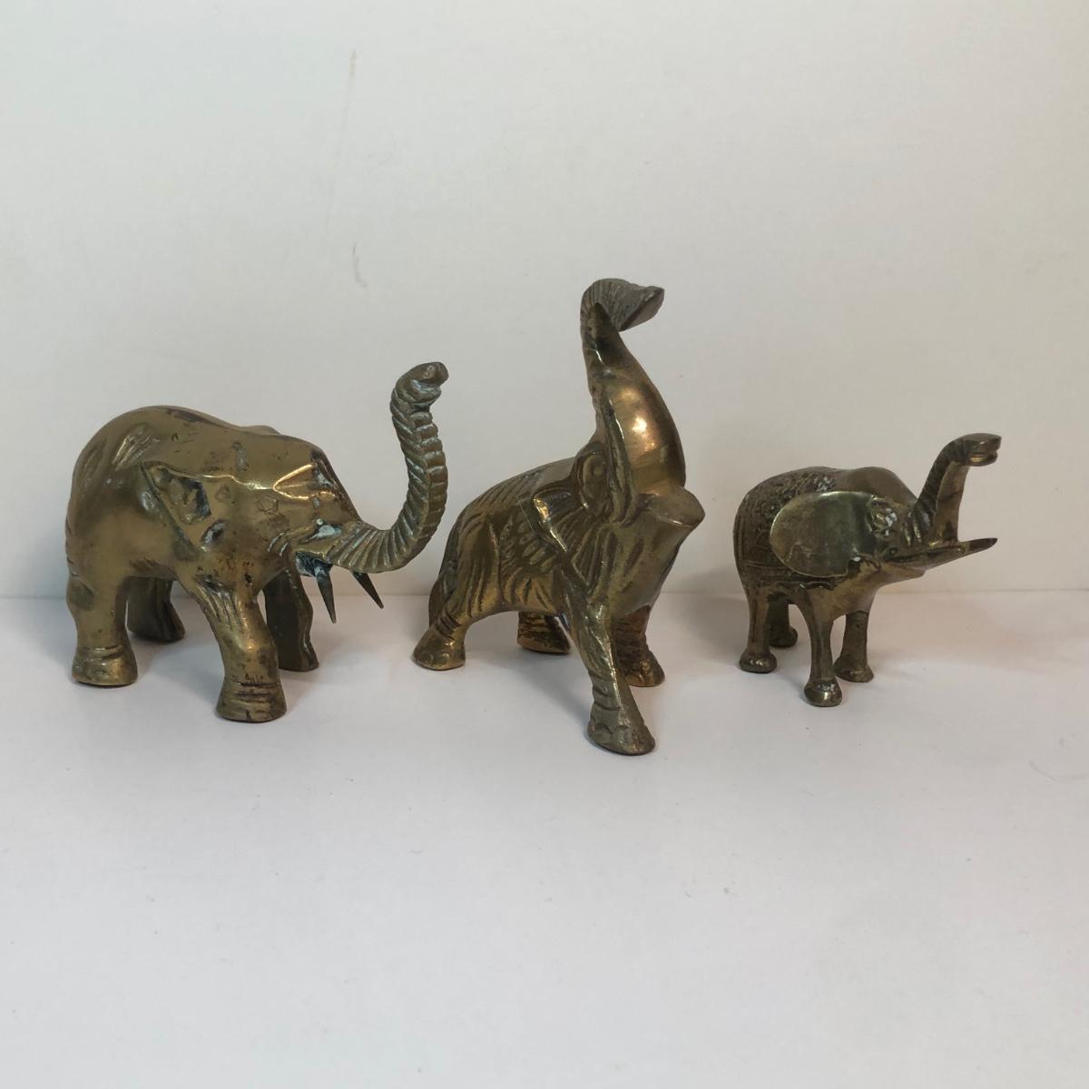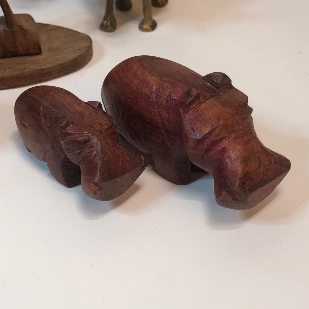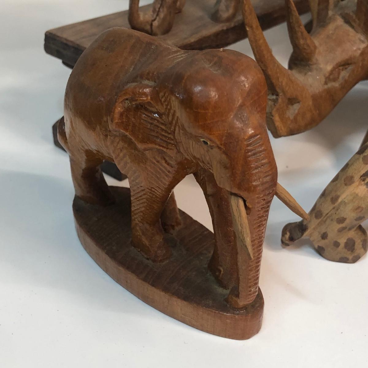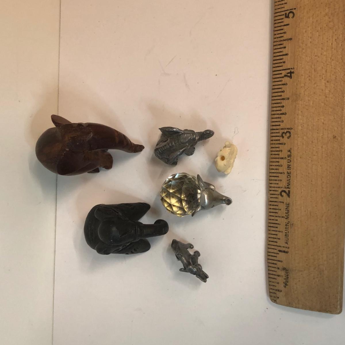 Includes a variety of wooden animal figures, brass elephants, two Lenox elephants, and a marble elephant.