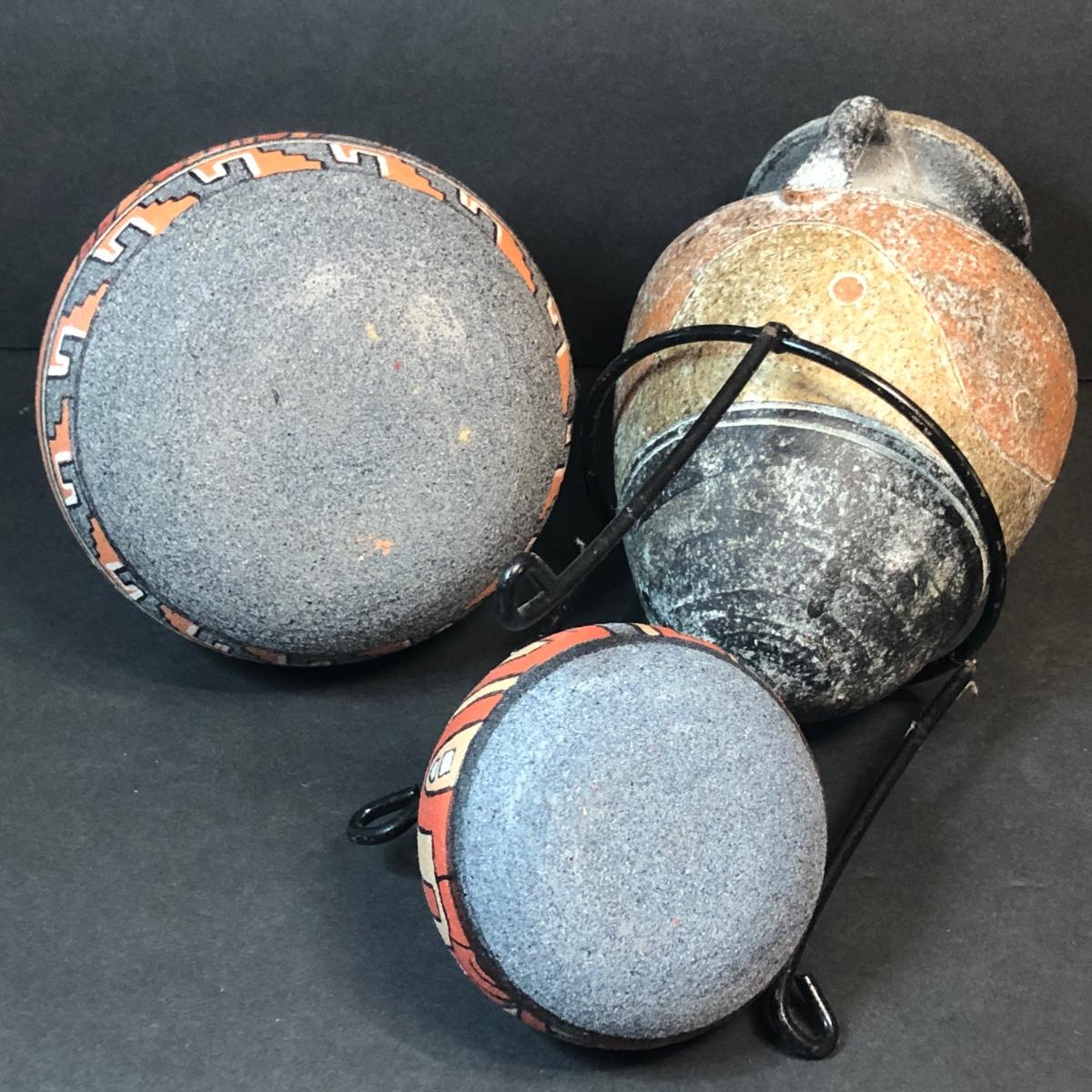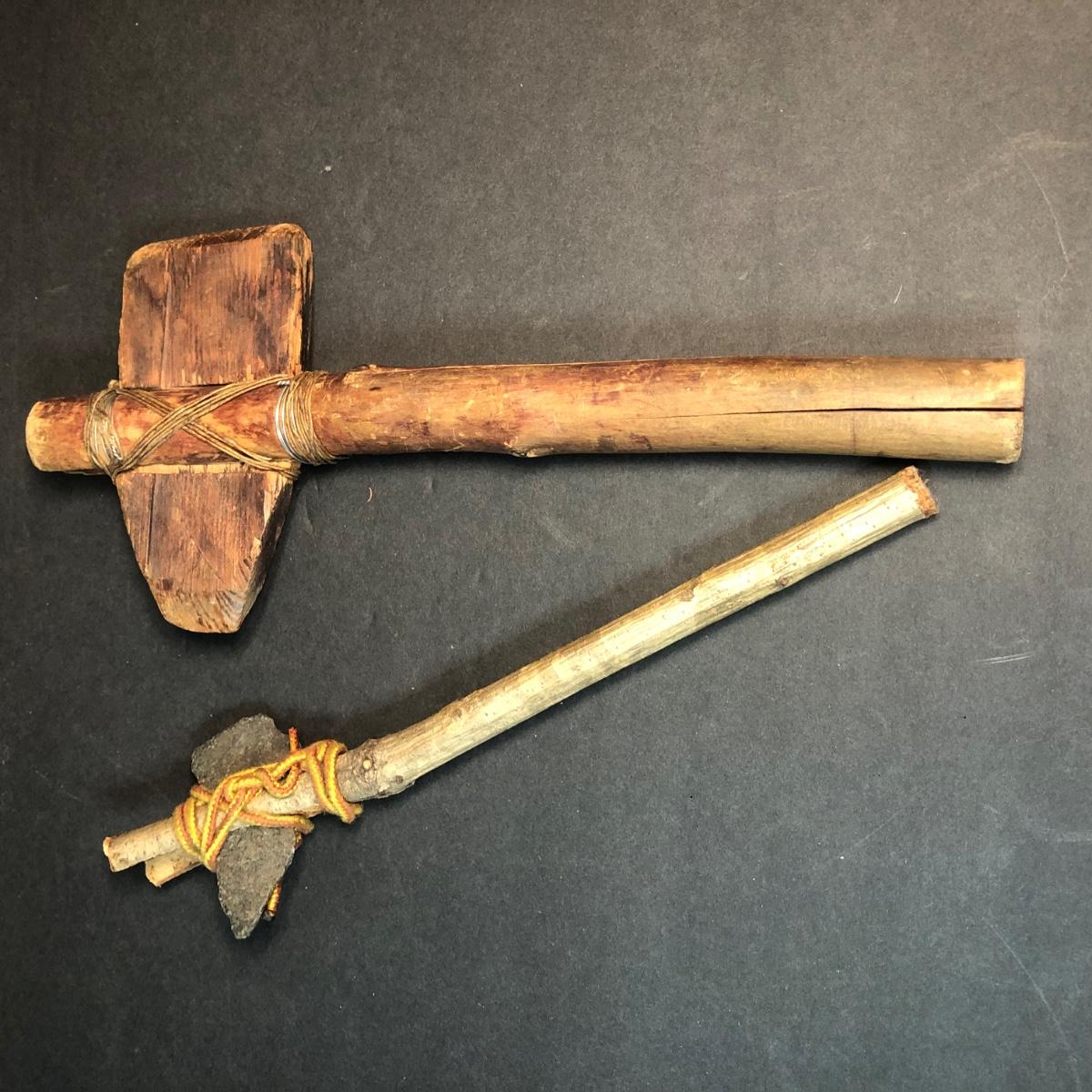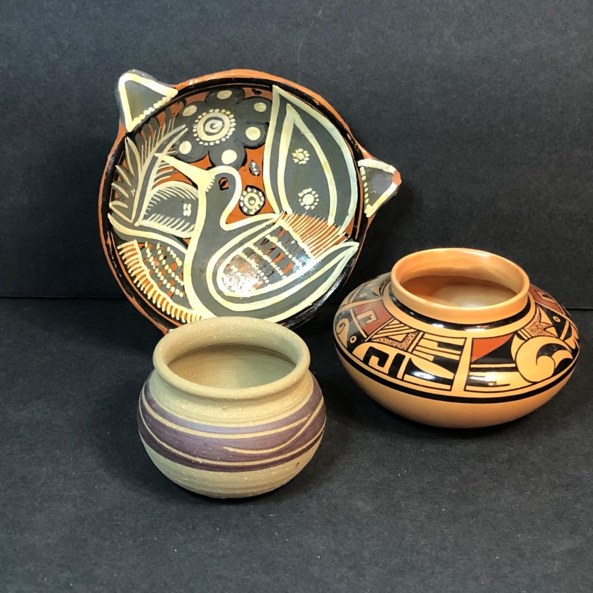 LOT 132M: Native American Plywood Painting, Pottery Pieces, Wooden Hatchet & Navajo Piece