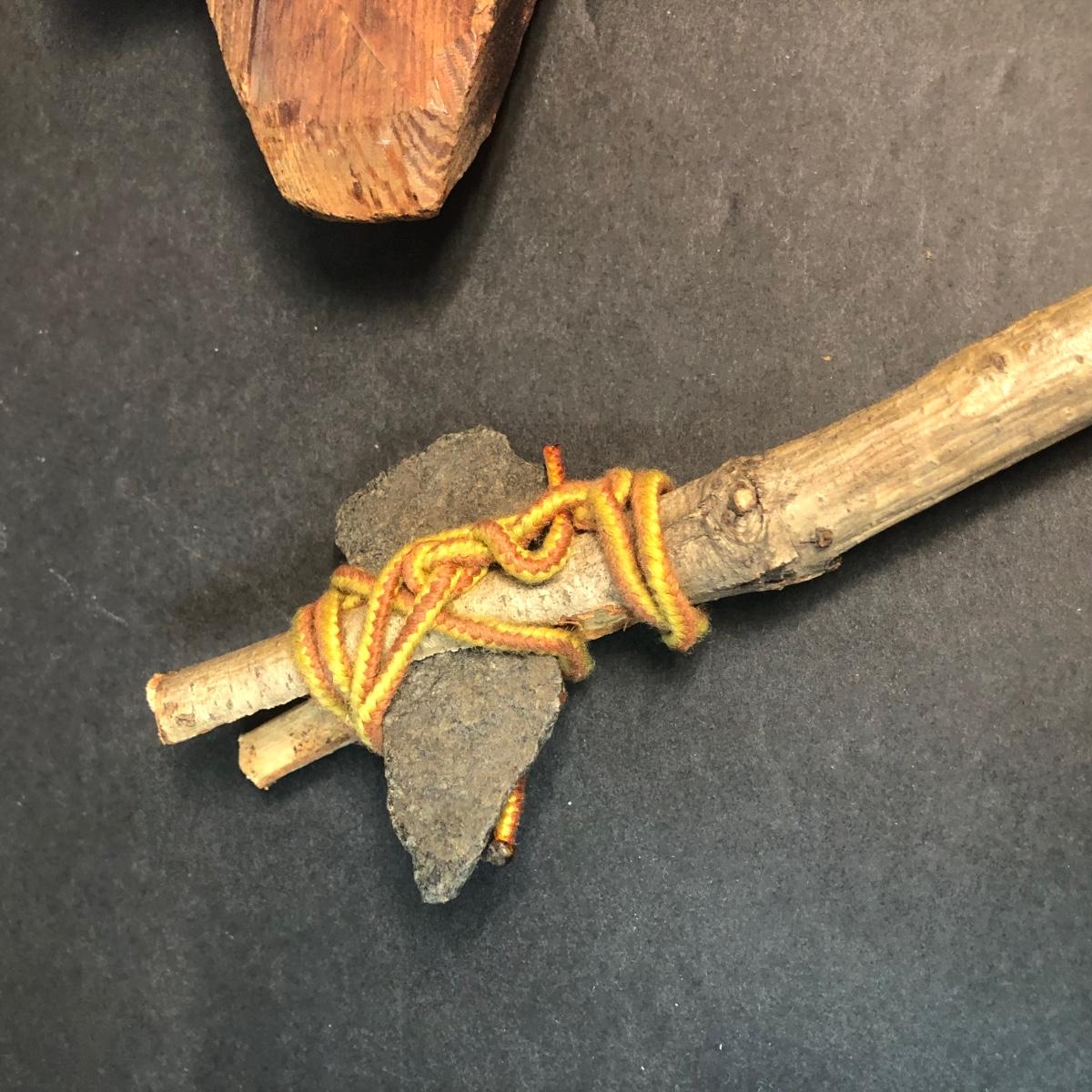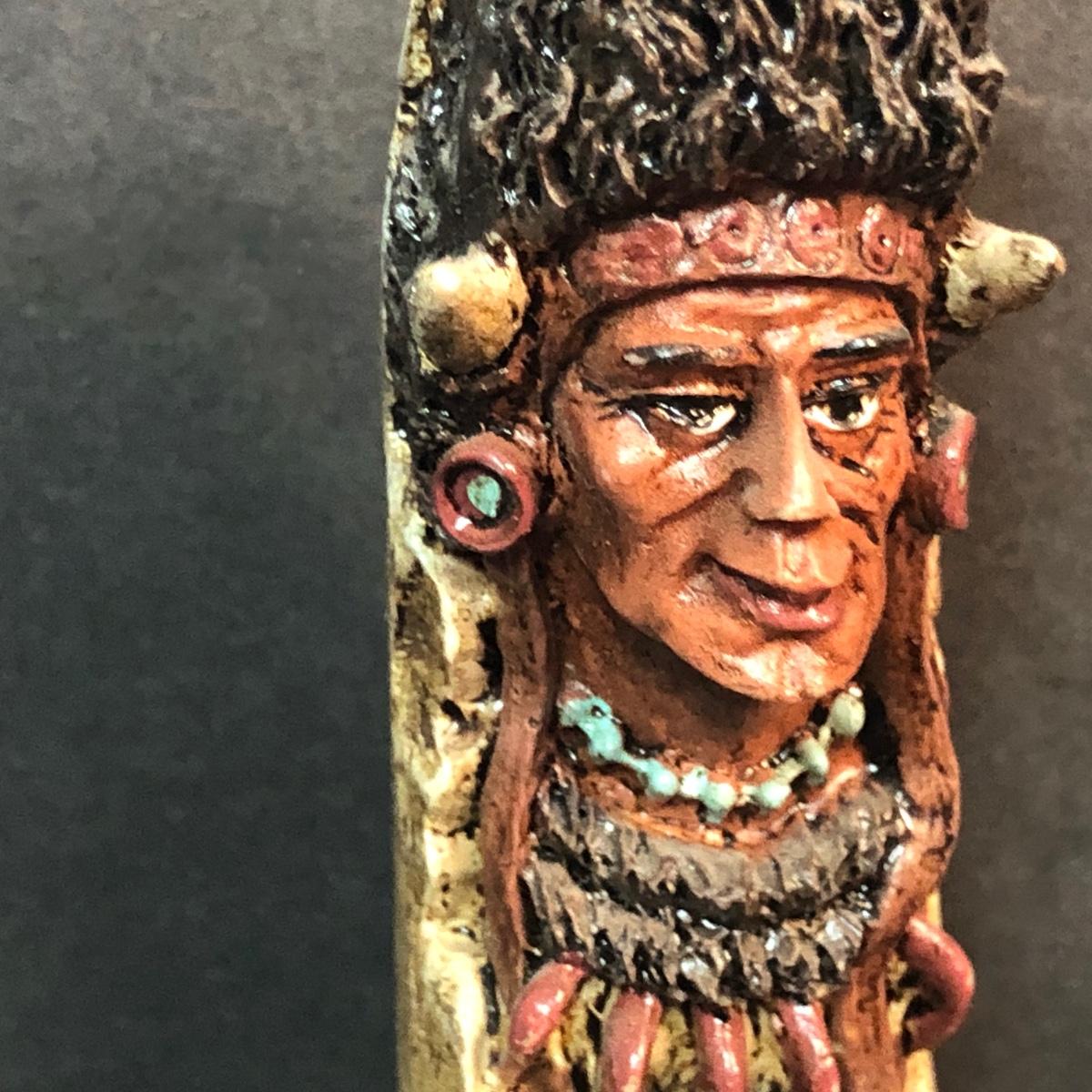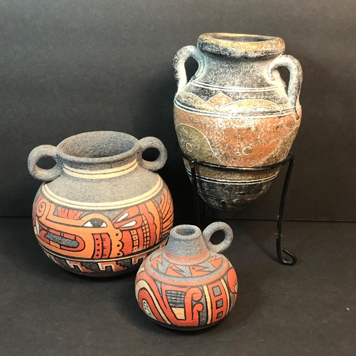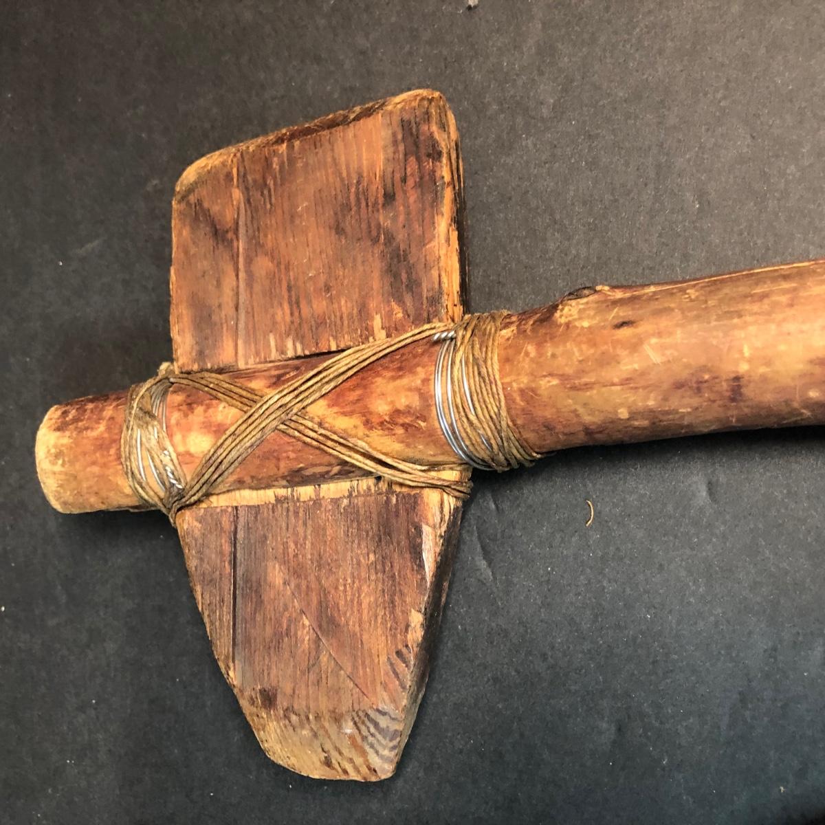 LOT 132M: Native American Plywood Painting, Pottery Pieces, Wooden Hatchet & Navajo Piece