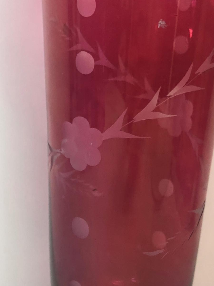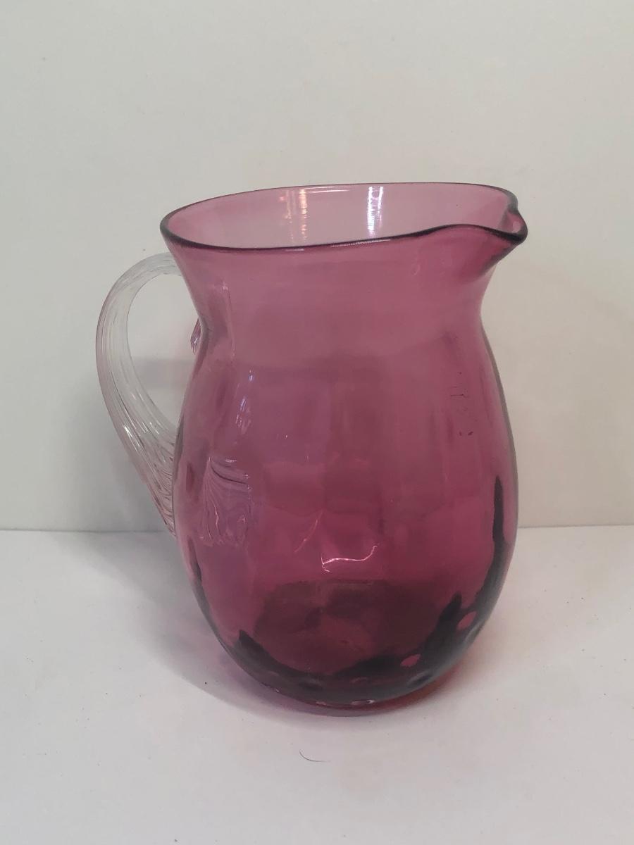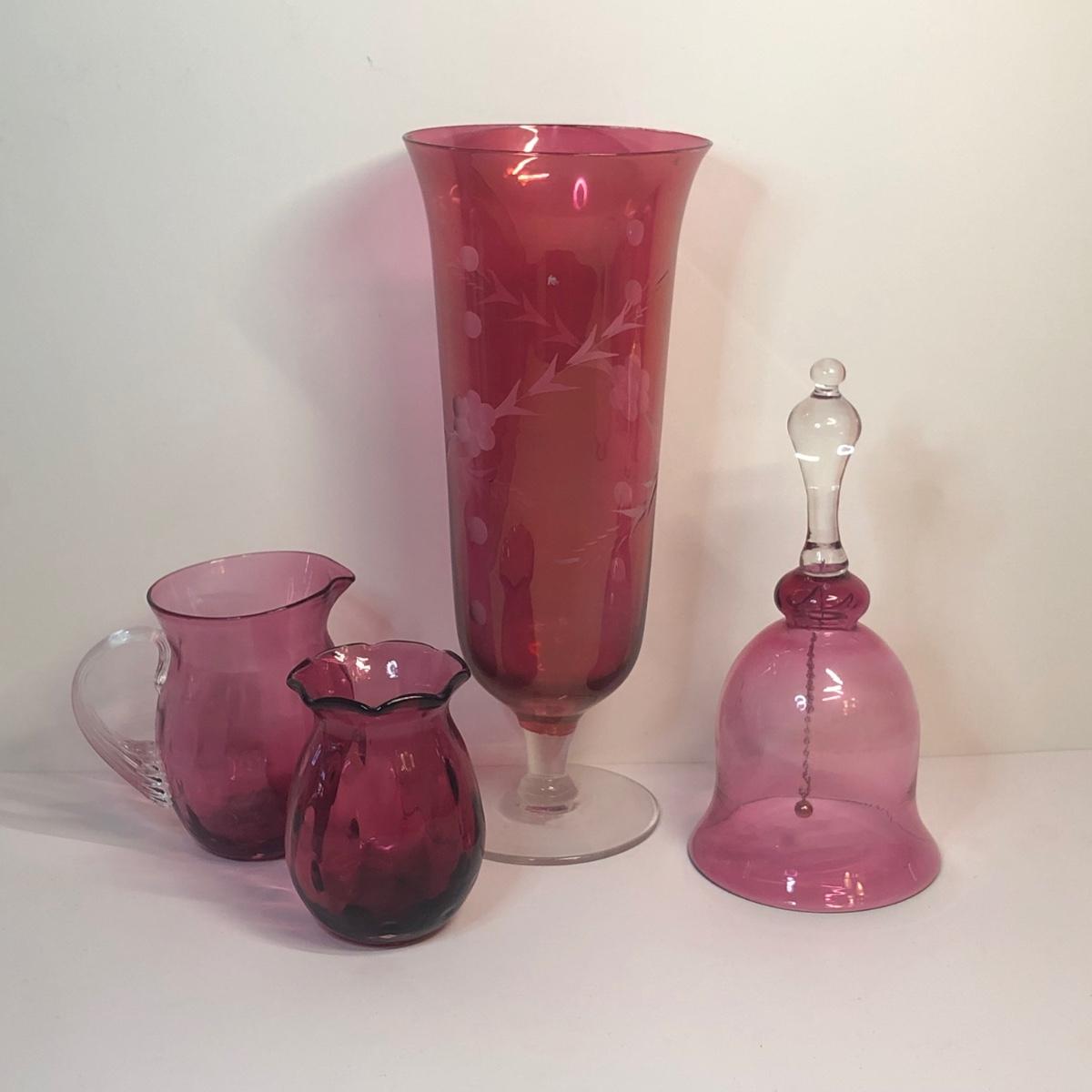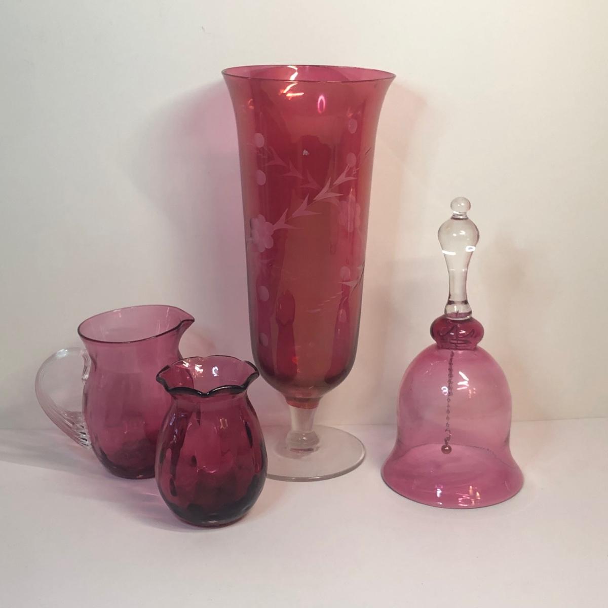 Includes four cranberry glass pieces.