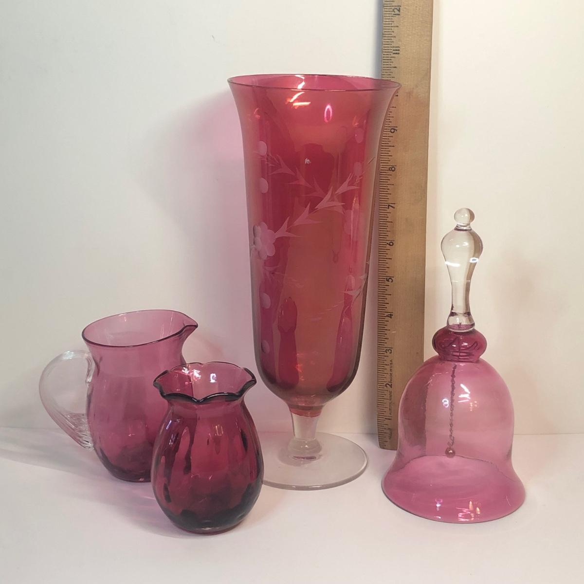 LOT 134M: Cranberry Glass Vase, Bell & More