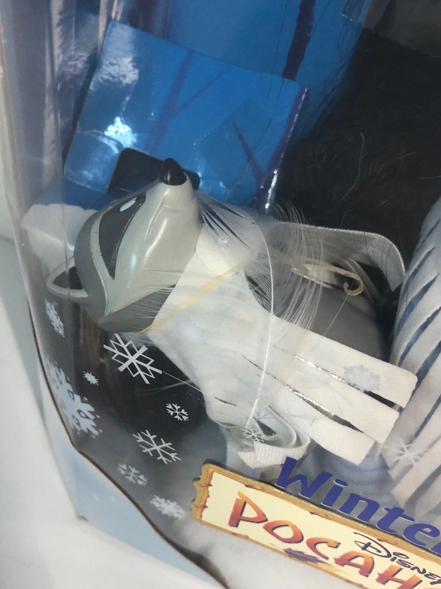 Based on Disney's version of Pocahontas. Includes doll in package, Meeko is still in the package but has fallen down to the bottom. Blanket has no noticable stains.