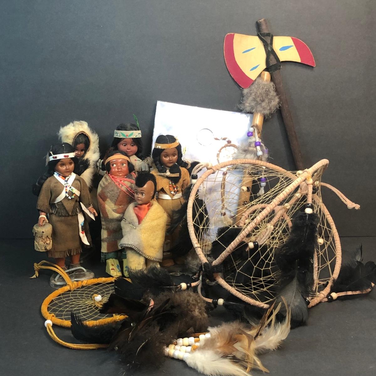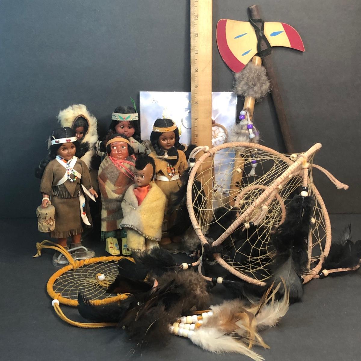 LOT 168M: Vintage Children Dolls, Dream Catchers, Toy Hatchet & Flute