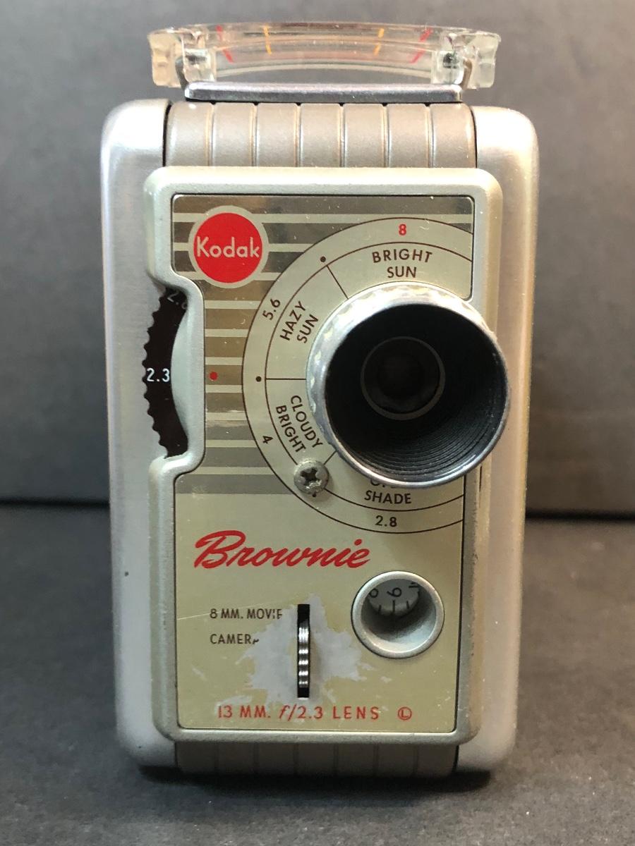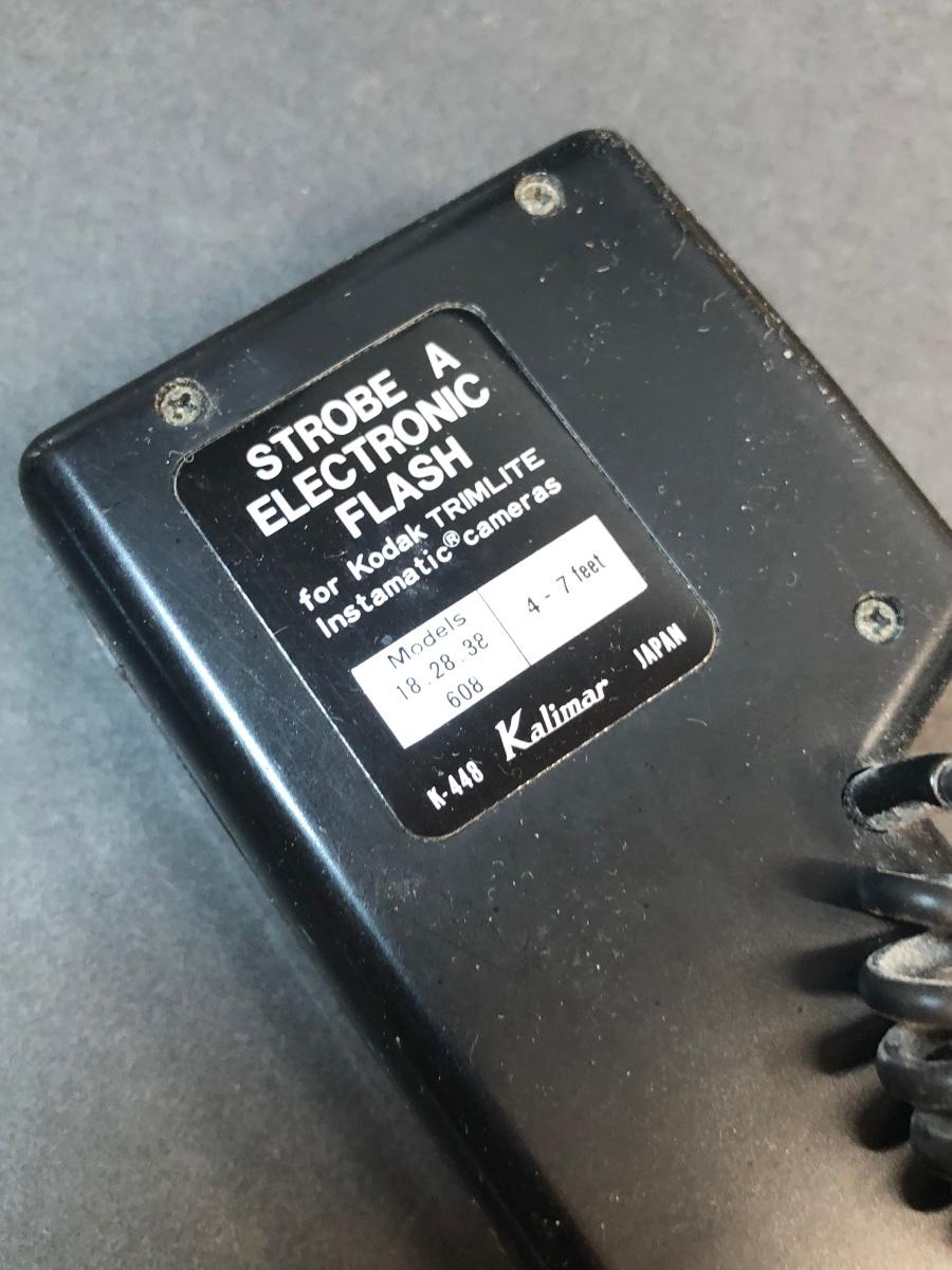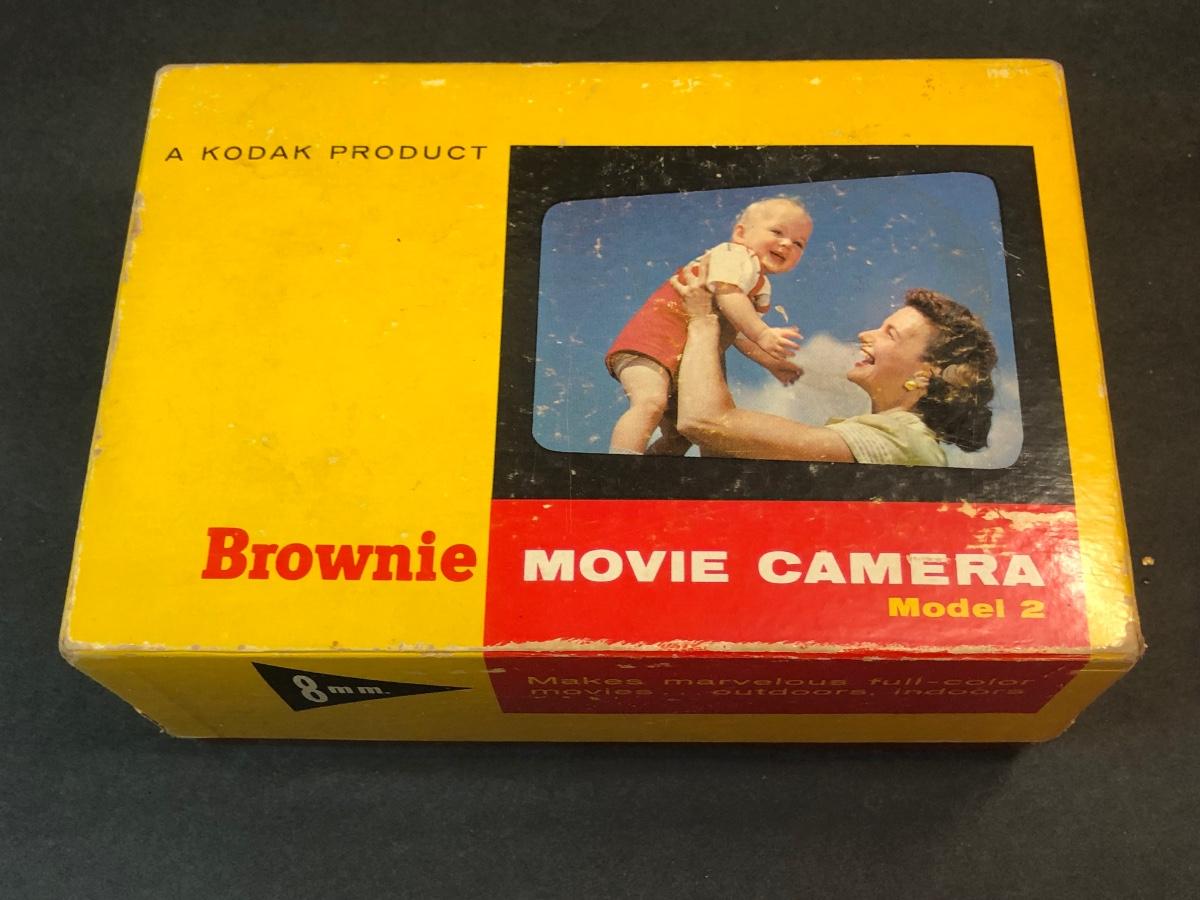 Includes Brownie movie camera in box, a handle for it and a Strove A Electronic Flash for Kodak Trimlite instamatic cameras. Also includes replacement flashes for the Flip Flash II.