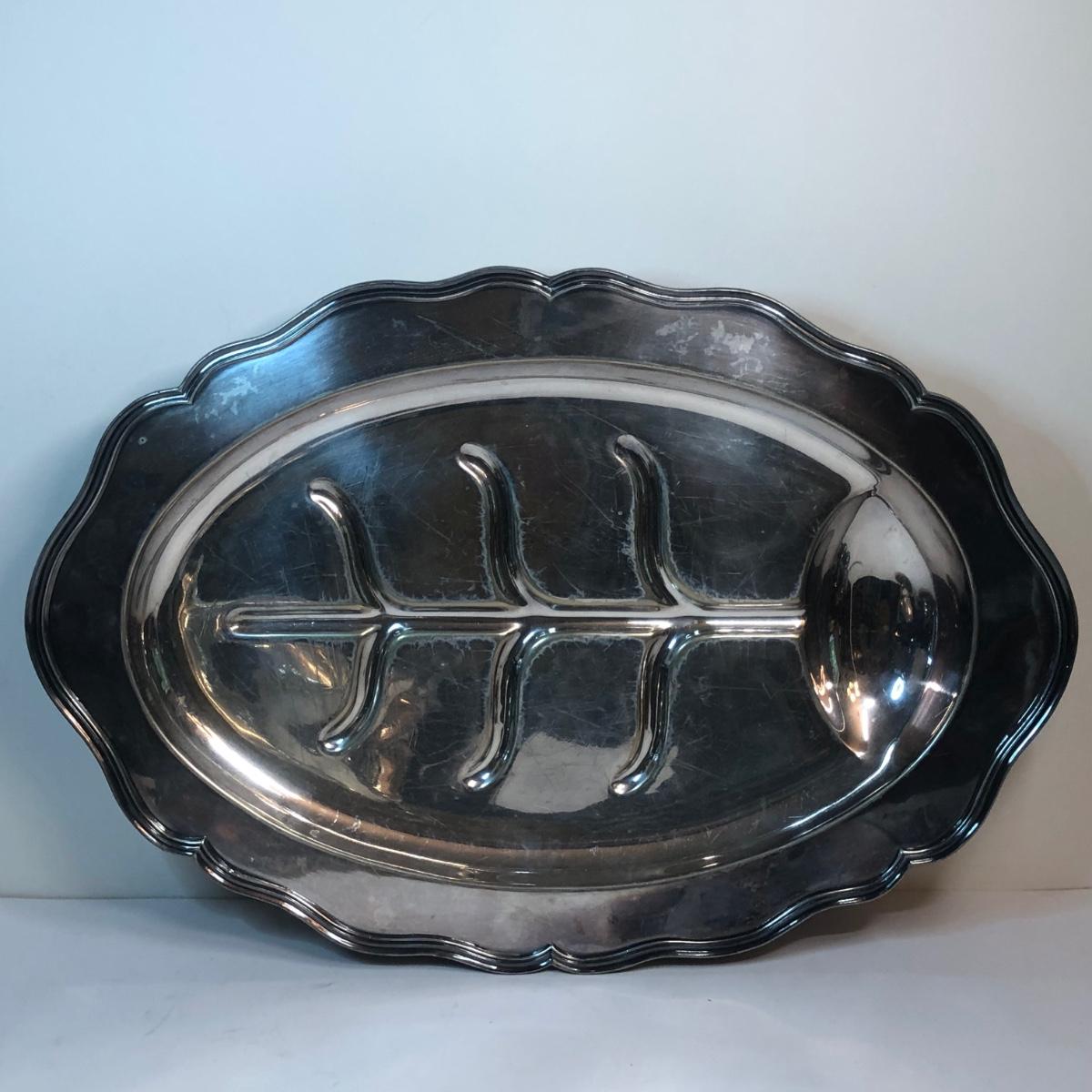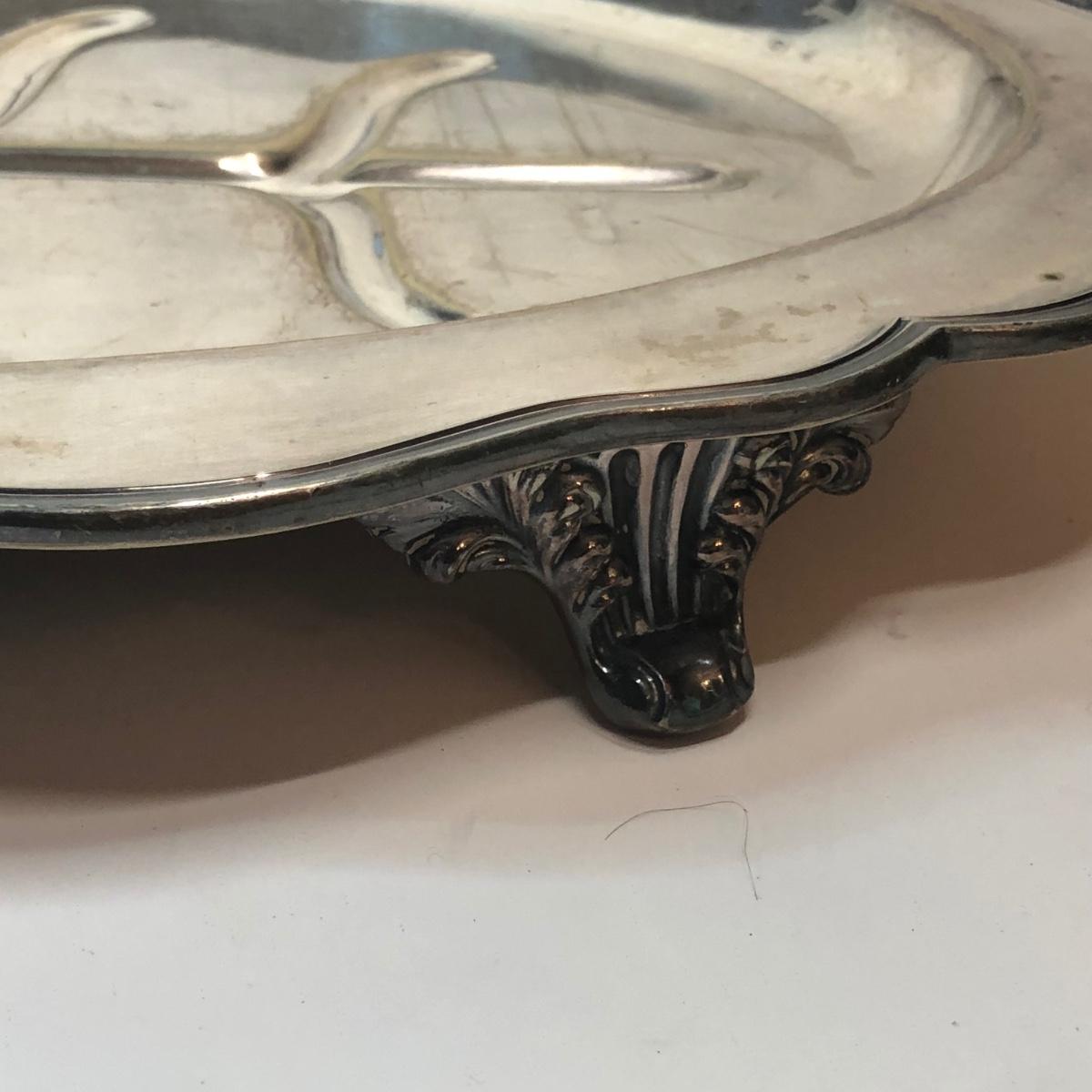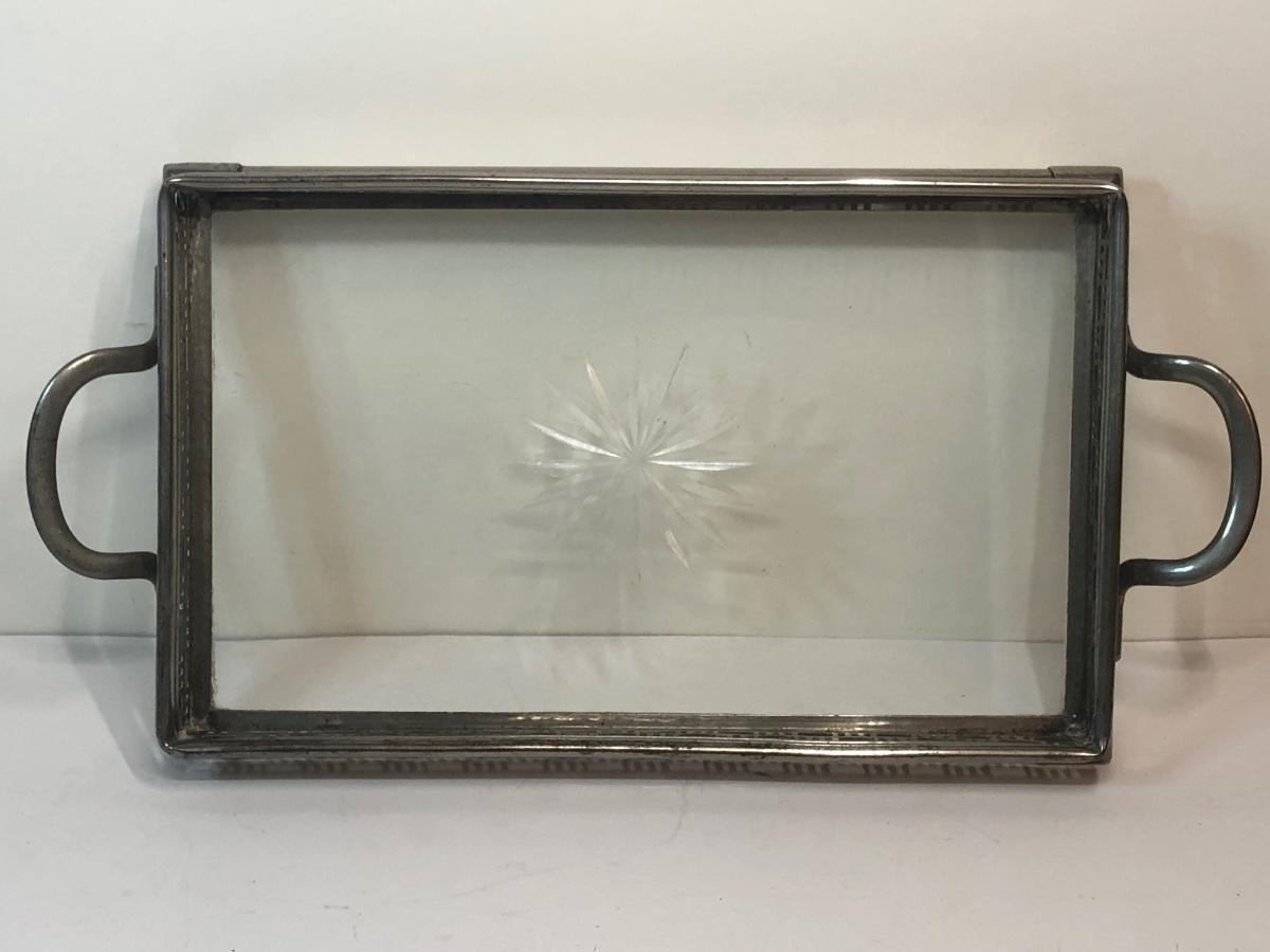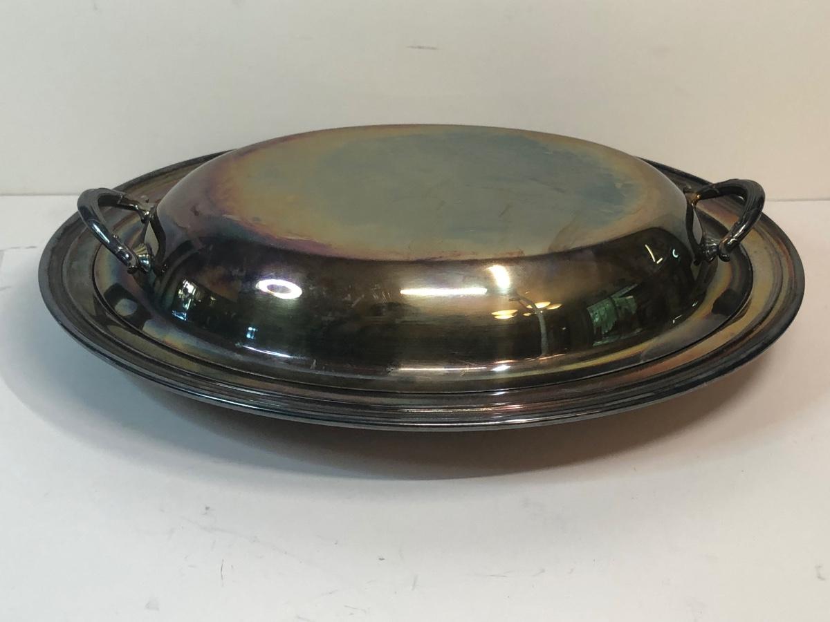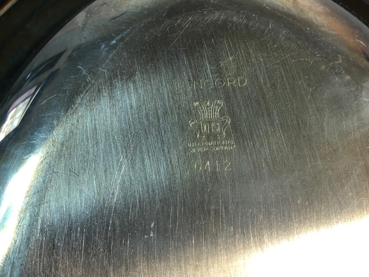 LOT 181M: Silverplate Serving Collection - Sheffield Meat Tray, Towle Candlesticks, Glass Bottom Tray, Gravy Boat w/ Dish, Lidded Concord Serving Dish