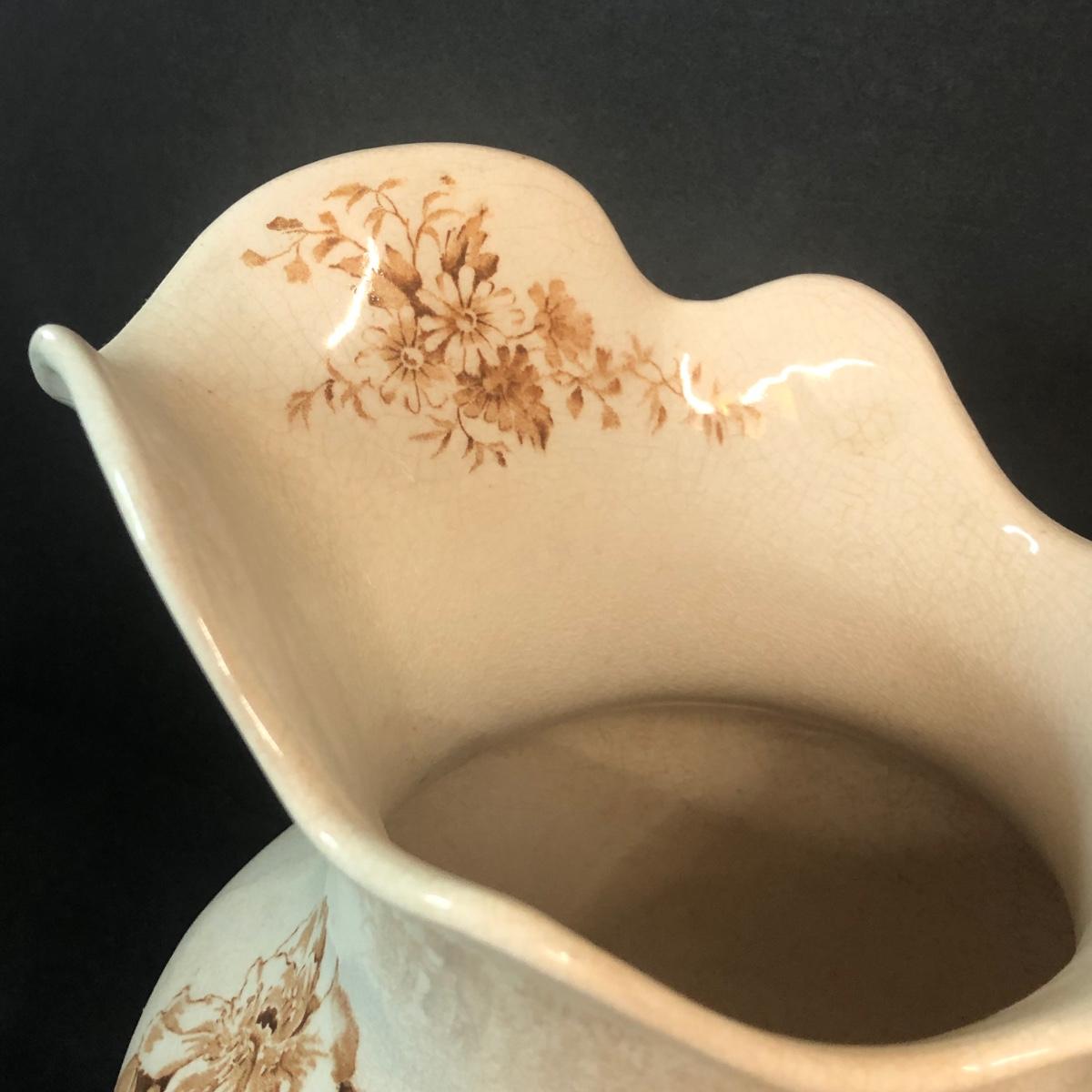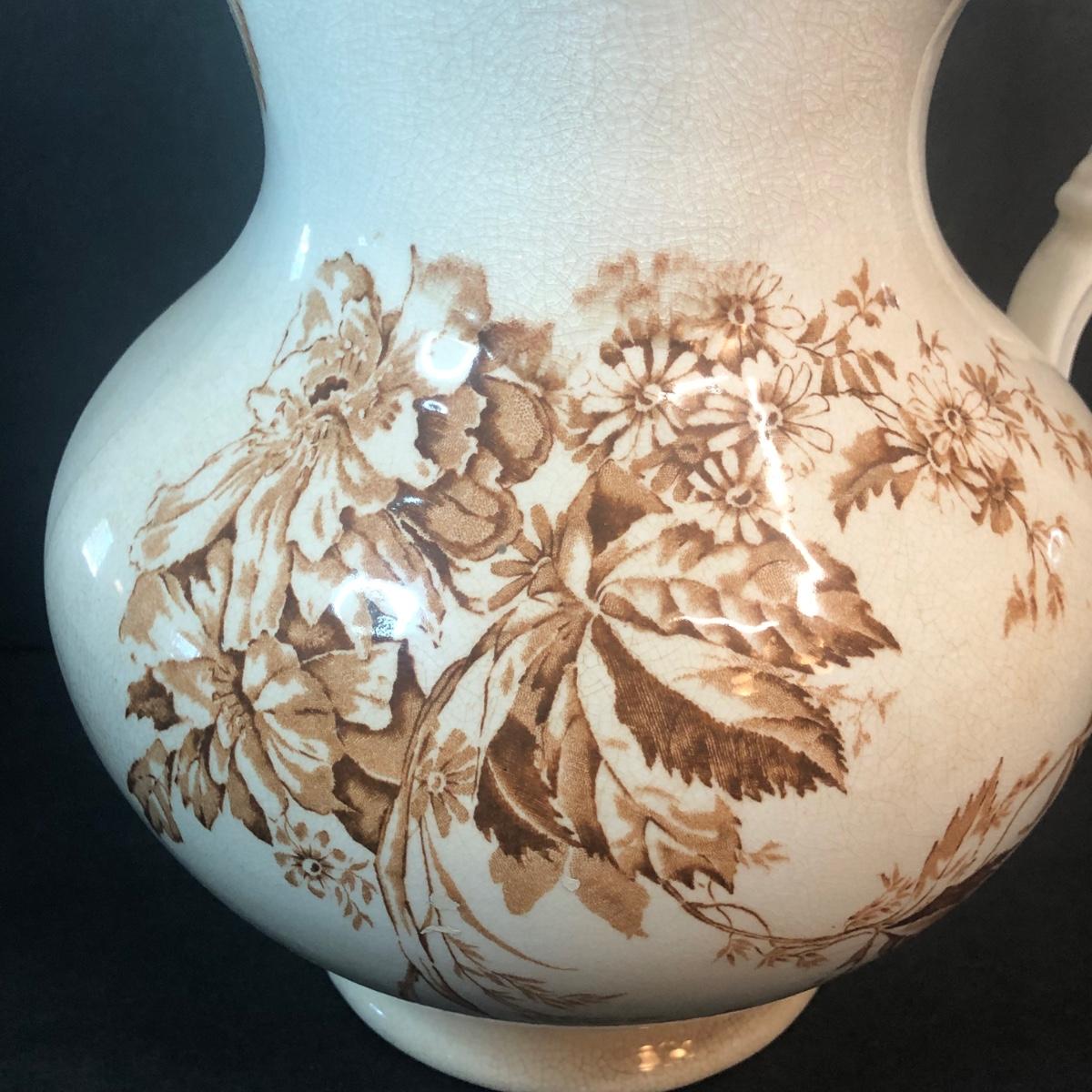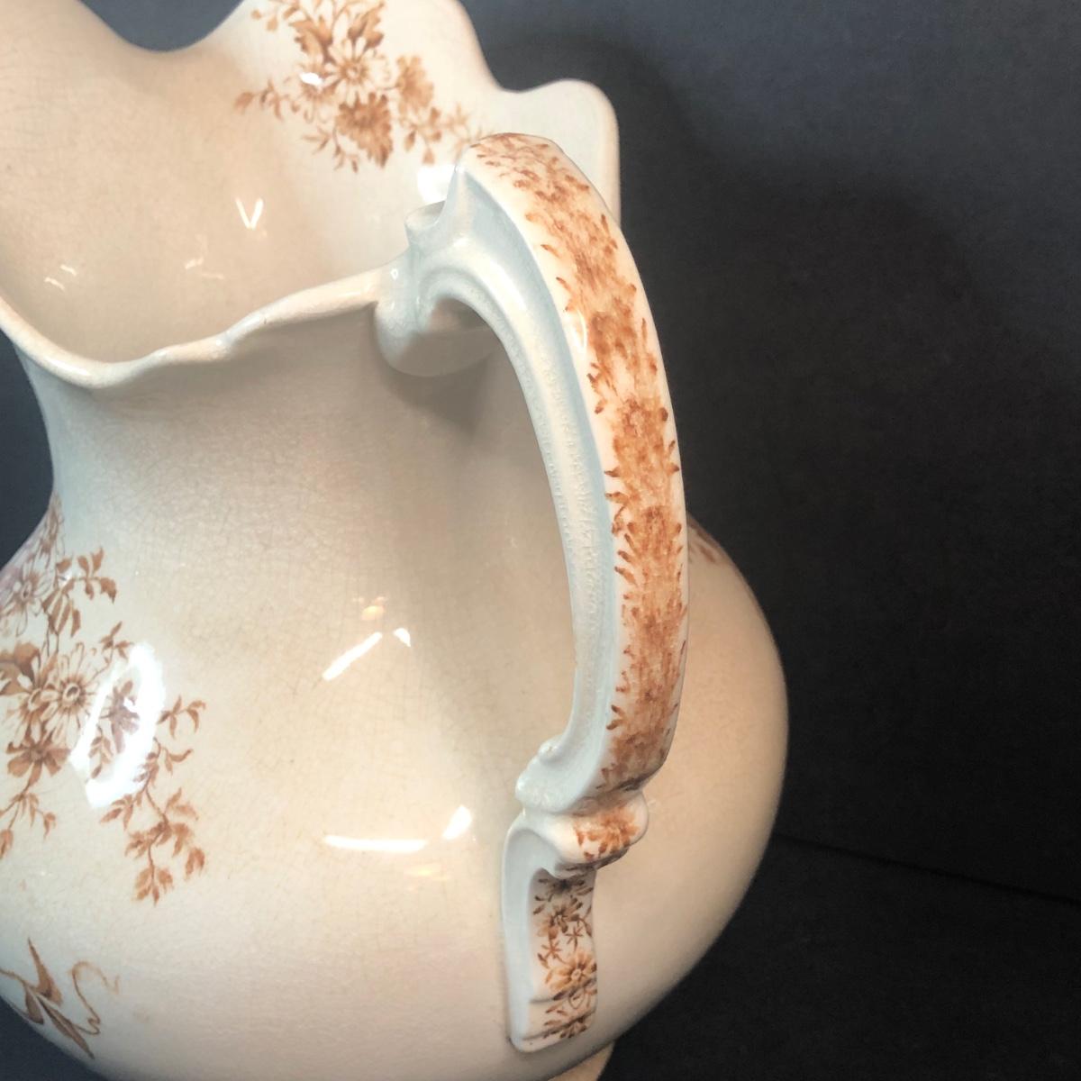LOT 187M: Burleigh Ironstone Pitcher, Brown Pottery Pitcher & Semi-Vitreous Porcelain Chamber Pot