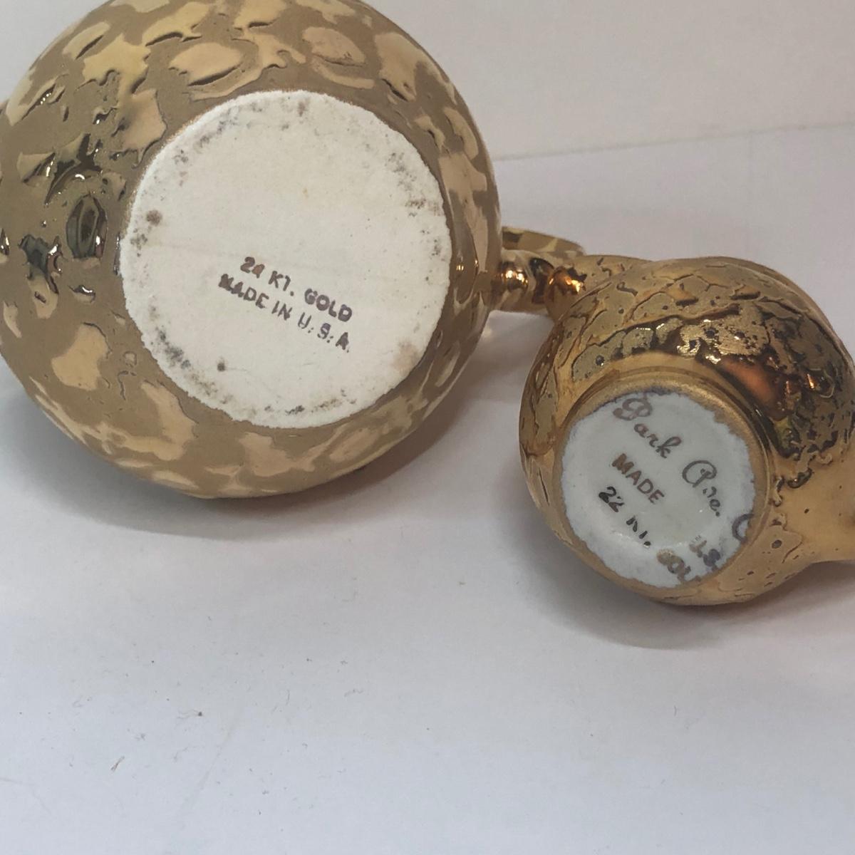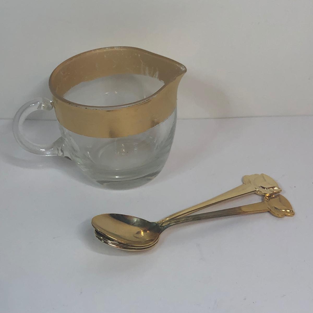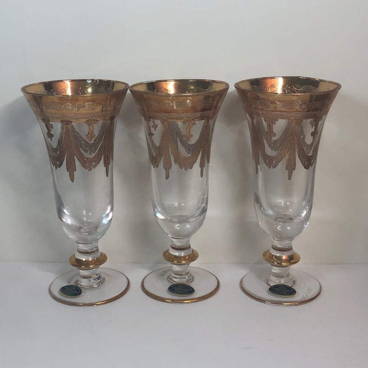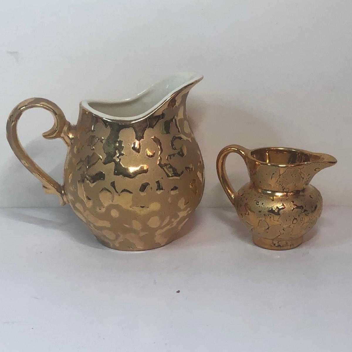 LOT 189M: 22KT & 24KT Gold Decorated Miniature Pitchers, 24Kt Gold Hand Decorated Cristallerie Italiane Glasses, Gold Rimmed Plates & More