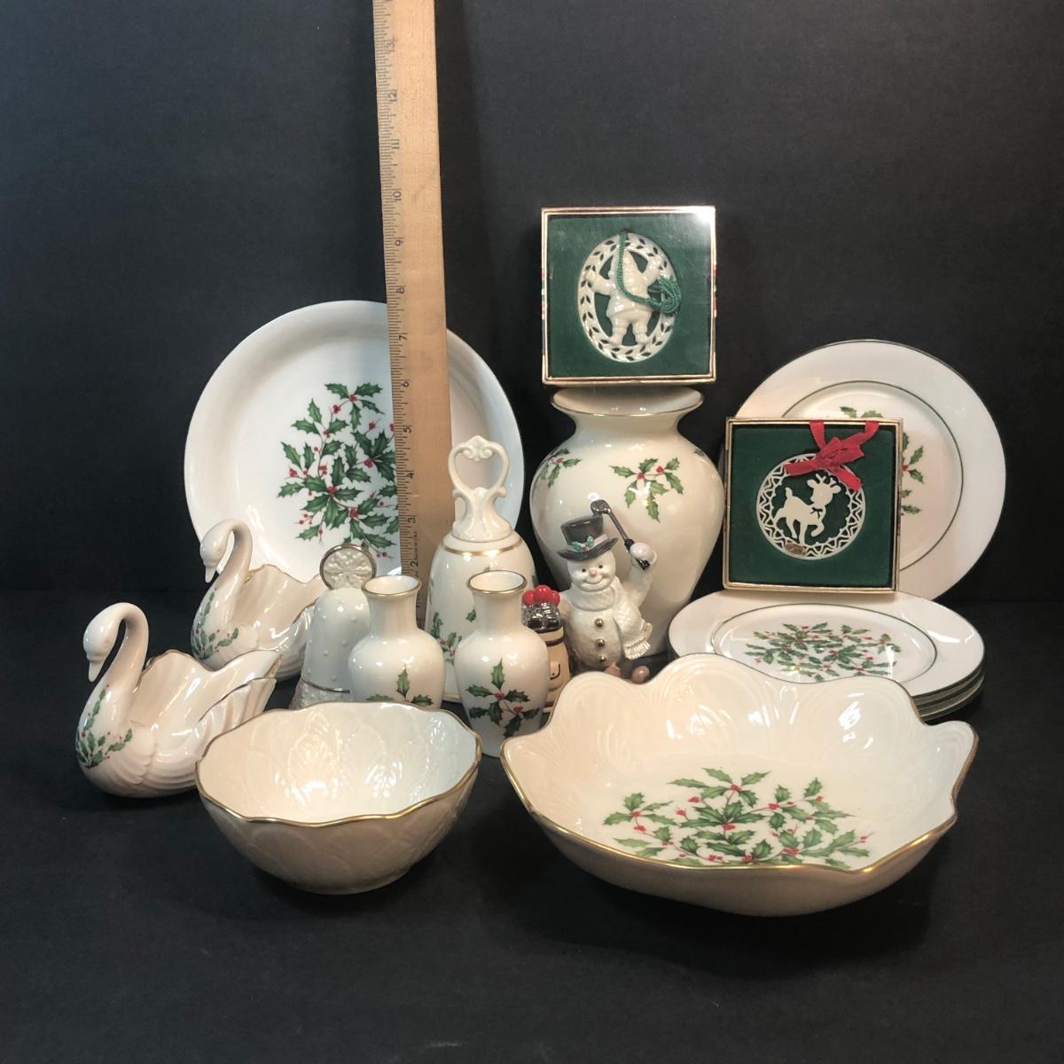 LOT 191M: Lenox Christmas Collection - Vases, Ornaments, Swans, Bowls & More