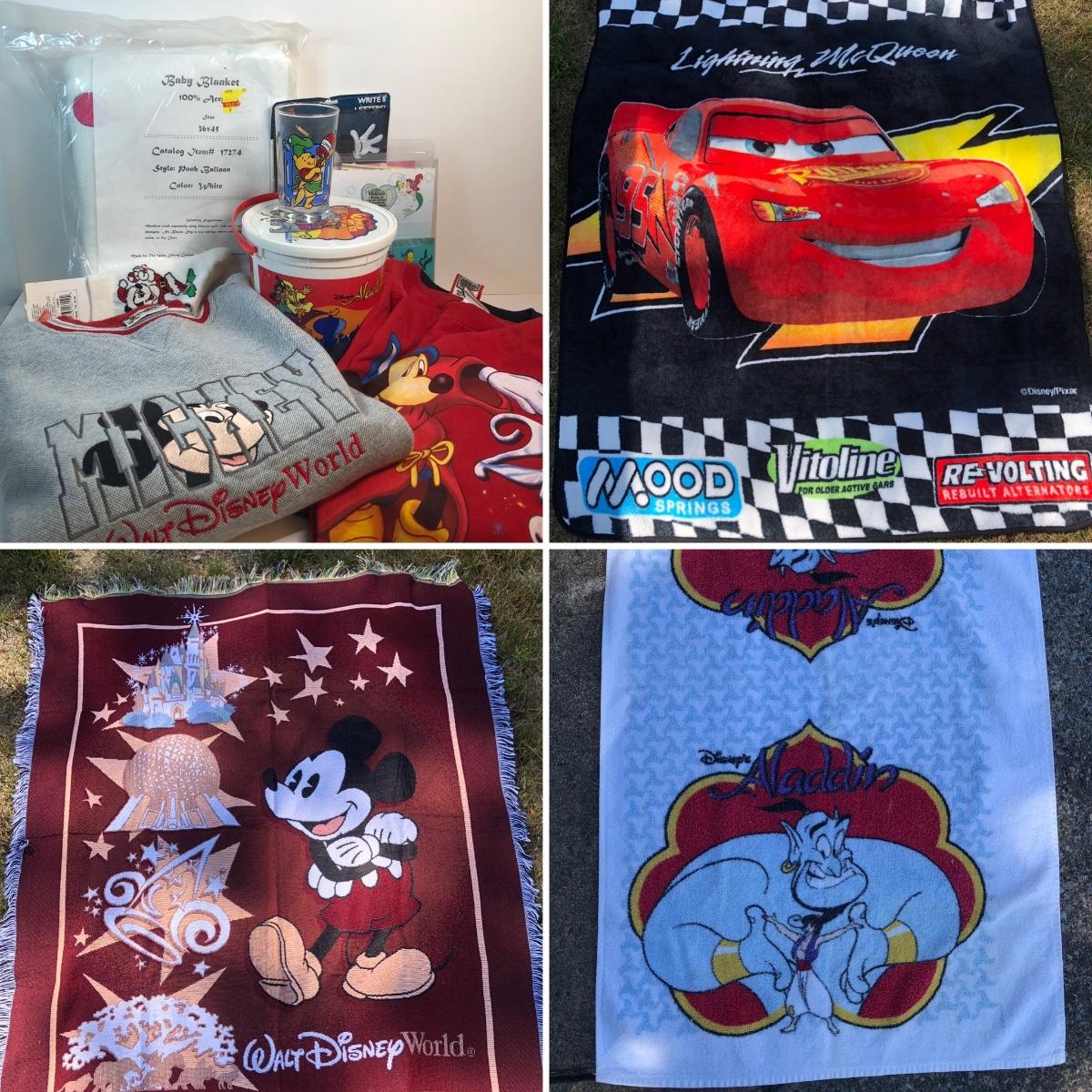 LOT 197M: Disney Collection - WDW Blanket, Aladdin Towel, Cars Bedding, Pooh Baby Blanket, Shirts & More