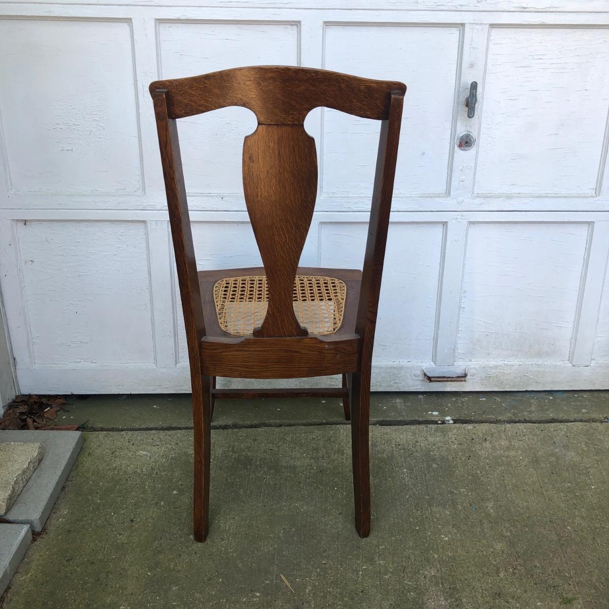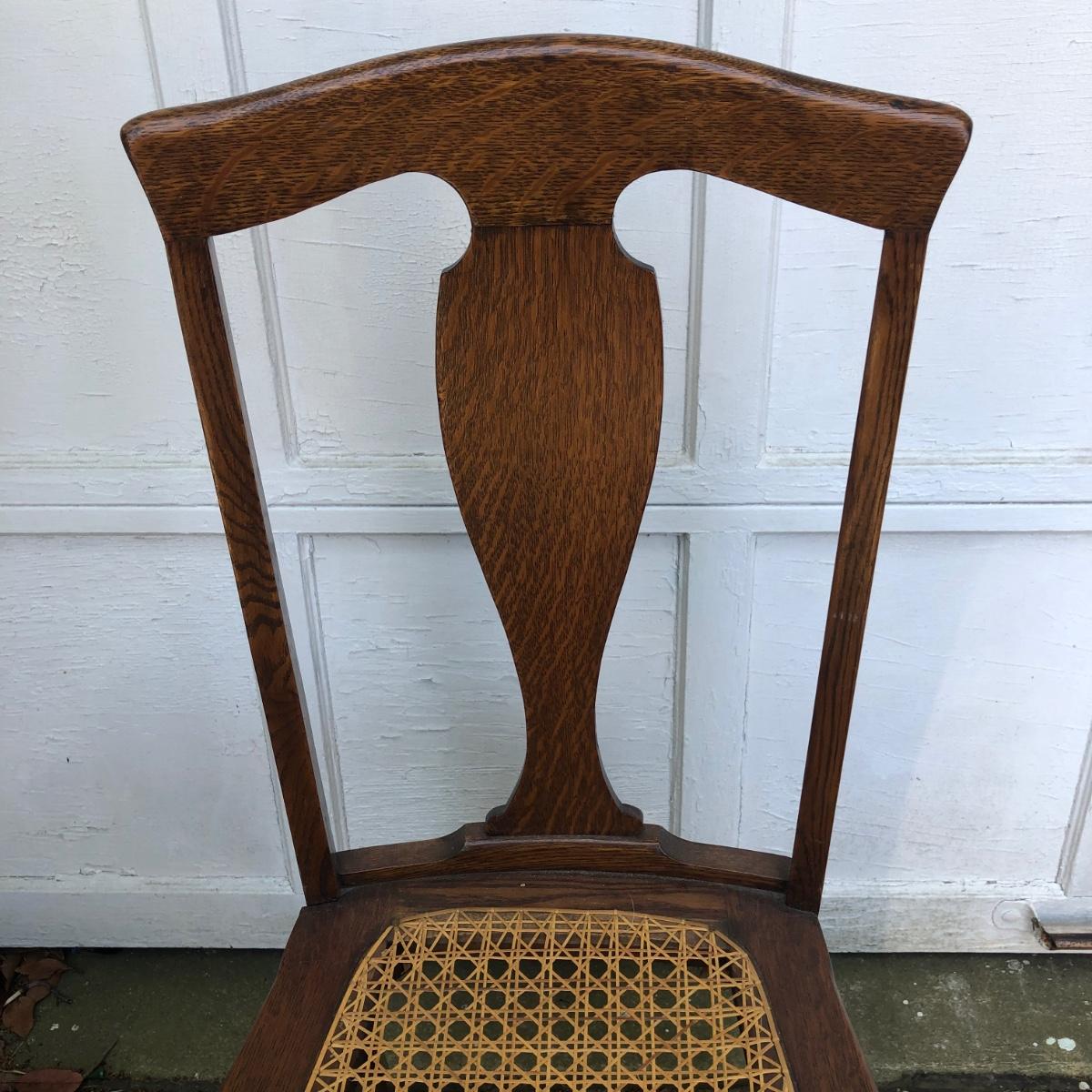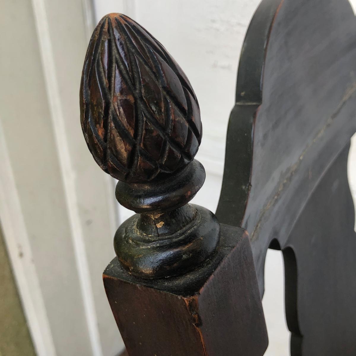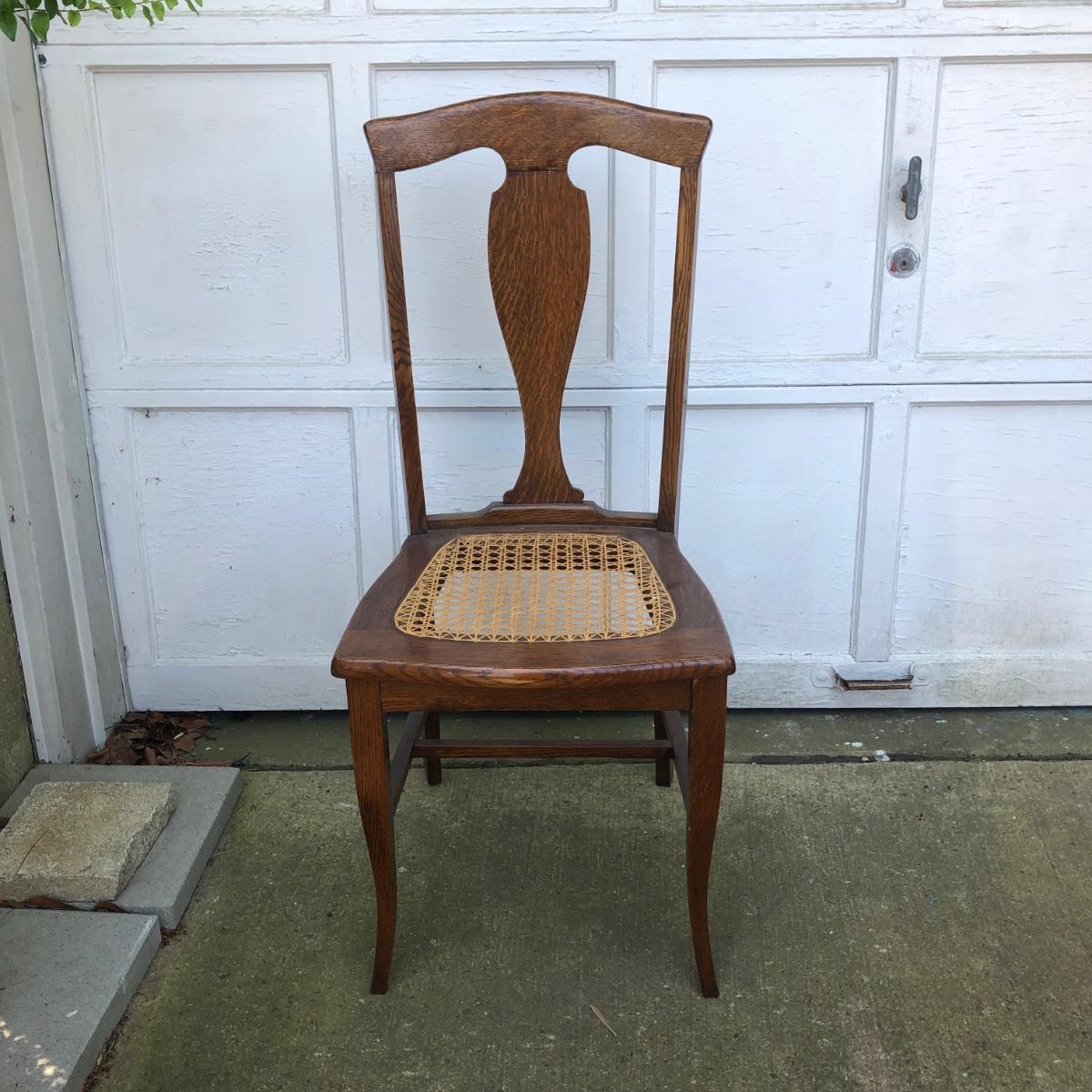 Darker chair has condition issues in the seat and a loose knob on the top. Measures 17 x 15 x 34. Other chair measures 16 x 16 x 37 inches.