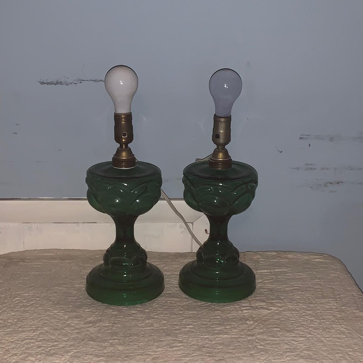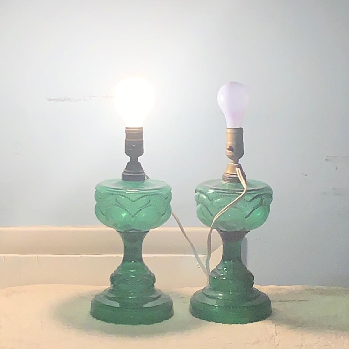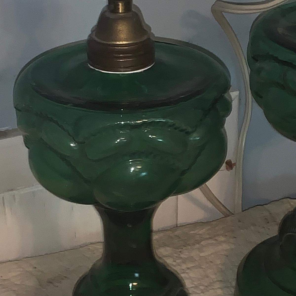 LOT 226R: Vintage Green Electrified Oil Lamps