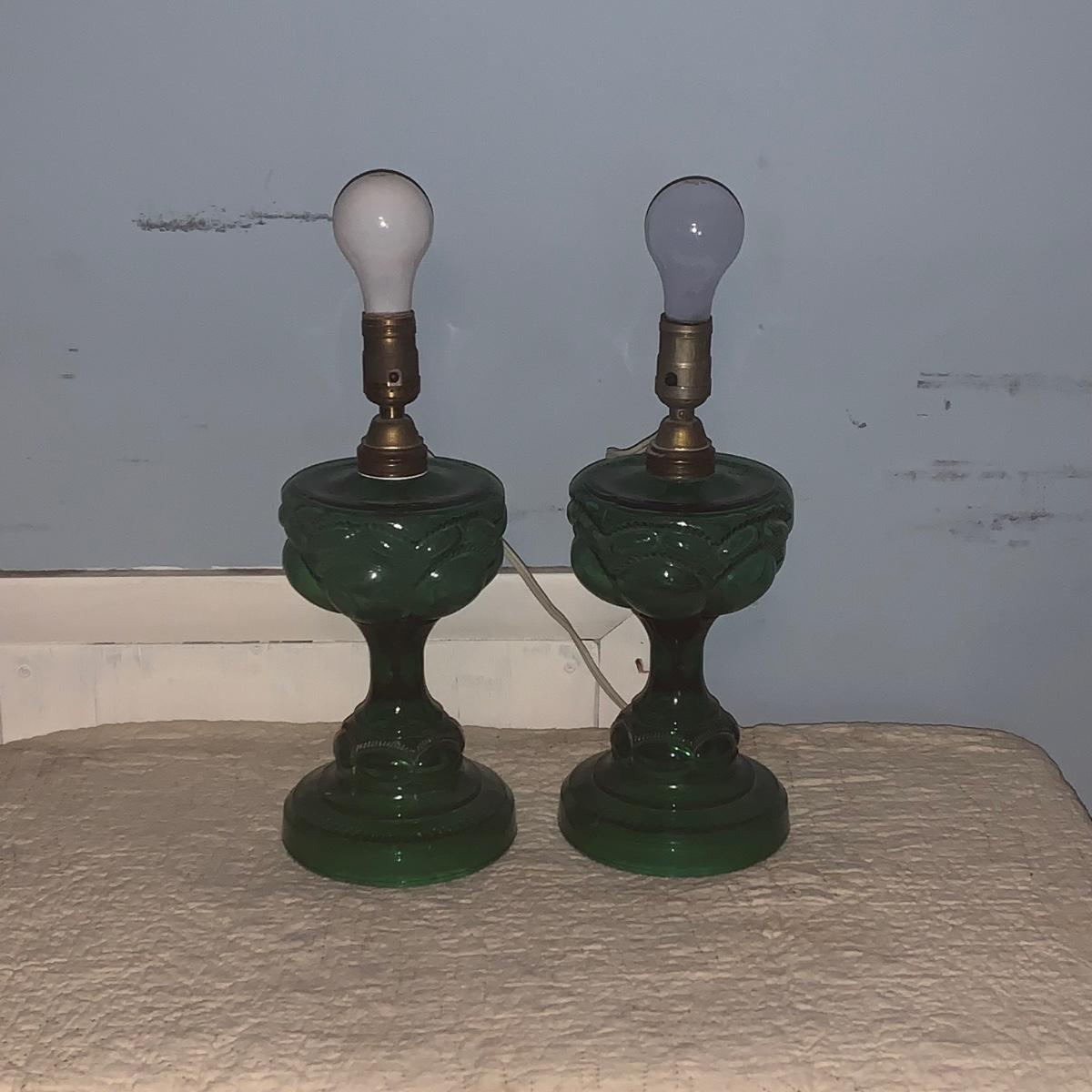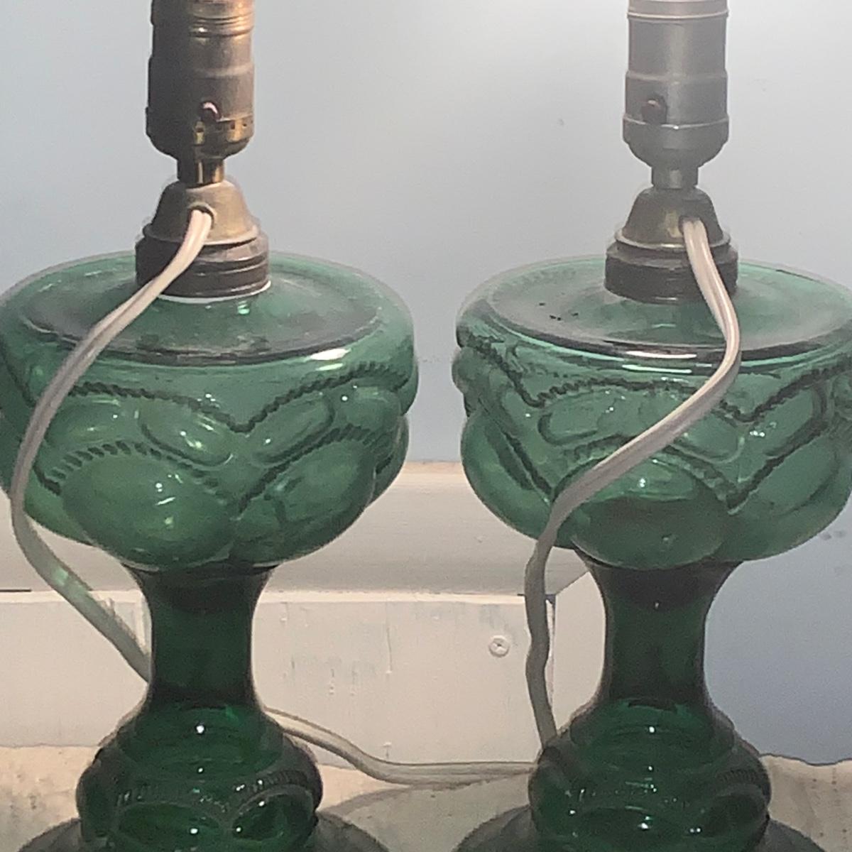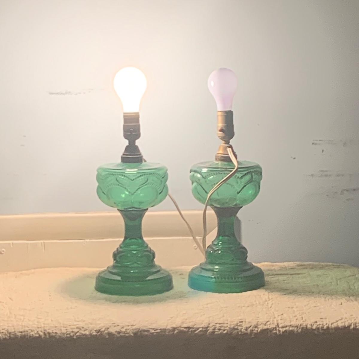LOT 226R: Vintage Green Electrified Oil Lamps