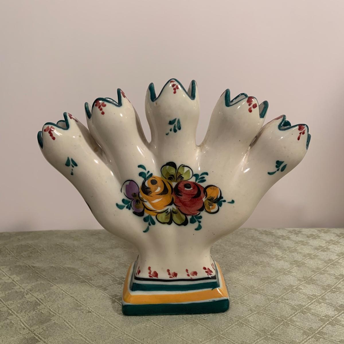 LOT 238R:  Stangl Pottery Town And Country Blue Sponge Ware, EPL Alco Baca Hand Painted Finger Vase, Taste Seller Italian Italy Hand Painted Pitcher Pattern, Pescado Hand Painted Pitcher & More
