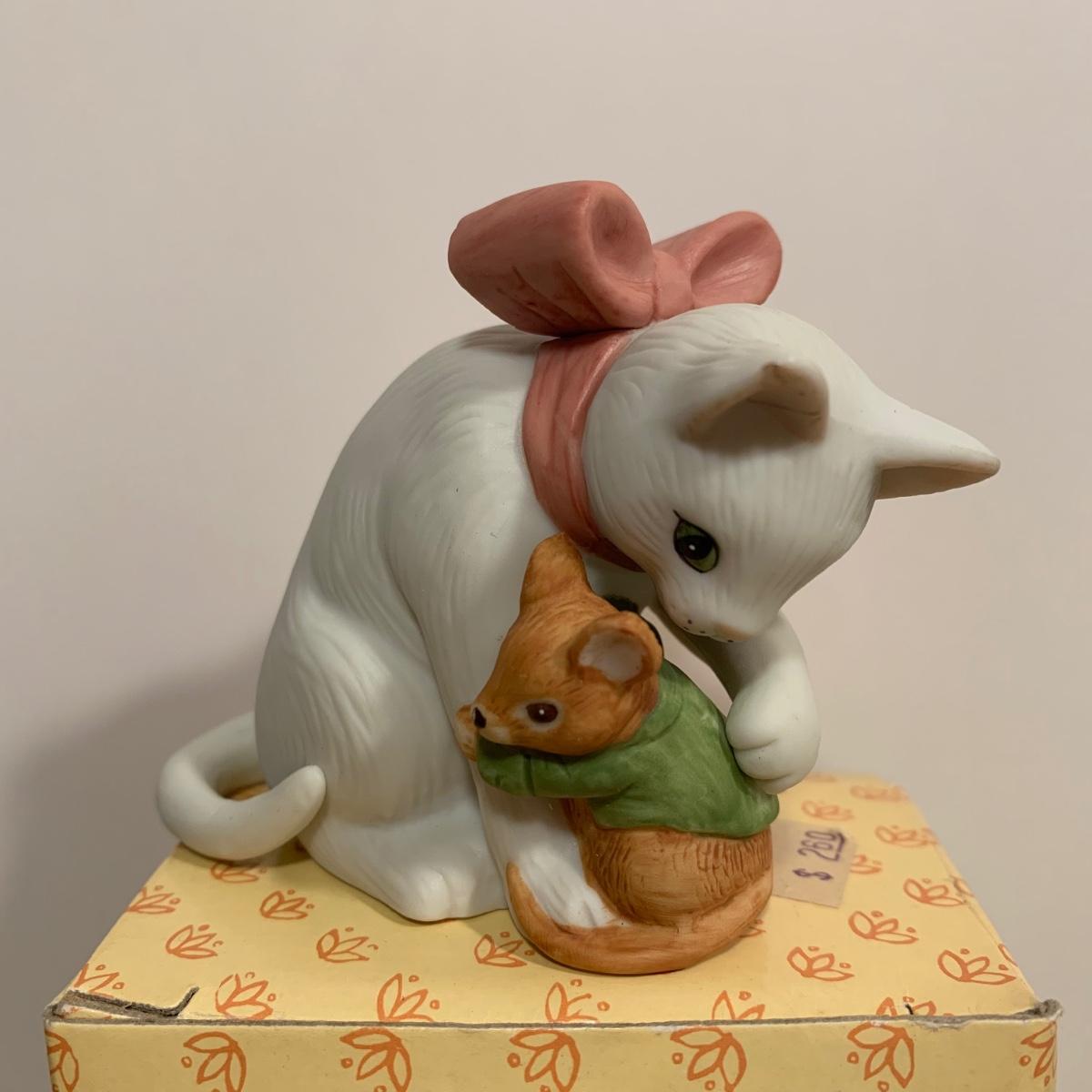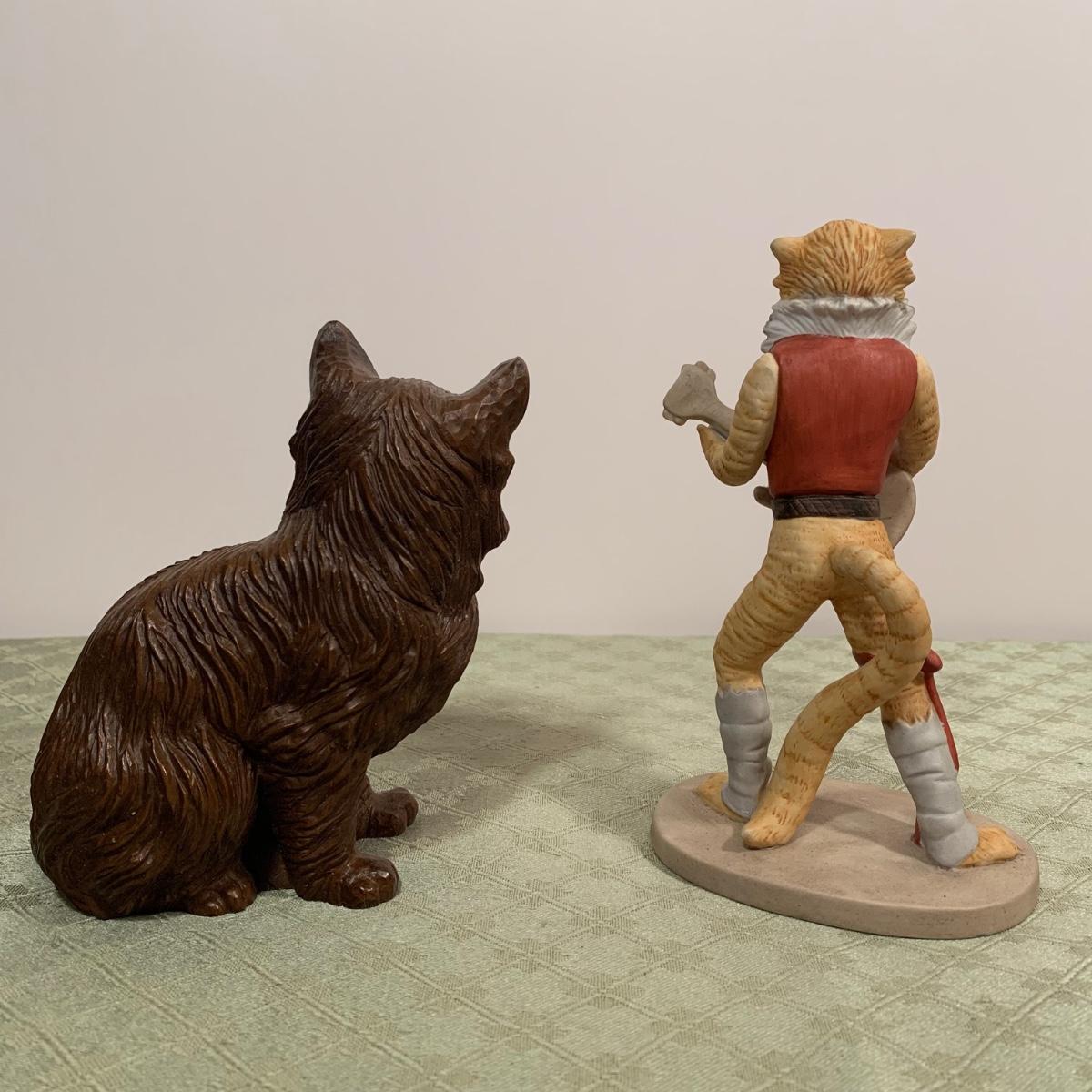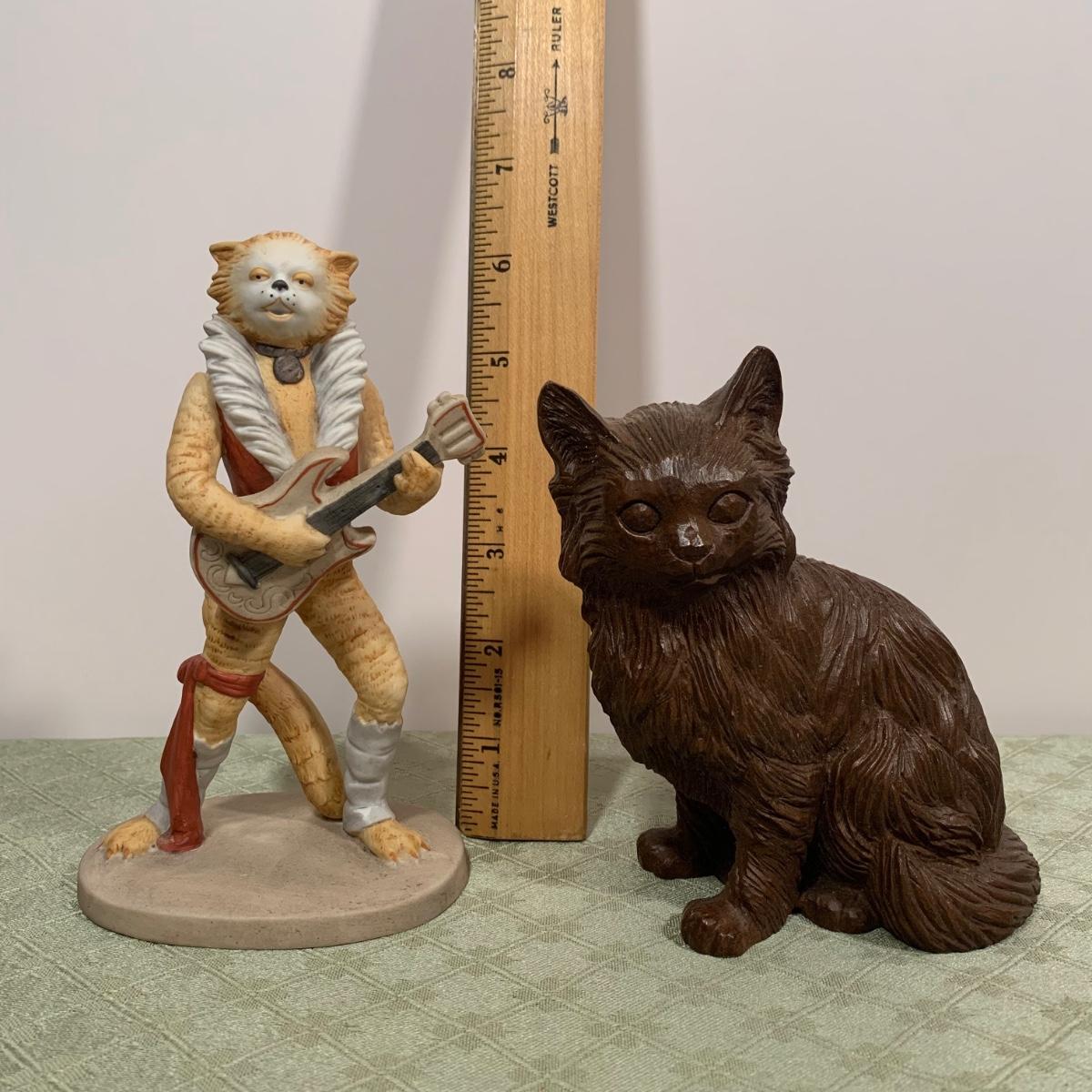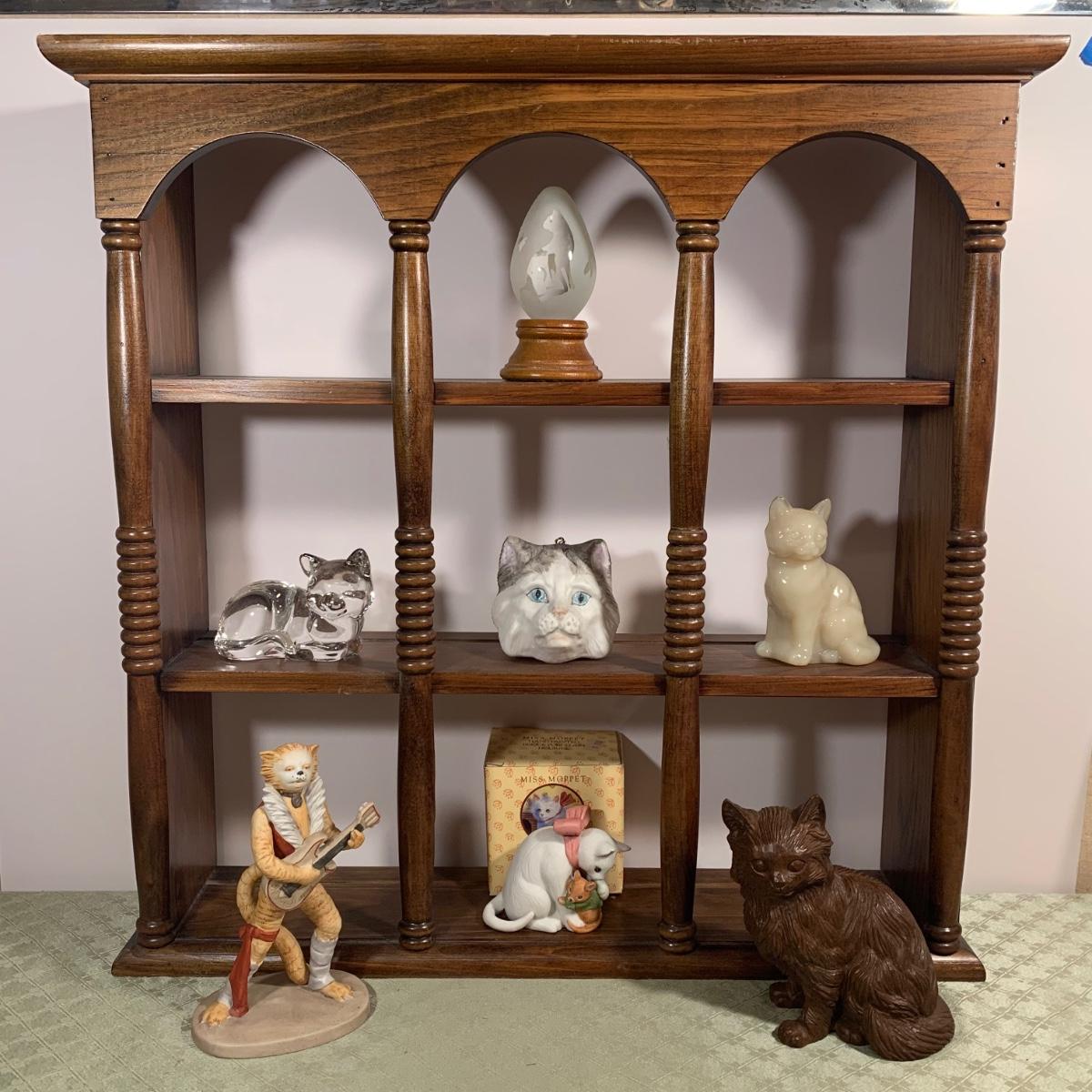 LOT 239R: Wooden Display Shelves, Rum Tum Tugger Cat, Glass Cat, Miss Moppet & Others