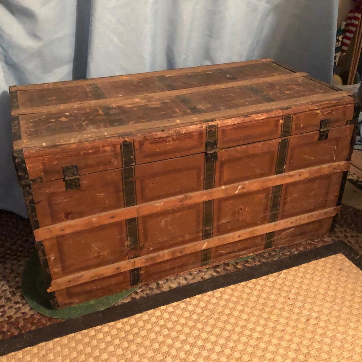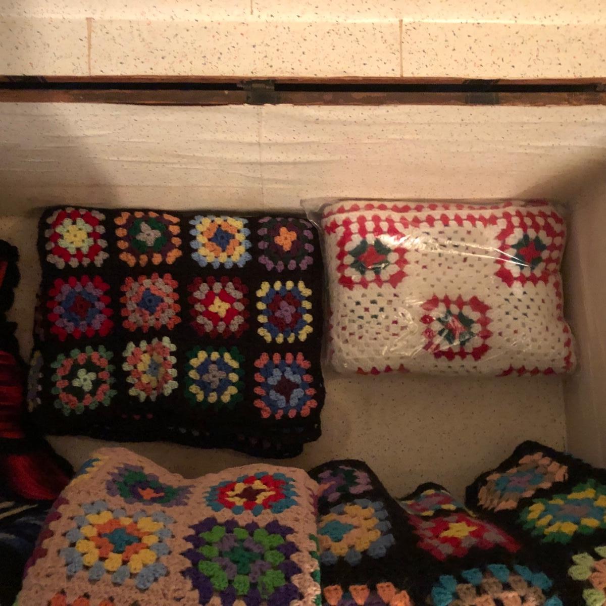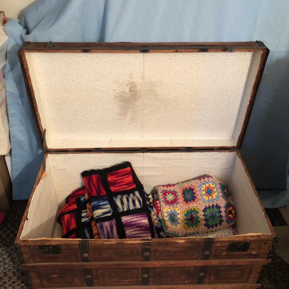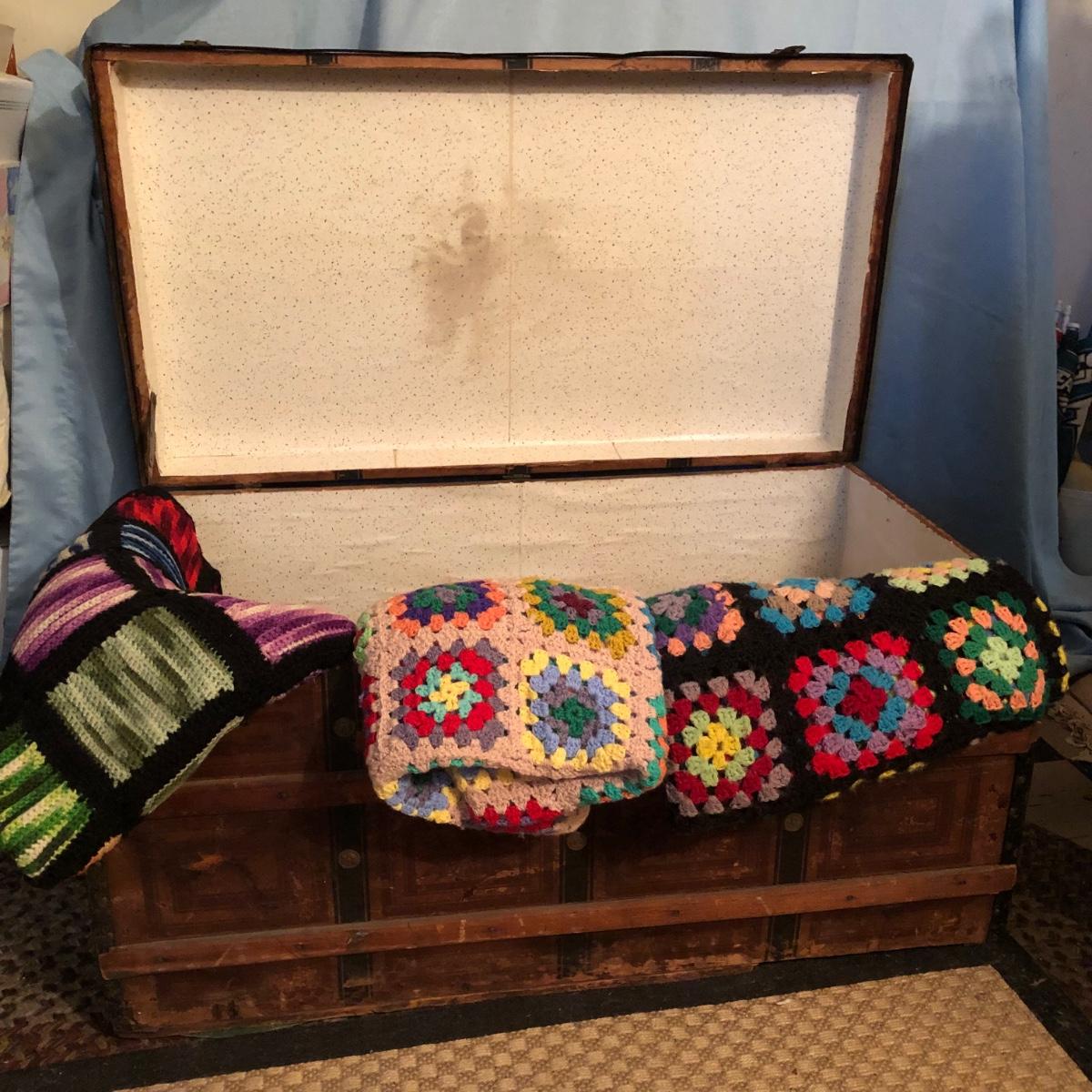 LOT 251M: Vintage Wooden Chest w/ Afghans