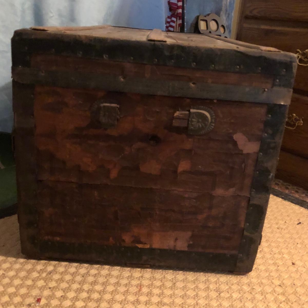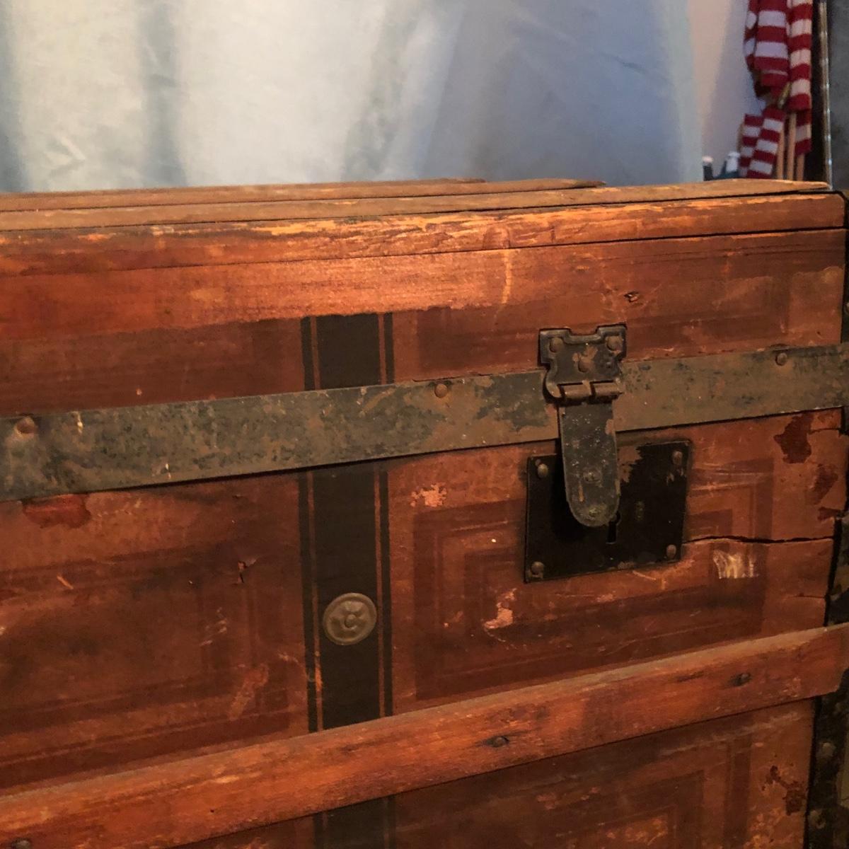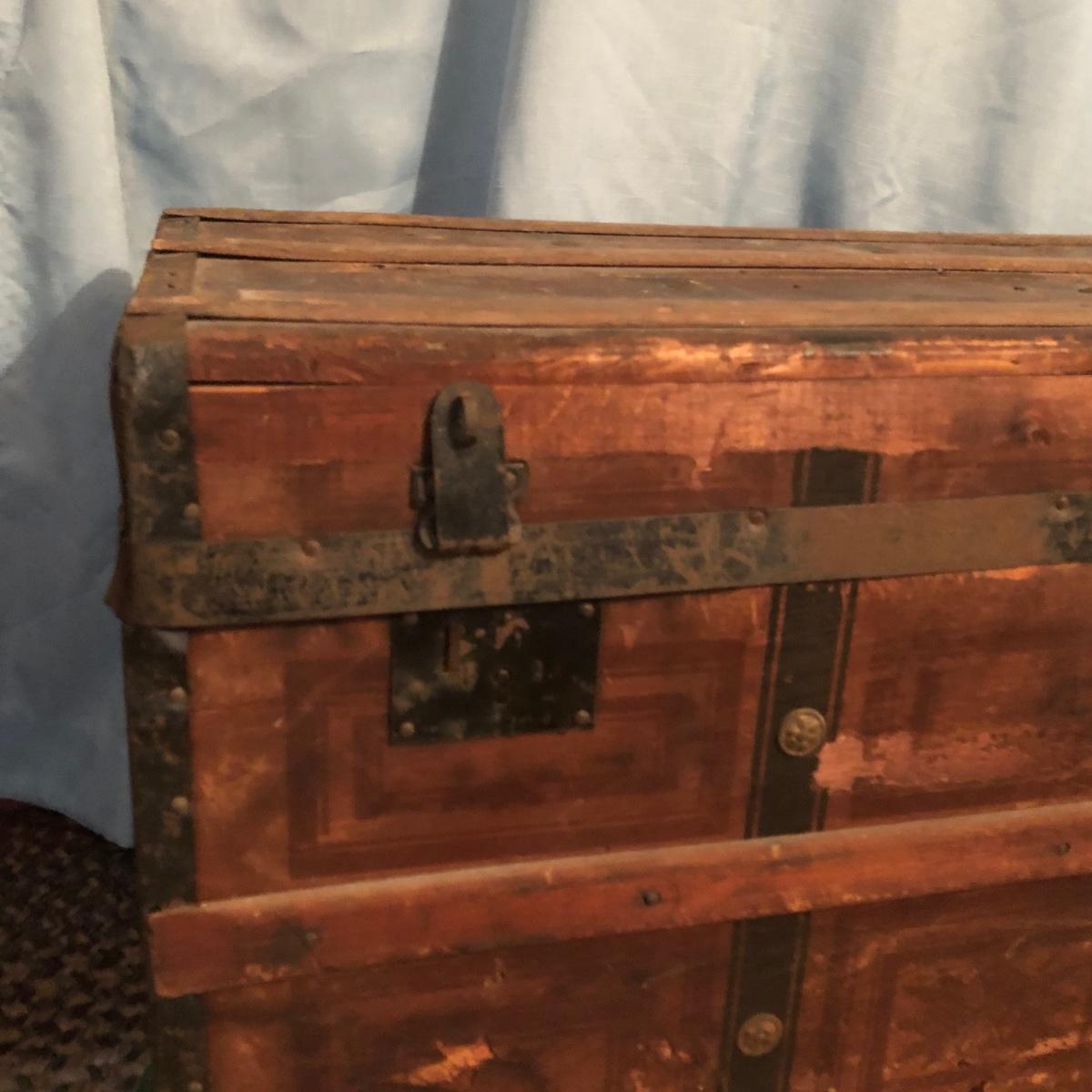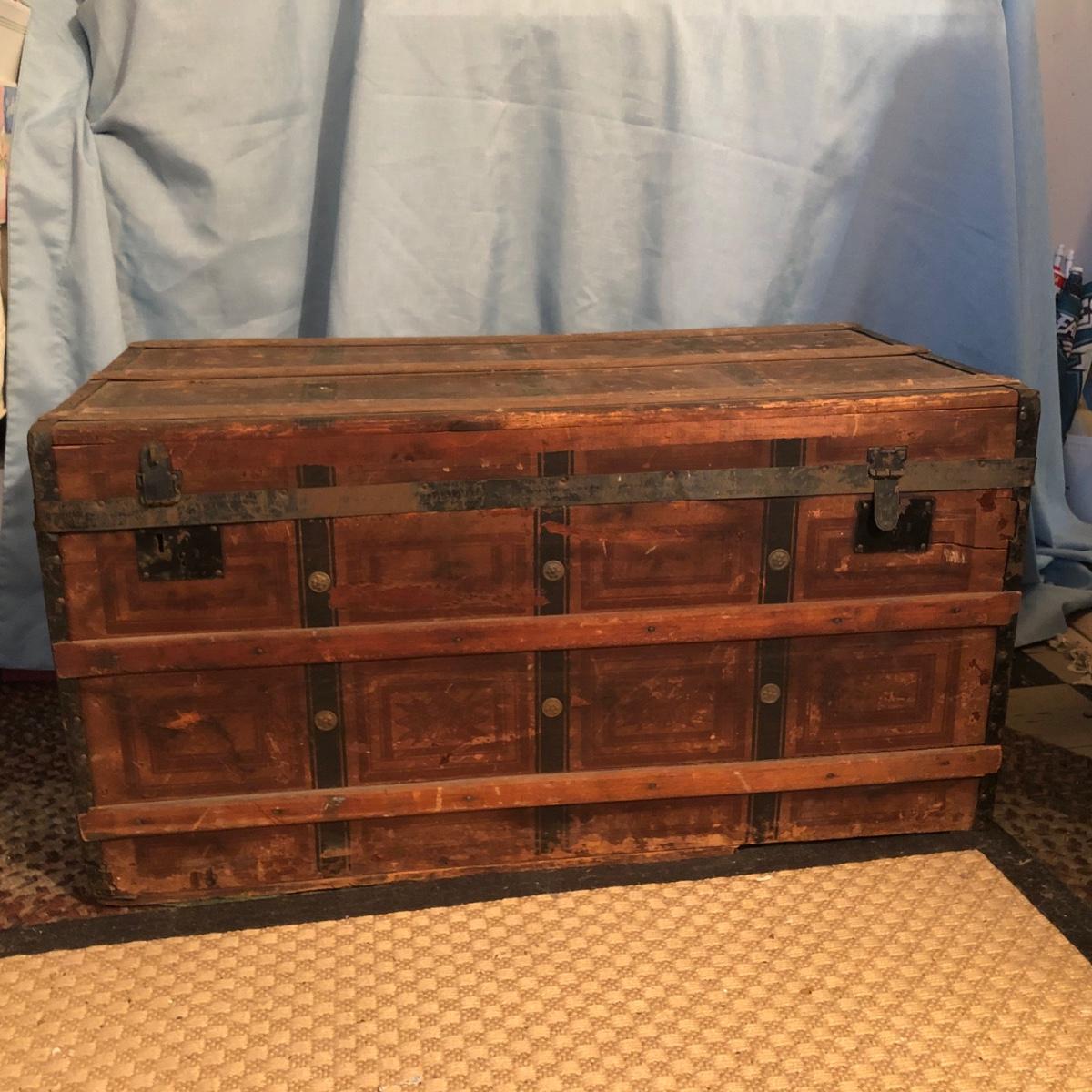 LOT 251M: Vintage Wooden Chest w/ Afghans