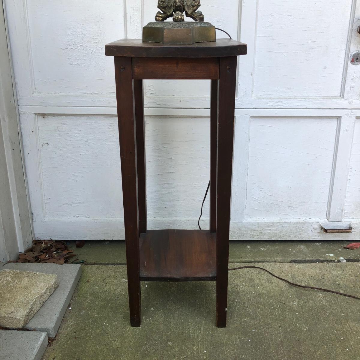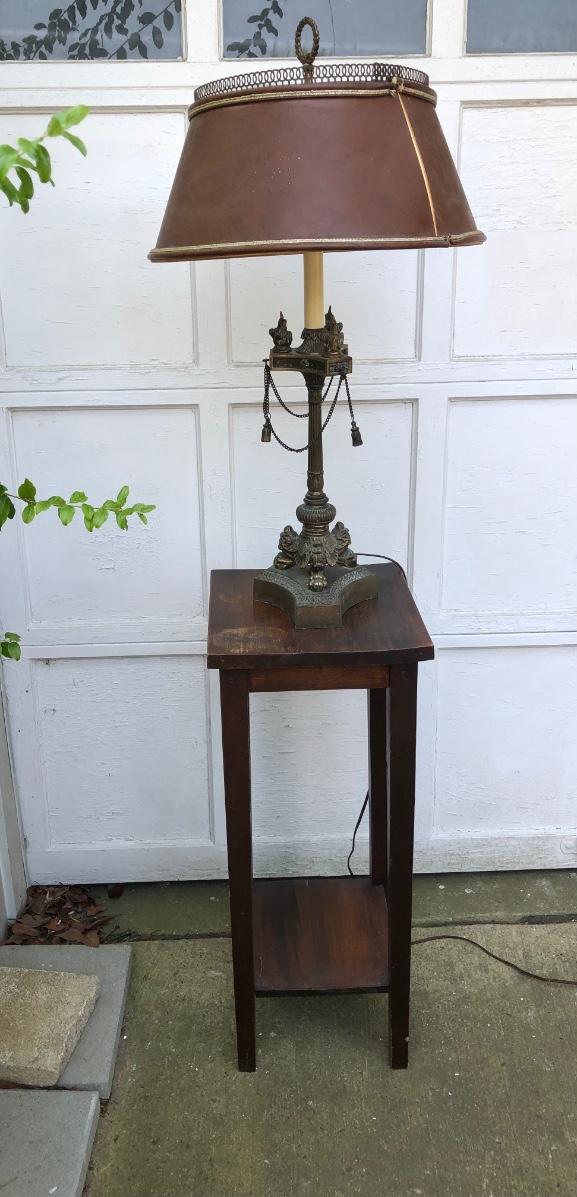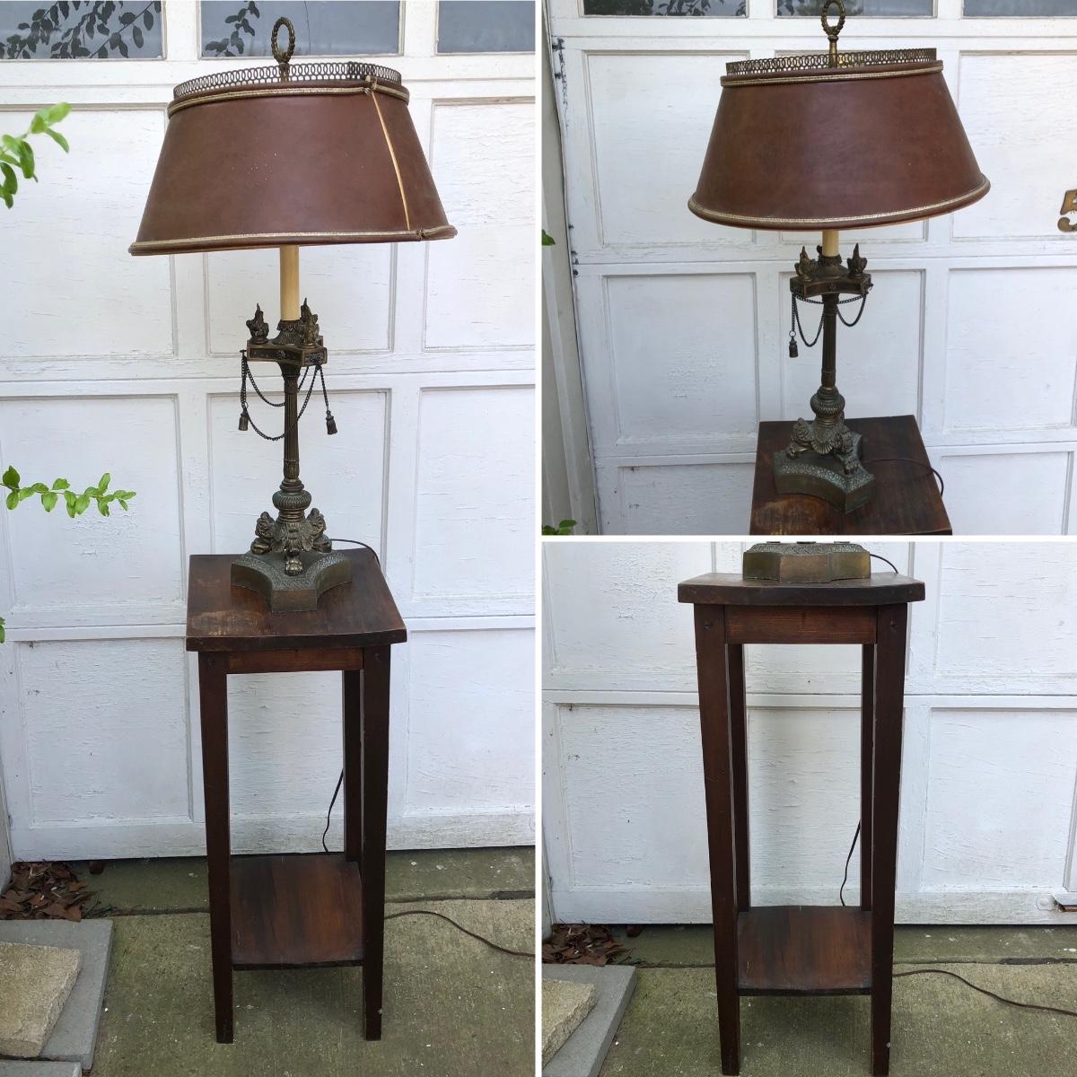 Lamp is untested and 29 inches tall. Table measures 12 x 12 x 30. Please see all pictures as they are the best representation of the items. The pictures show condition, measurements if taken, and what is included in the lot. Due to the large amount that we photograph and the time frame, we are not always able to take measurements. All items unless noted, are pre-owned and have been used. If you purchased furniture, you must bring help. We do not allow one person to carry large furniture out on their own. Bring help, tools and a truck for the safety of our client’s homes, and your personal safety. Any damages that result to the property including walls, and floors due to moving of the furniture will be charged to the buyer. Company policy. Thank you.