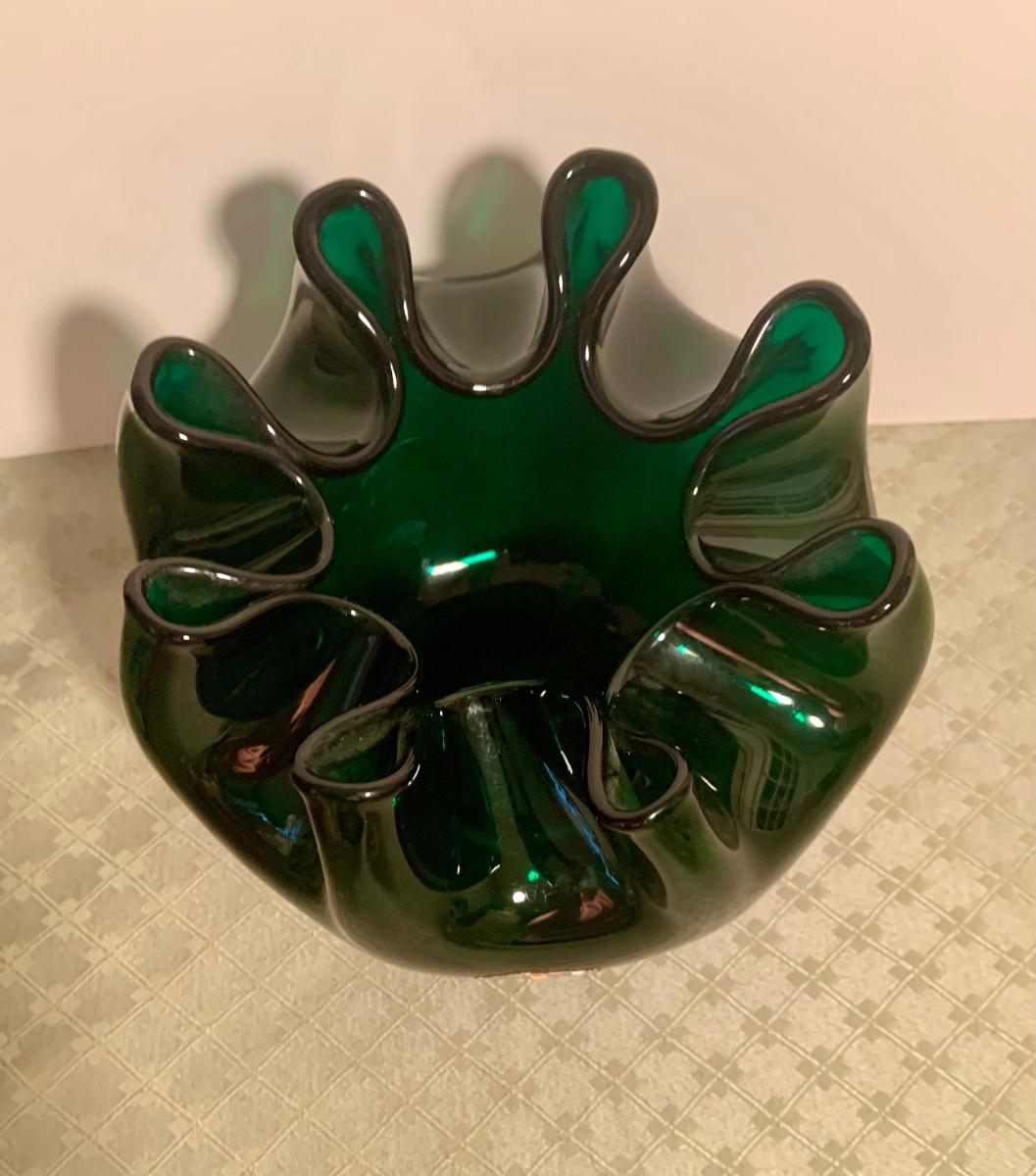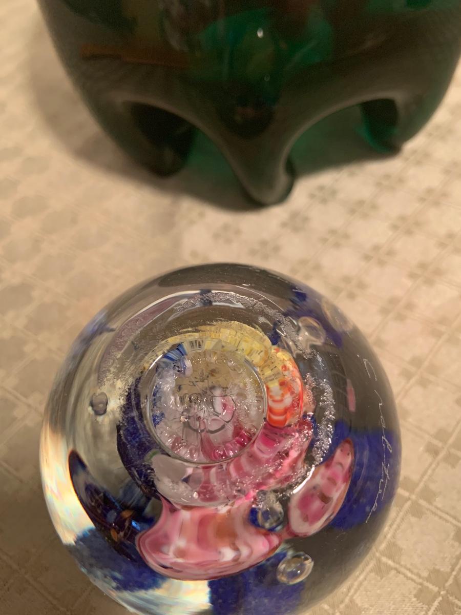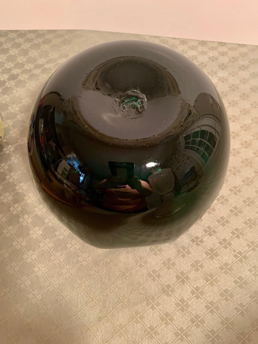 LOT 271G; Art Glass - Blenko Handcrafted Emerald Green Rose Bowl and Glass Orb with Flower