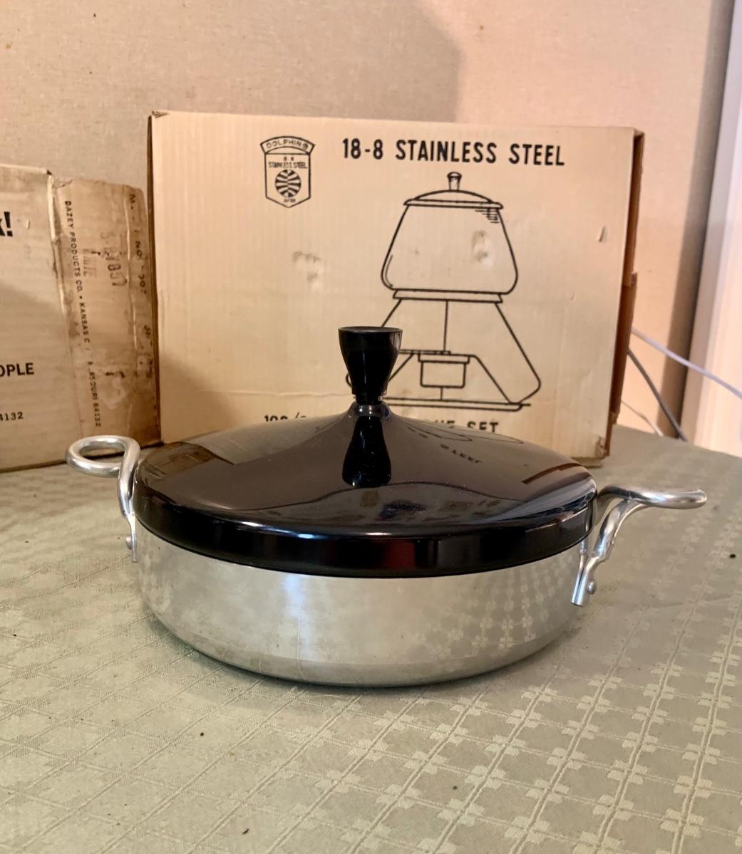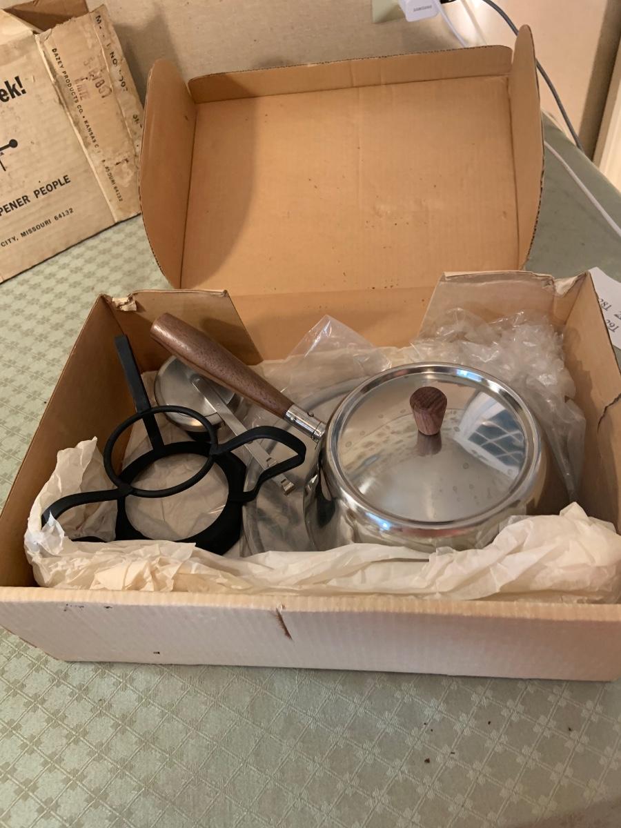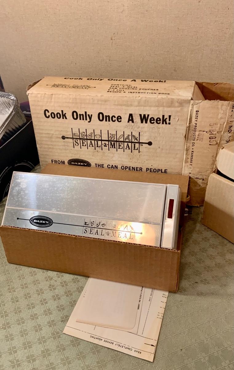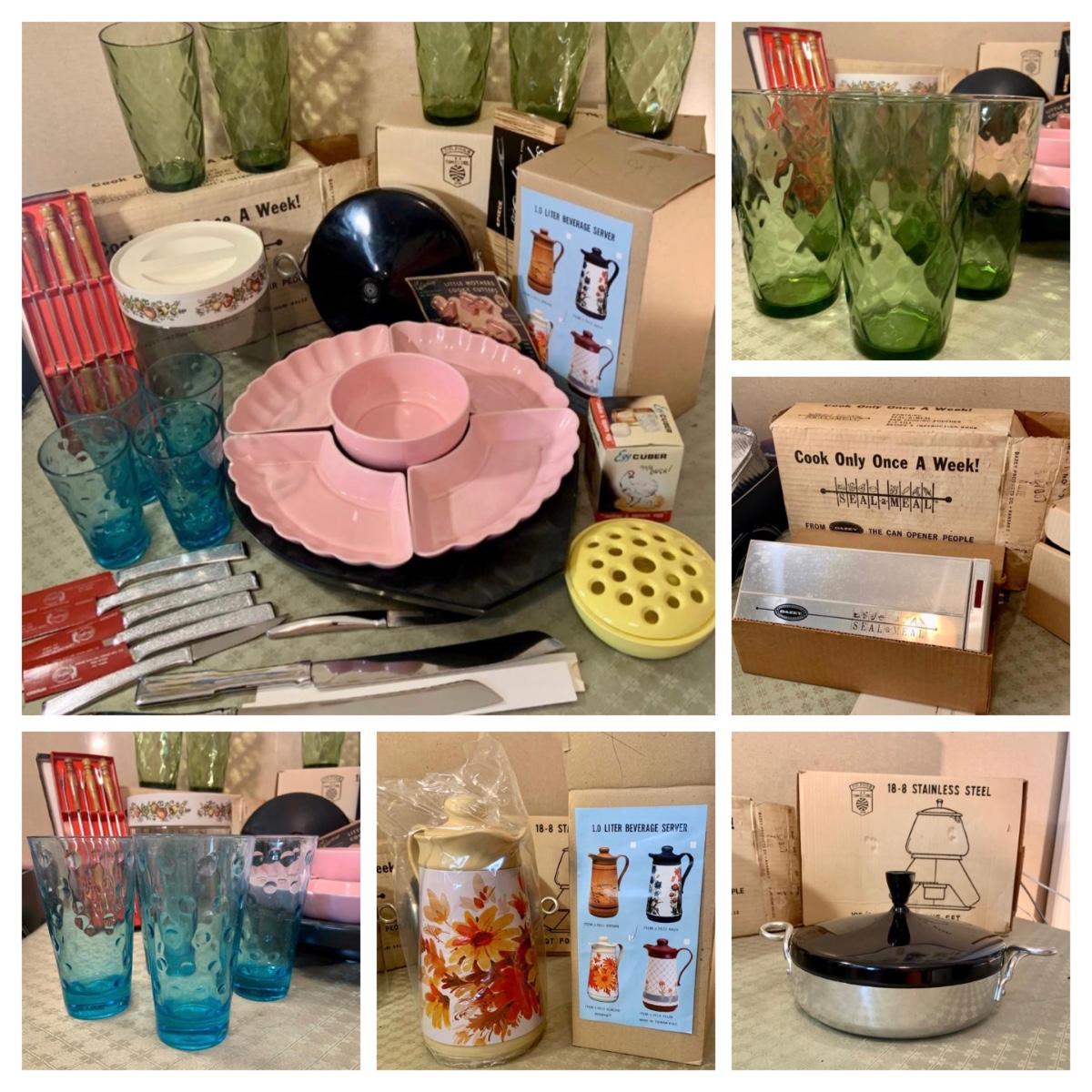 LOT 278G: MCM Kitchen Must Haves Including a Pink Ceramic Lazy Susan, Foundue Set and Dazey Seal a Meal in Original Boxes; Towle Knives and So Much More