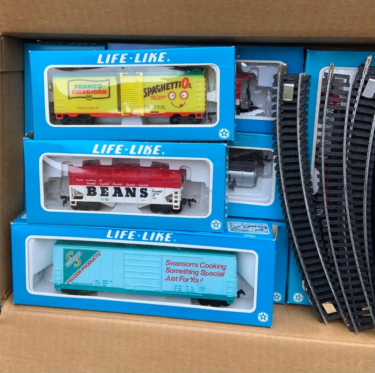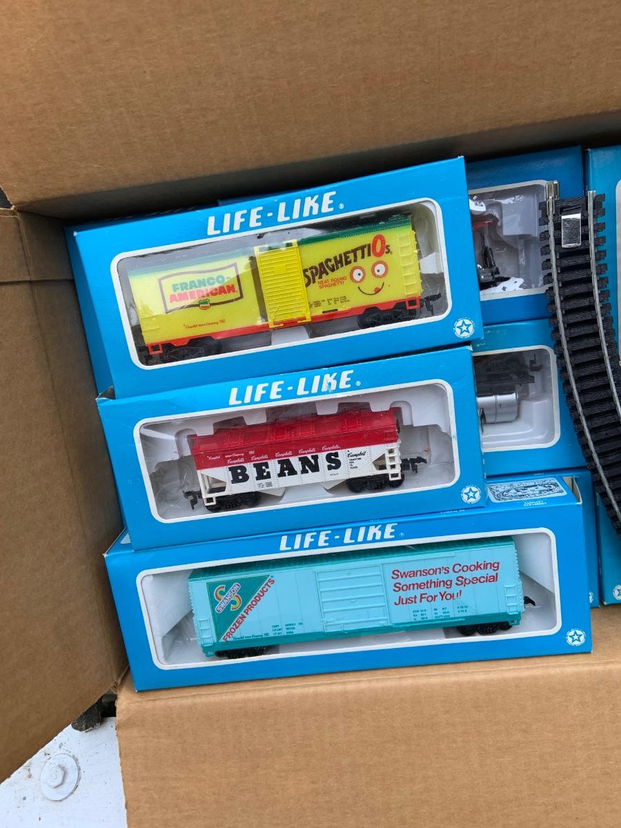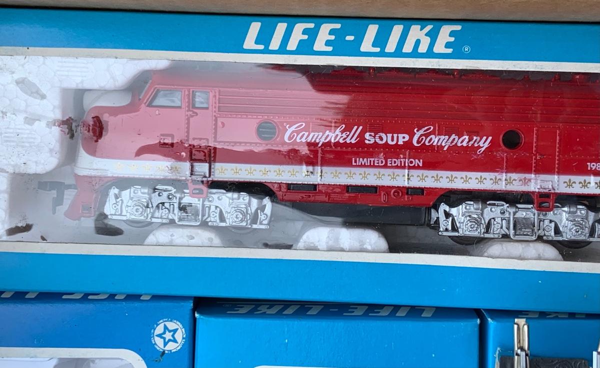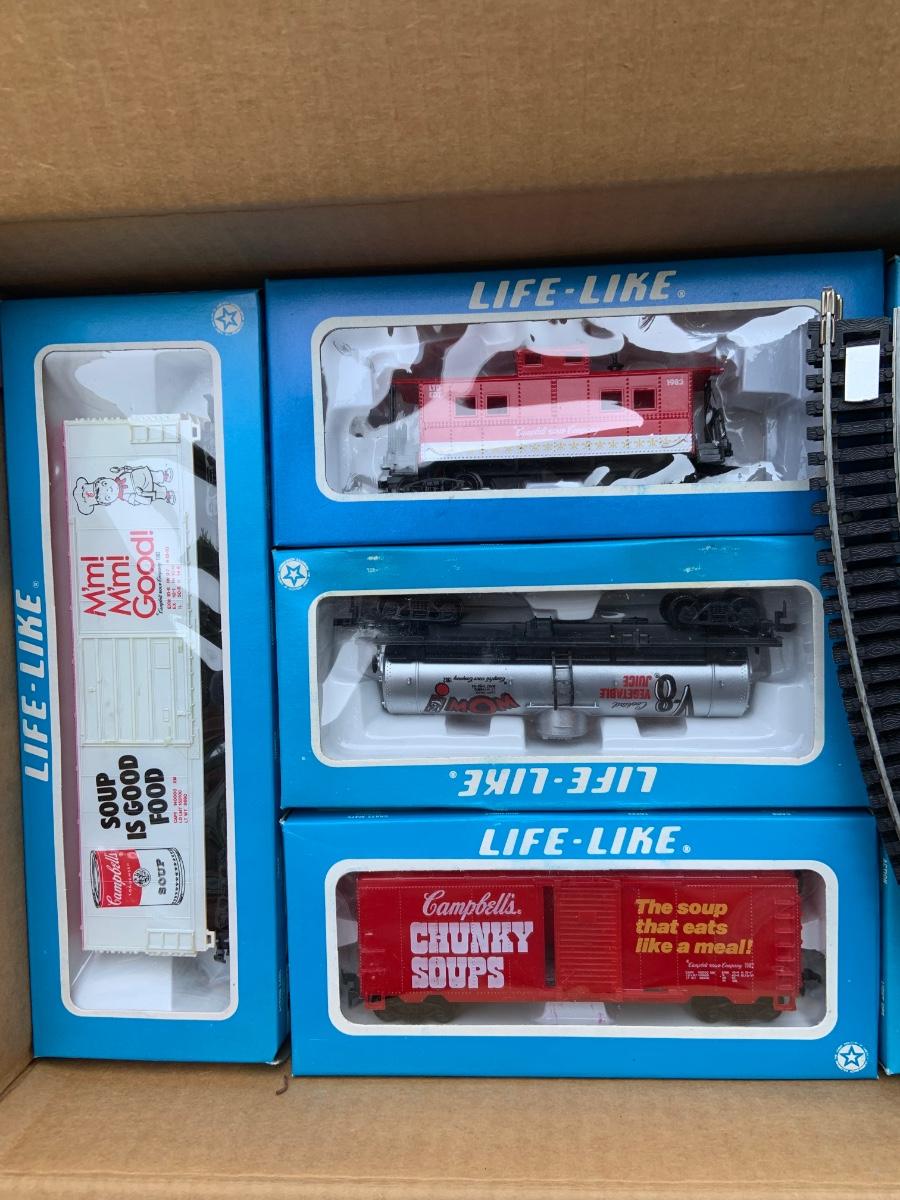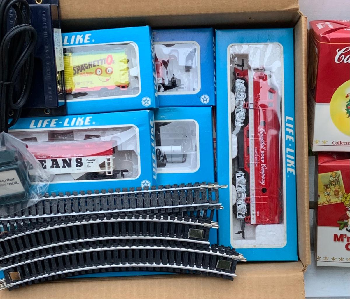 LOT:289G: Campbells Life- Like Train Set with Cars and Track In Original Outer Box with 2 Campbell's Soup Christmas Bulbs