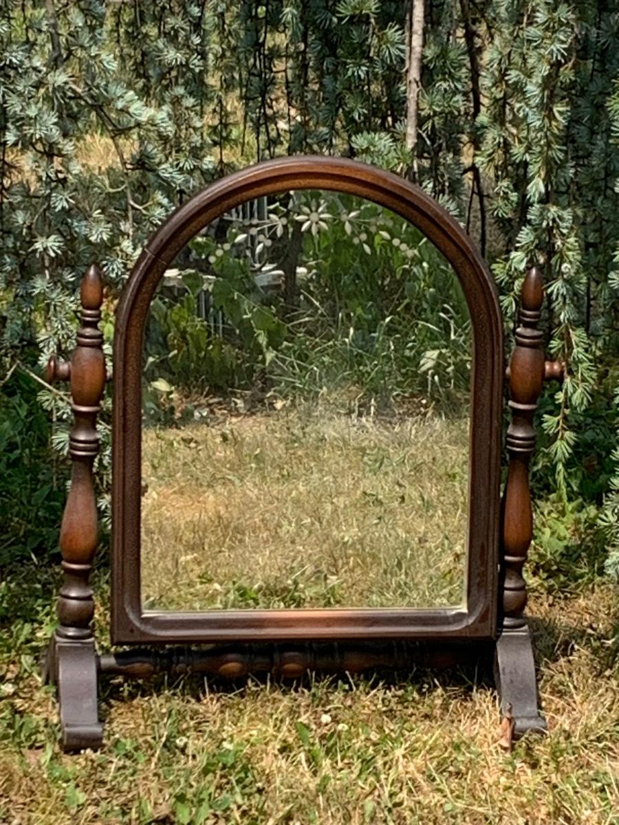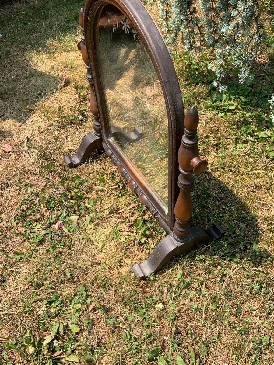 LOT:291G: Antique Wood Dresser Top Shaving Mirror