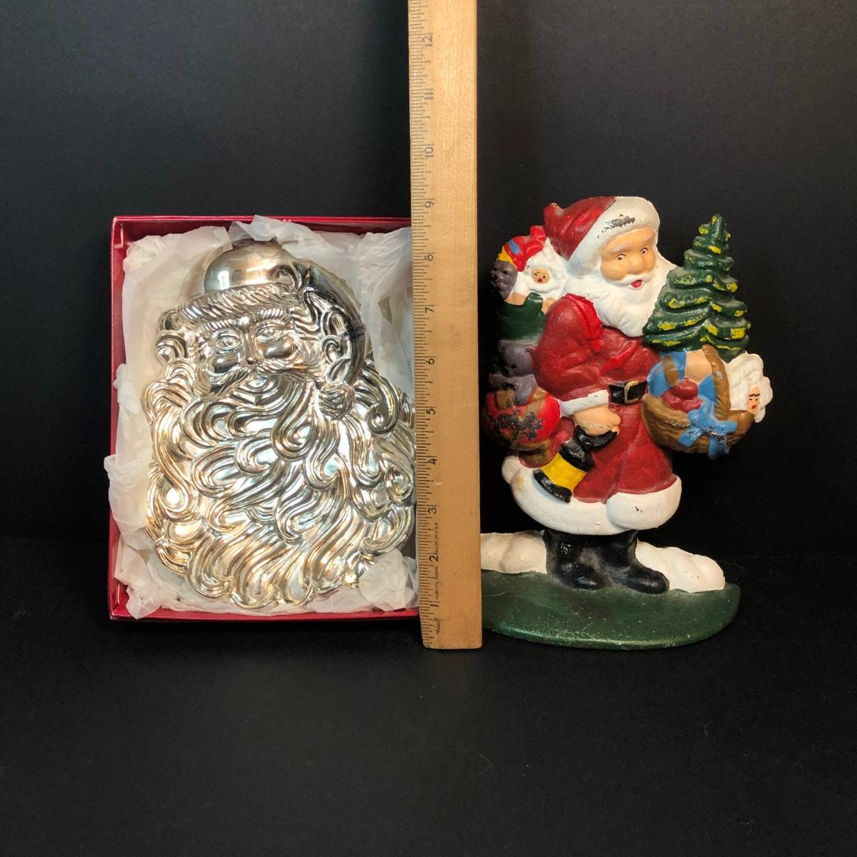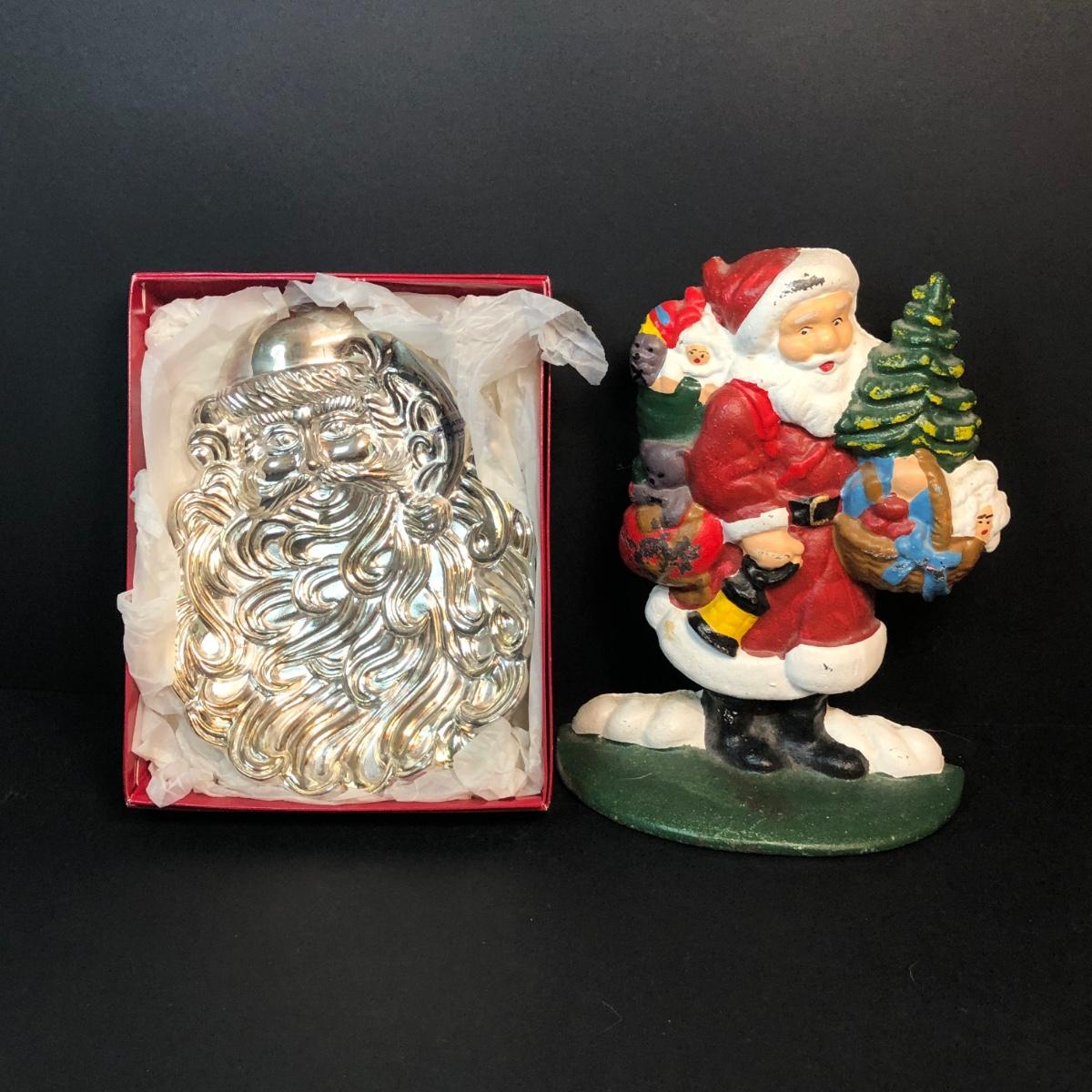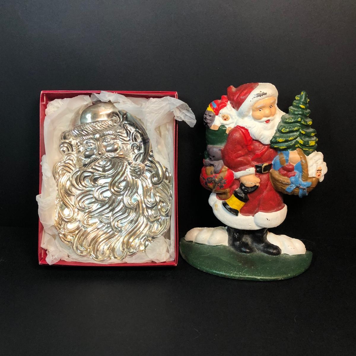 LOT 296M: Cast Iron Santa Doorstop & Silver Plated Santa Dish