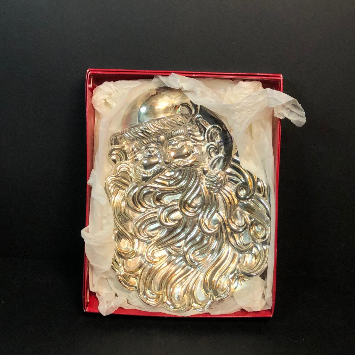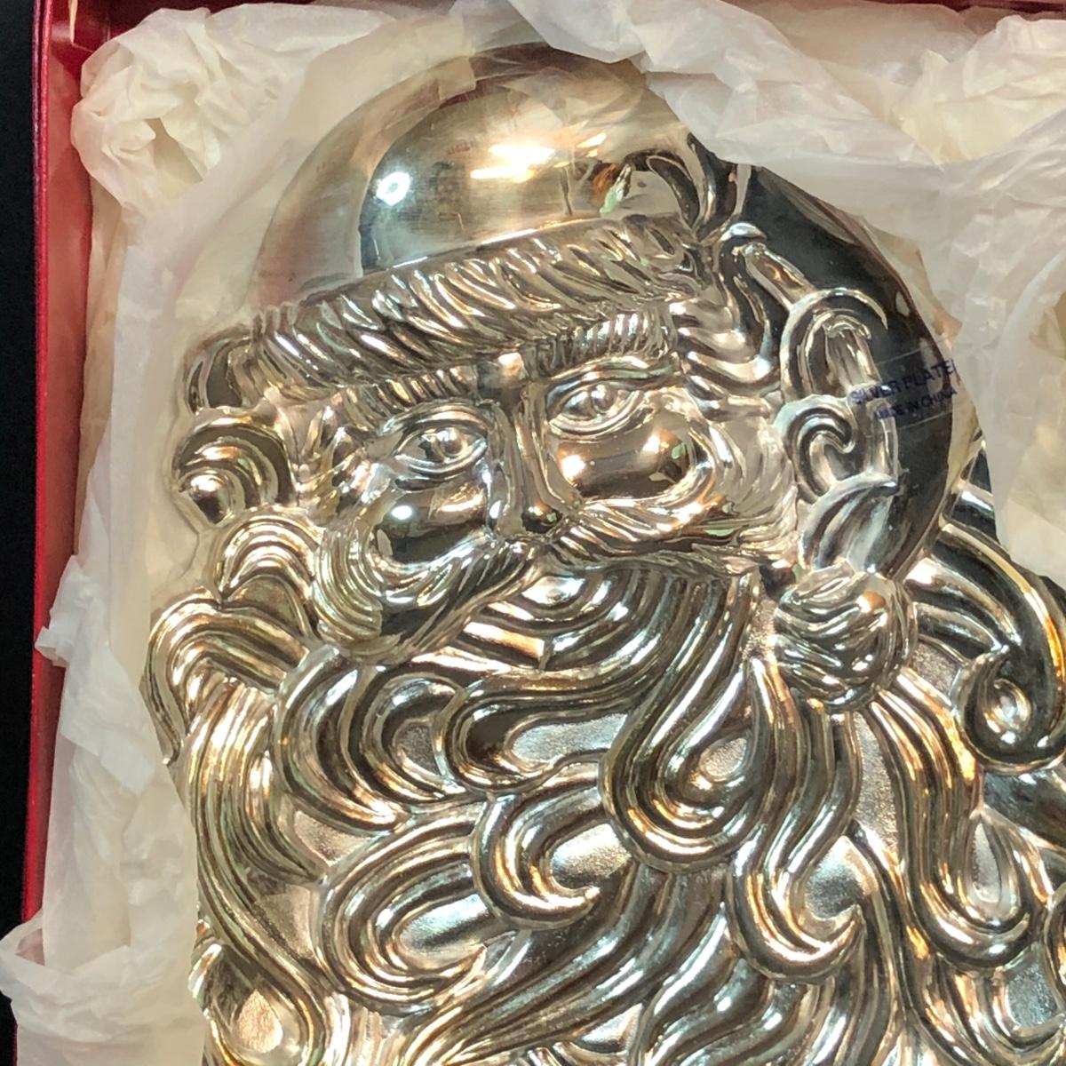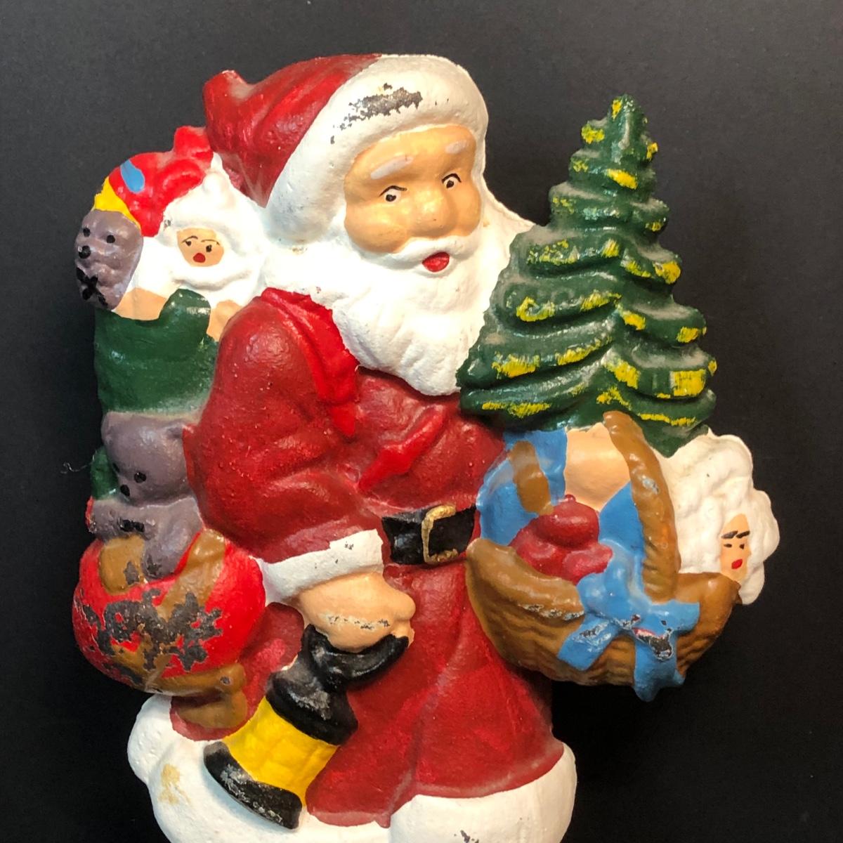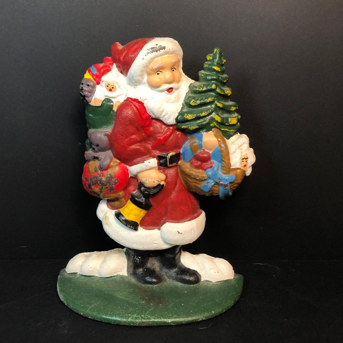 LOT 296M: Cast Iron Santa Doorstop & Silver Plated Santa Dish