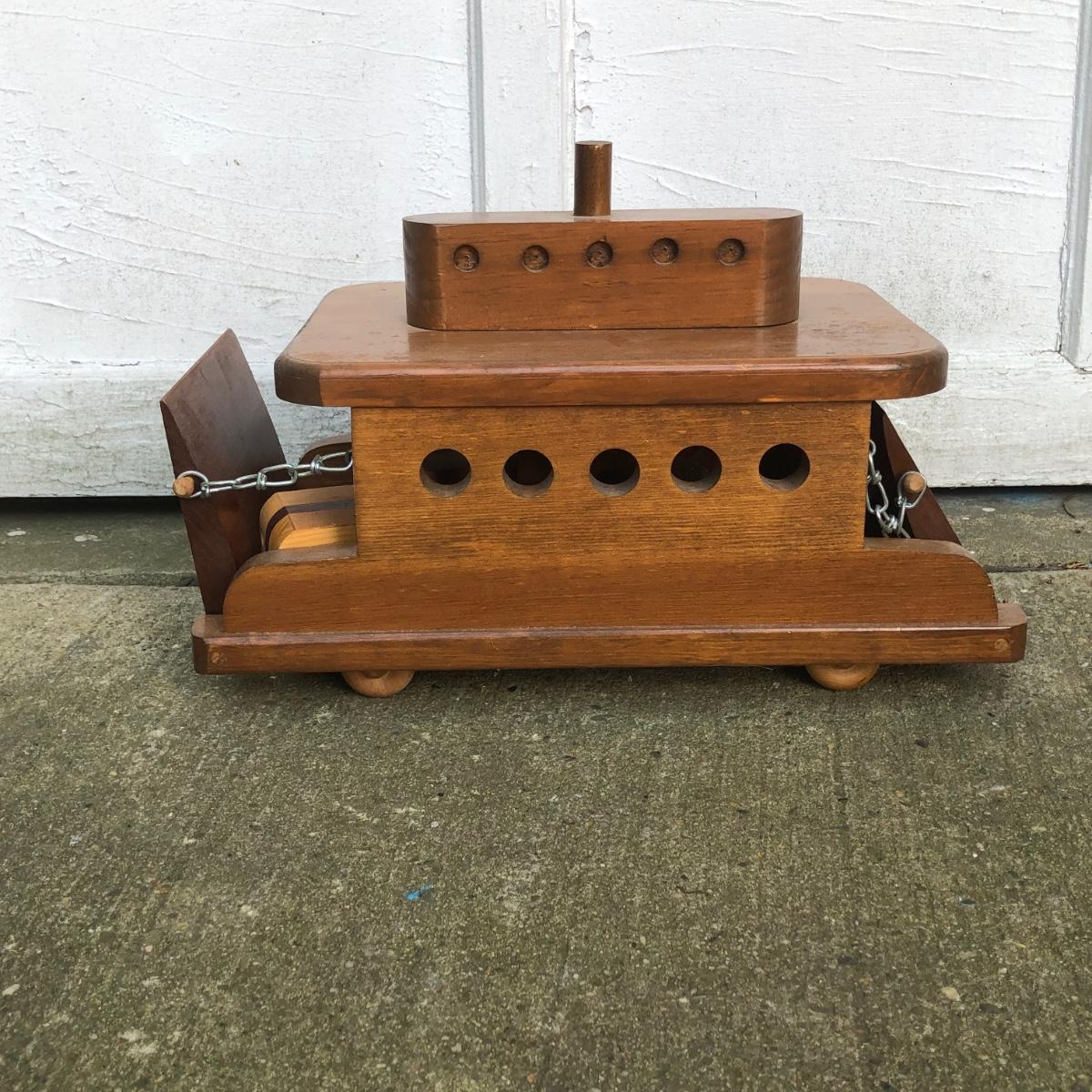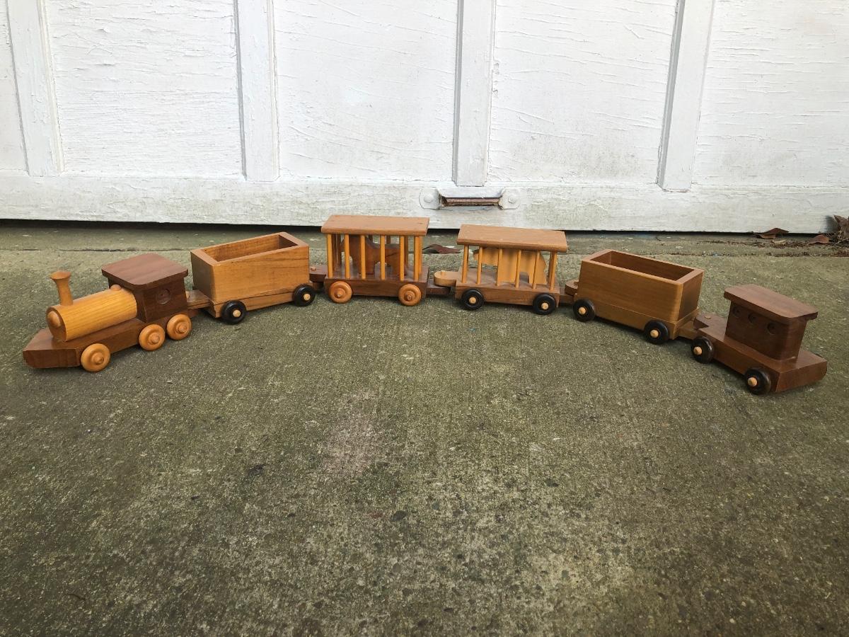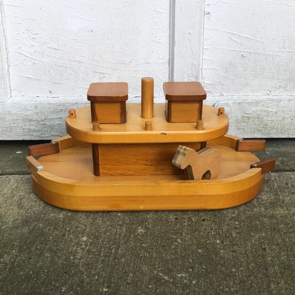 LOT 303M: Wooden Toy Collection - Ship, Car Barge & Train Set