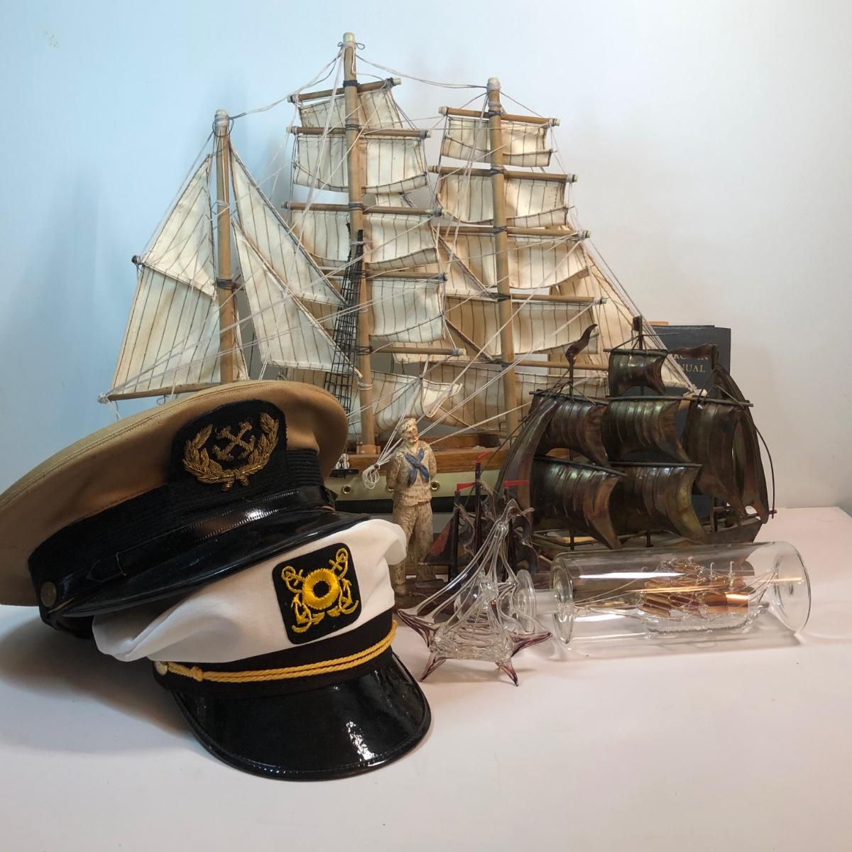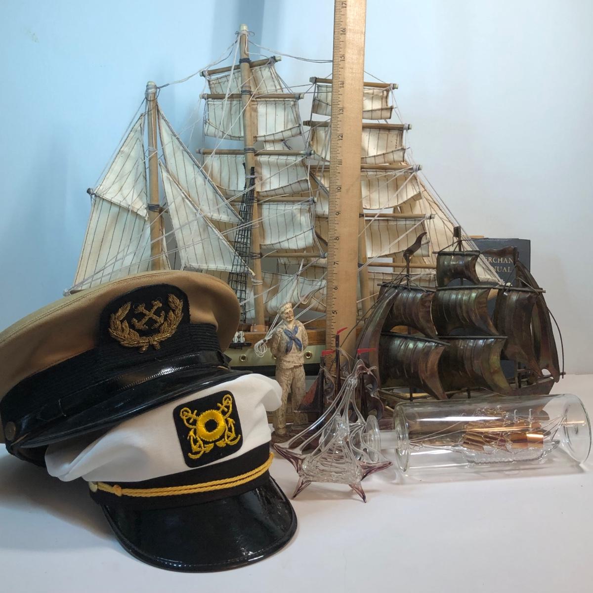 LOT 306M: Gorch Fock Model, Decorative Ships & Sea Captain's Hats