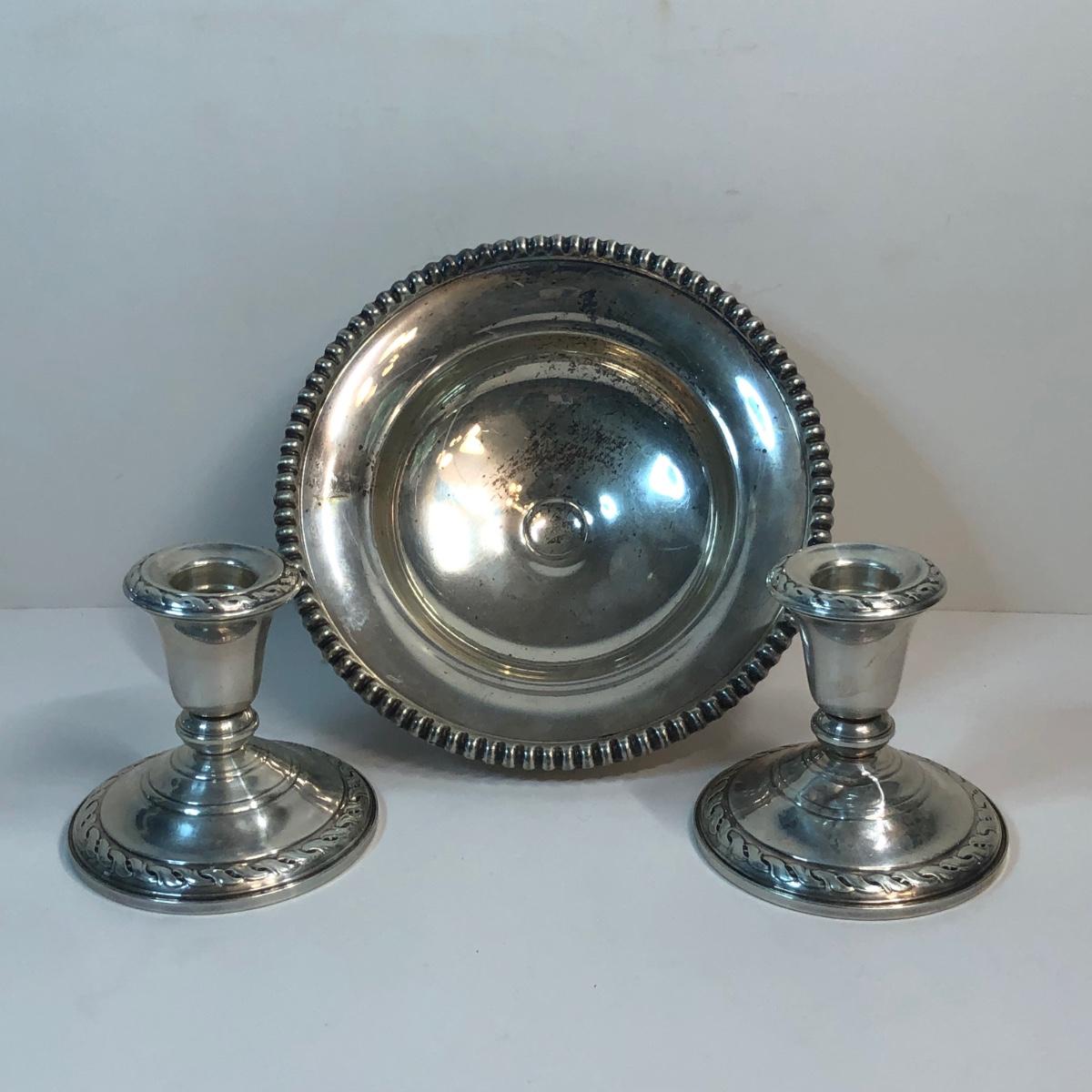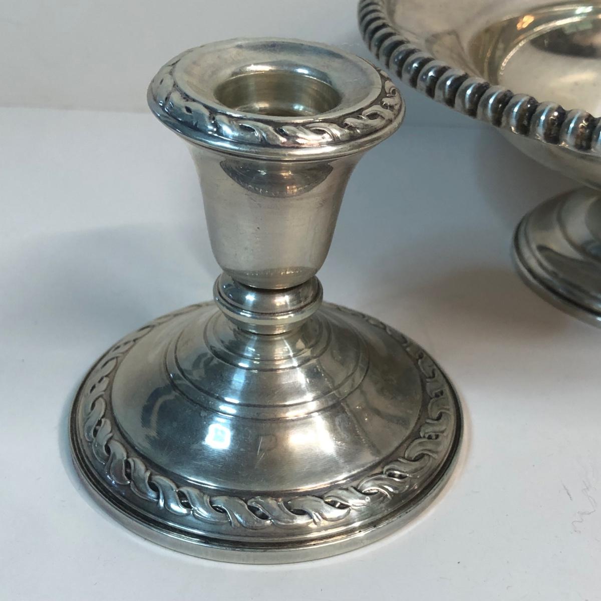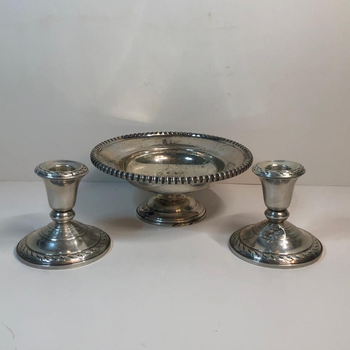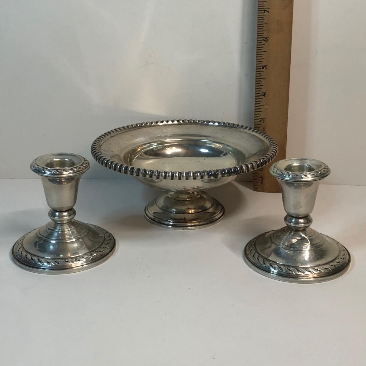 LOT 310M: Reinforced Anston Sterling Candle Holders & Candlewick International Weighted Sterling Dish