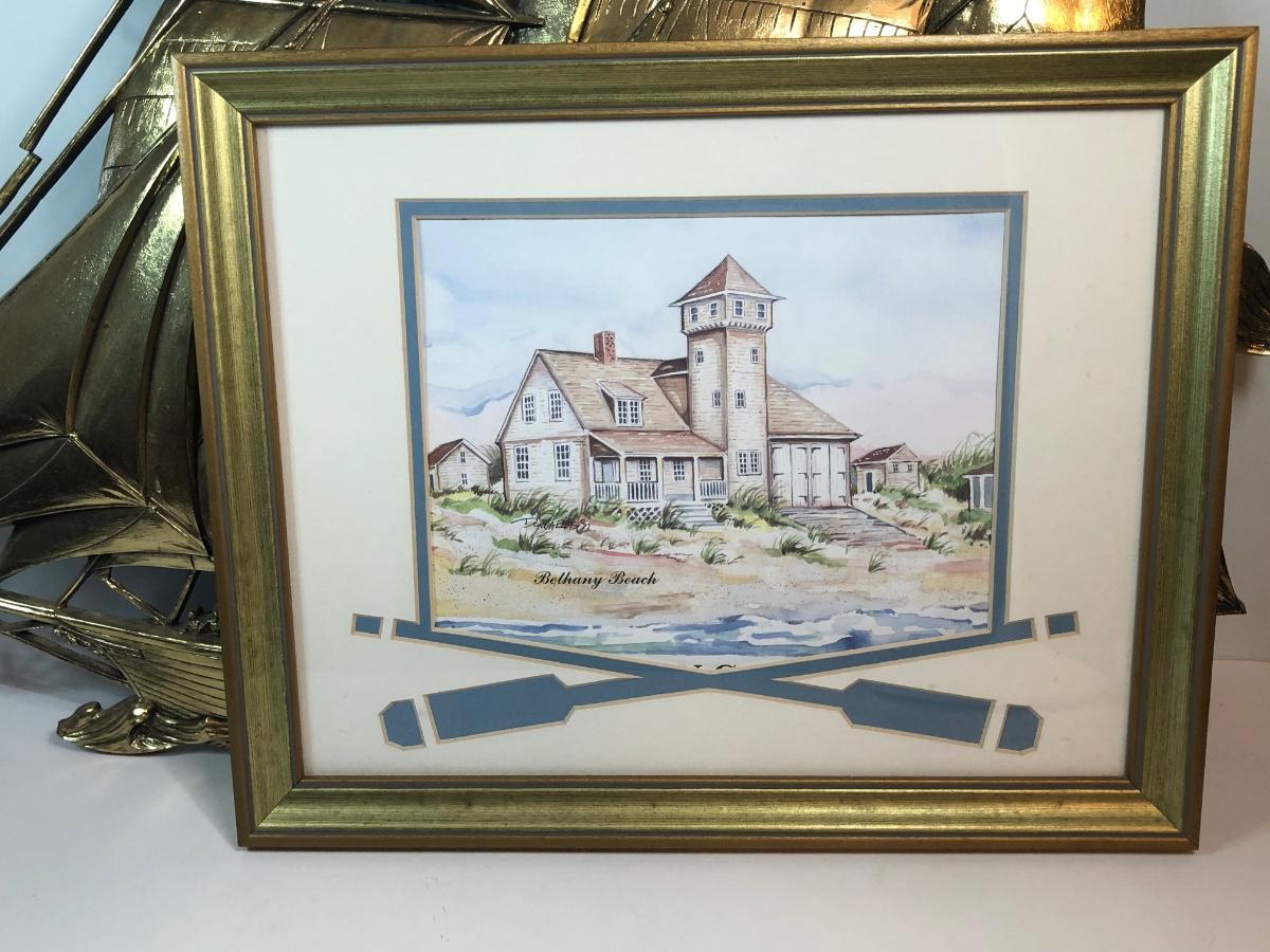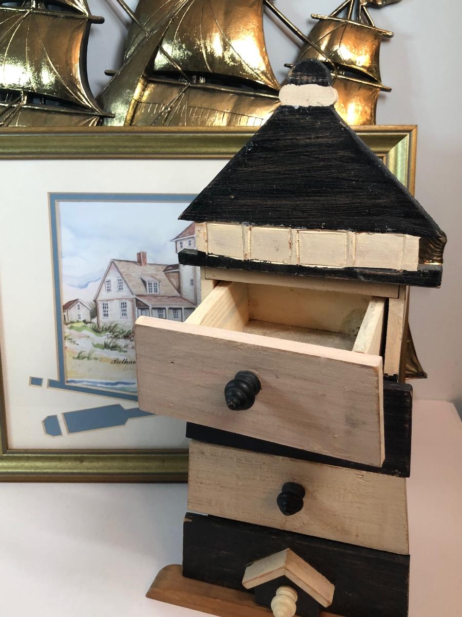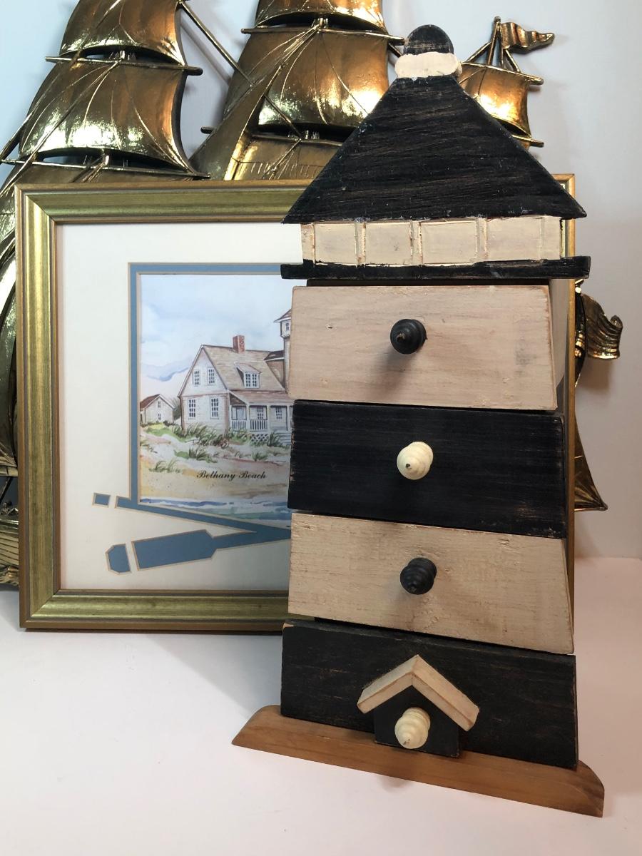 LOT 312M: Donna Elias "Heroes of the American Coast" Print, Ship Wall Hanging & Lighthouse Box w/ Drawers