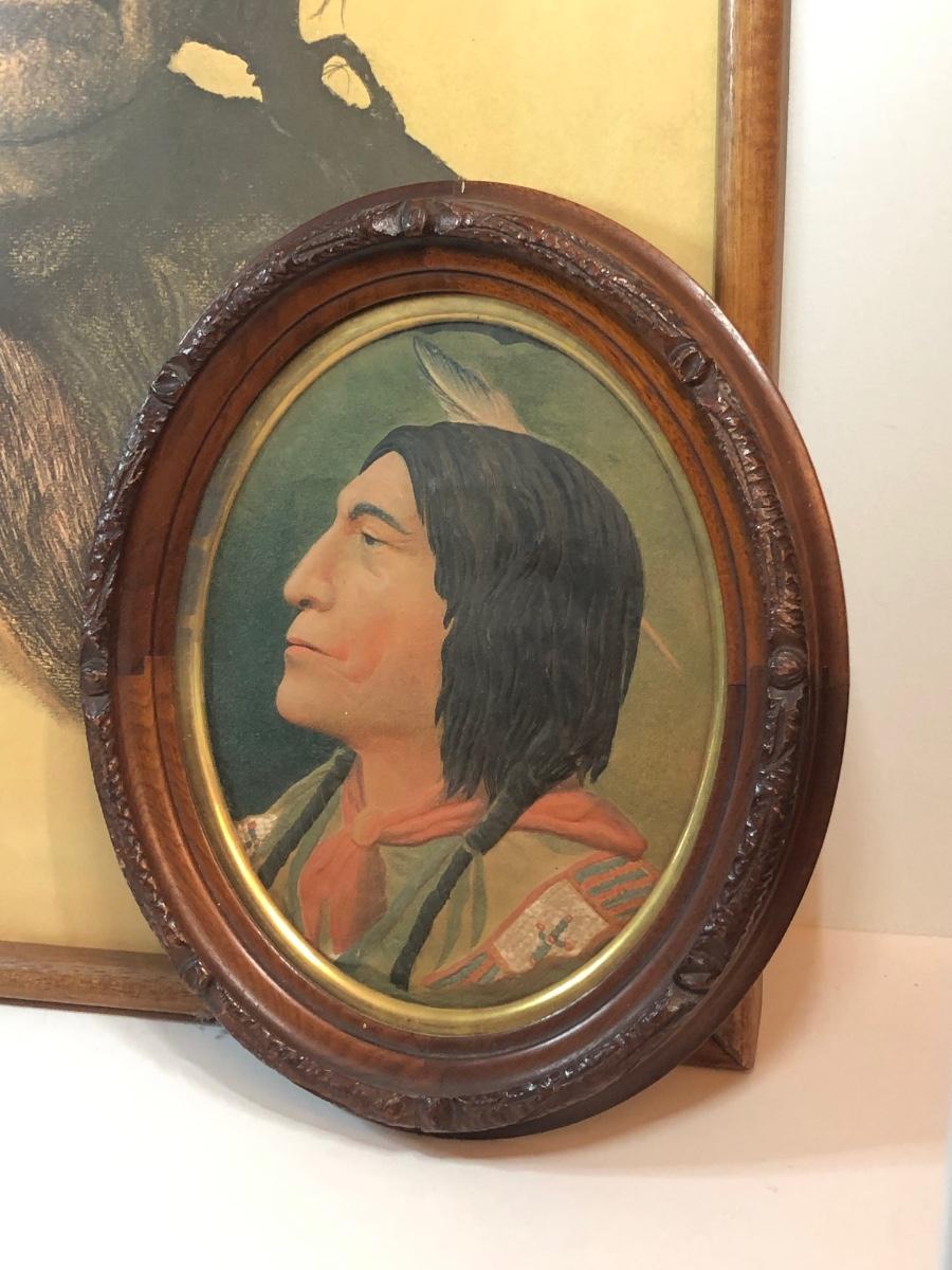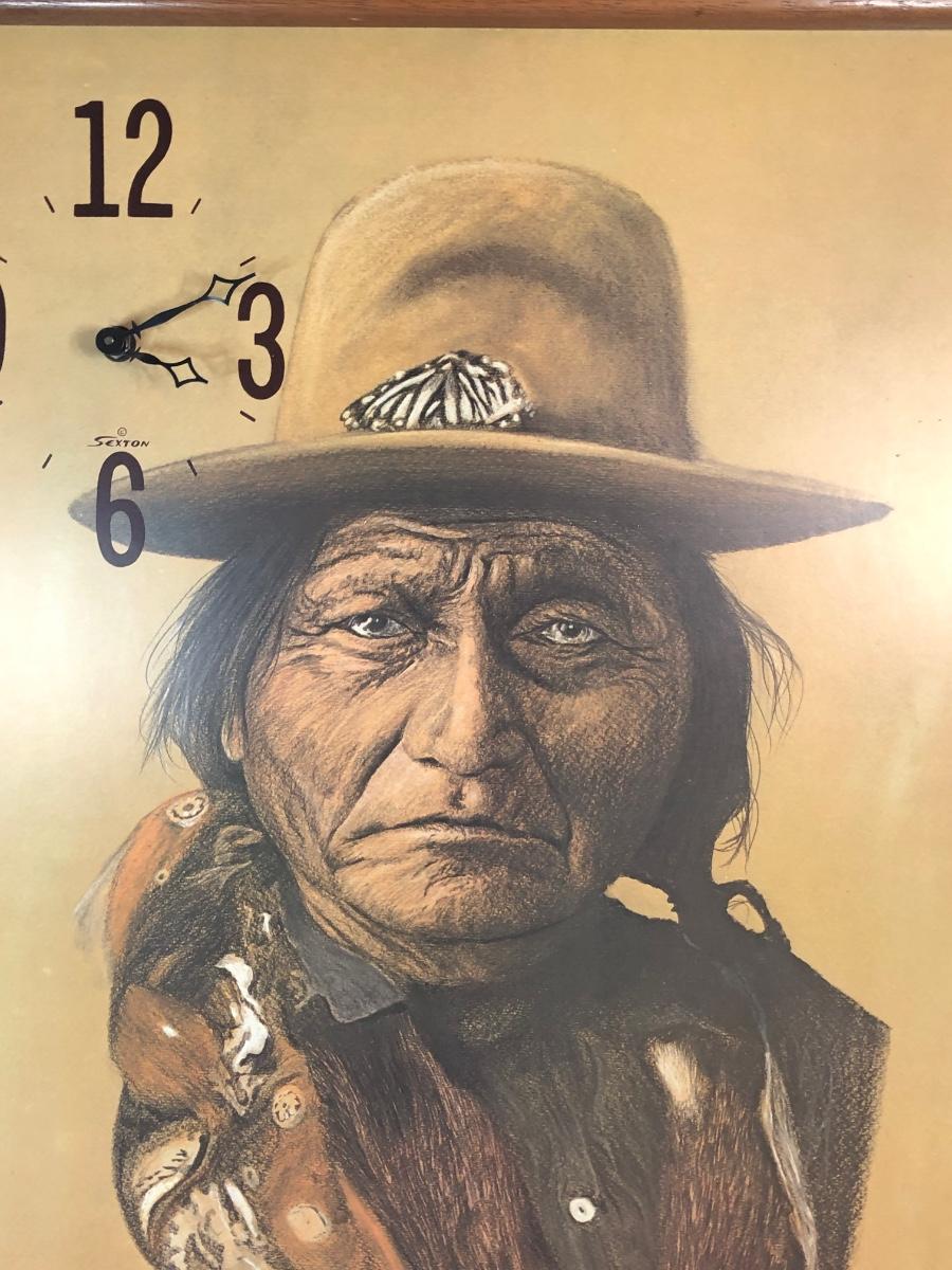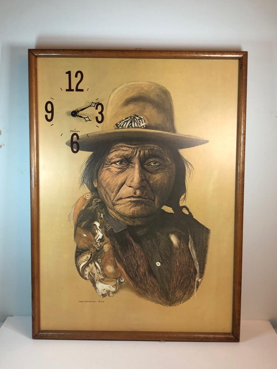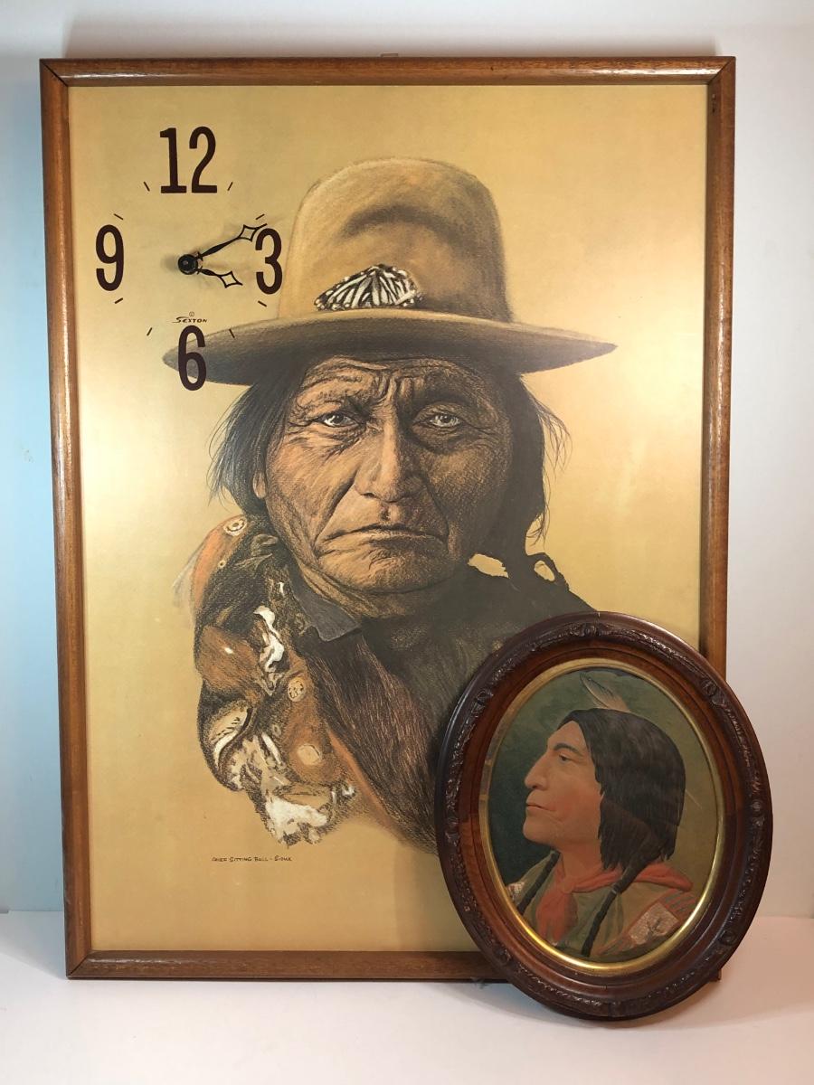 LOT 315M: Sexton Chief Sitting Bull Clock & Native American Relief Portrait
