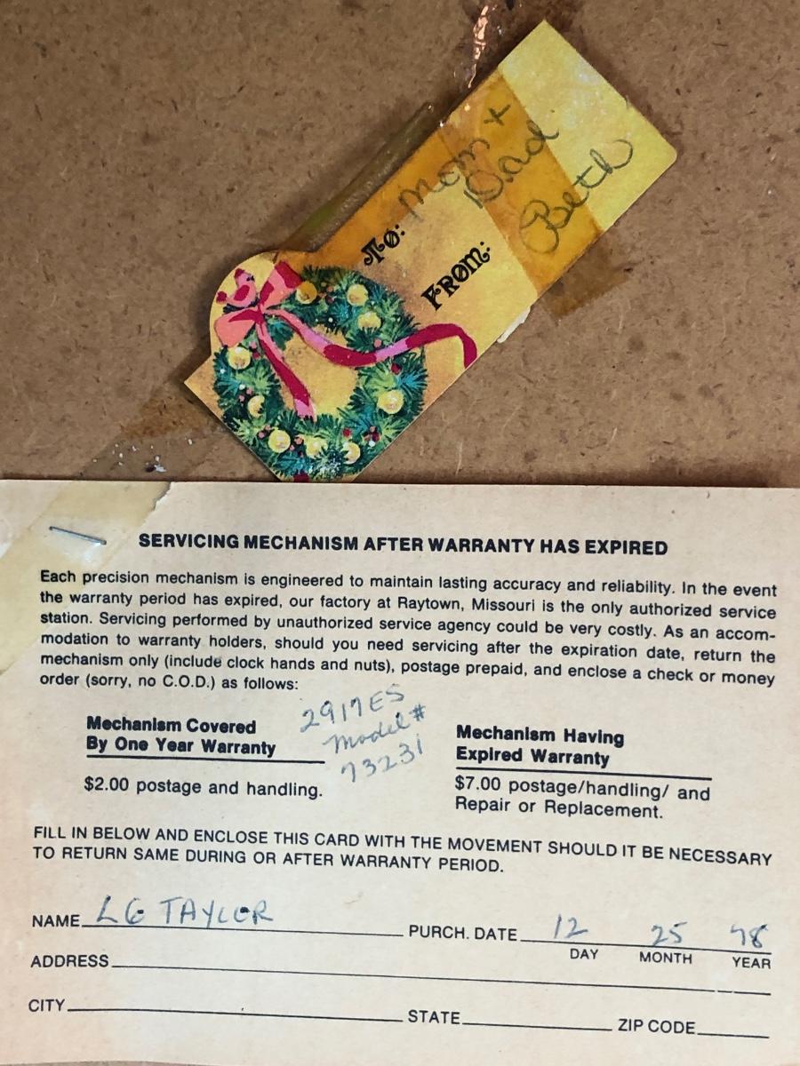 Clock measures 21 x 29 inches.